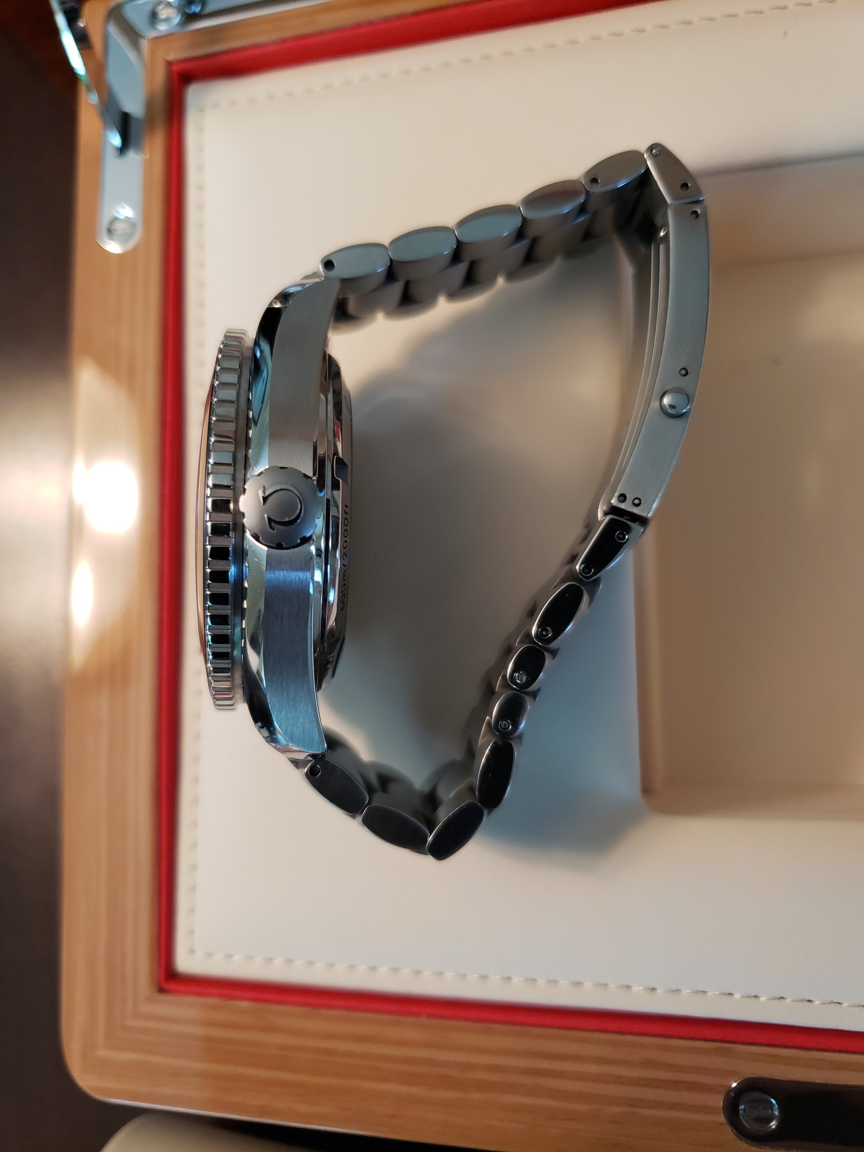 No issues - perfect working condition . Plastic is still on back . Bought a new Omega bracelet , and had a jeweler take off the original rubber deployment strap and put on the Omega bracelet .