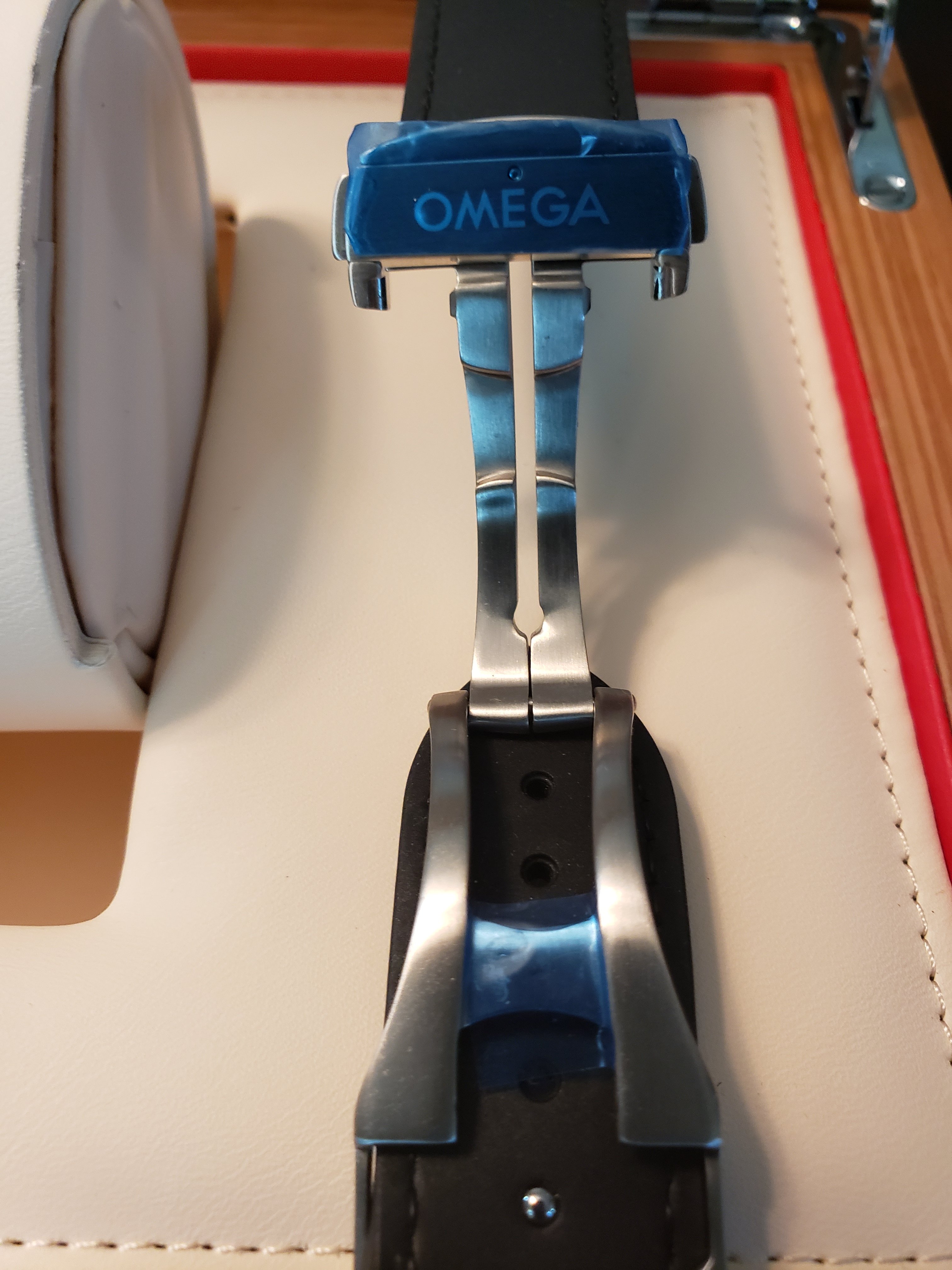 Comes with the Omega deployment strap and extra link and pin for the bracelet .