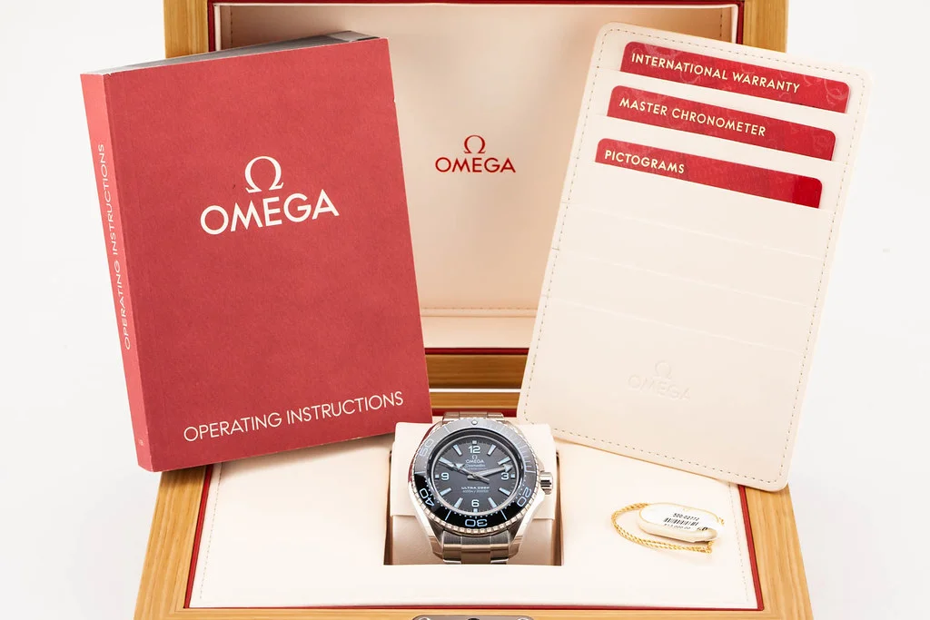 ·Up for sale is a brand new Omega Planet Ocean 6000M 45.5mm Ultra Deep on Bracelet, reference # 215.30.46.21.03.002. It comes complete with all boxes, papers, booklets, hang tag and Omega Warranty Card dated November 2024.