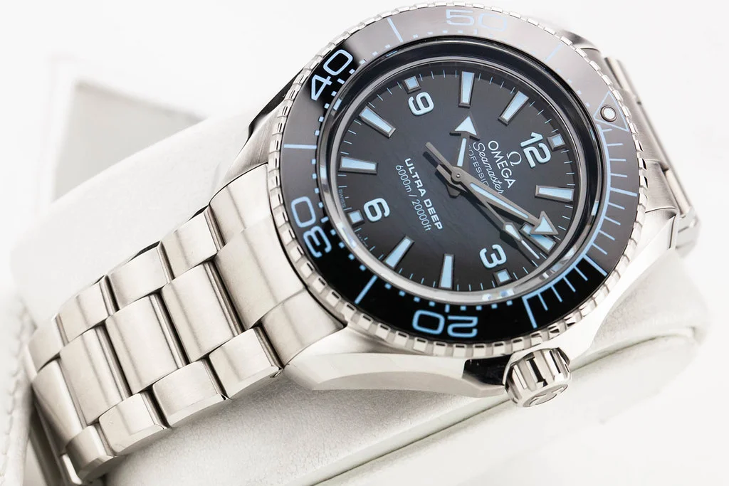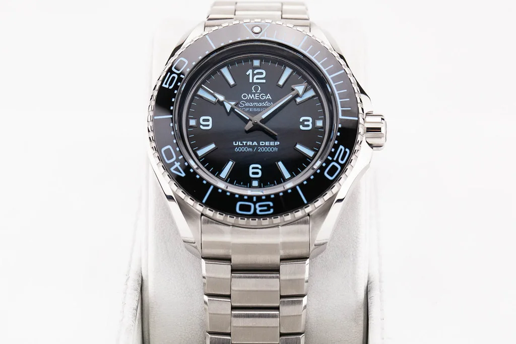 ·Up for sale is a brand new Omega Planet Ocean 6000M 45.5mm Ultra Deep Summer Blue on Bracelet, reference # 215.30.46.21.03.002. It comes complete with all boxes, papers, booklets, hang tag and Omega Warranty Card dated November 2024.