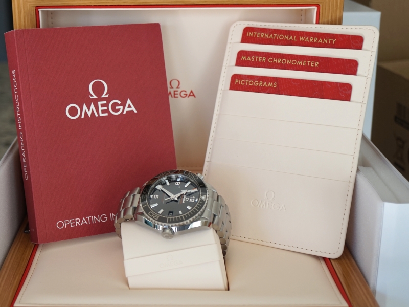 43.5 MM Stainless Steel Case with Stainless Steel Bracelet, Helium escape value, Date, Sapphire Crystal case back, Timezone function, 600 mtrs water resistant, power reserve of 60 hours, Unworn with box and papers