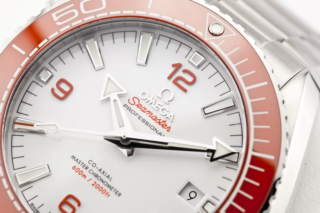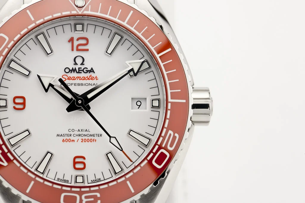·Up for sale is a brand new Omega Planet Ocean 600M 43.5mm White with Orange accents, reference # 215.30.44.21.04.001. It comes complete with all boxes, papers booklets, hang tag and Omega Warranty Card dated December 2024.