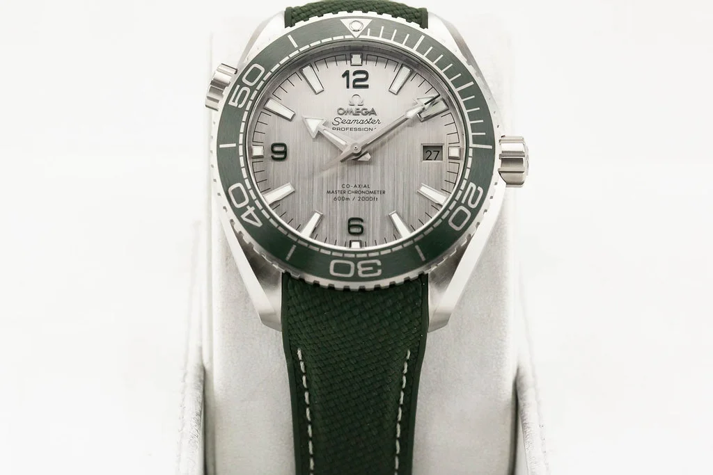 ·Up for sale is a brand new Omega Planet Ocean 600M 8900 43.5mm Grey Dial / Green Bezel on Green Rubber Strap, reference # 215.32.44.21.06.001. It comes complete with all boxes, papers, booklets, hang tag and Omega Warranty Card dated February 2025.