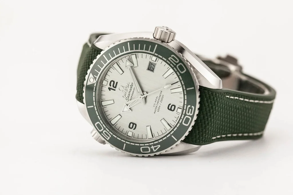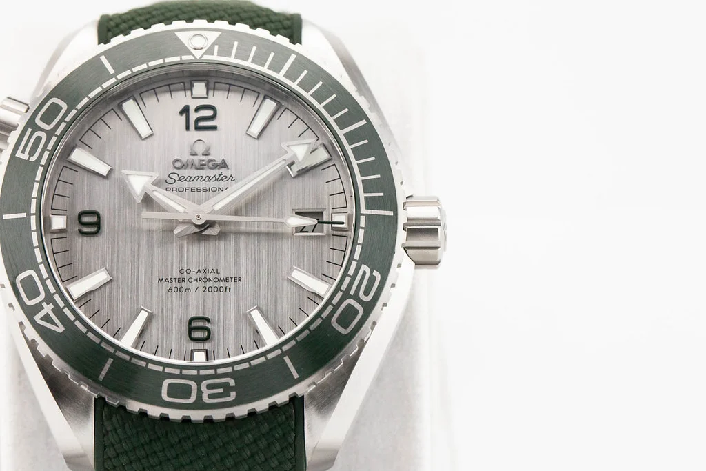 ·Up for sale is a brand new Omega Planet Ocean 600M 8900 43.5mm Grey Dial / Green Bezel on Green Rubber Strap, reference # 215.32.44.21.06.001. It comes complete with all boxes, papers, booklets, hang tag and Omega Warranty Card dated February 2025.