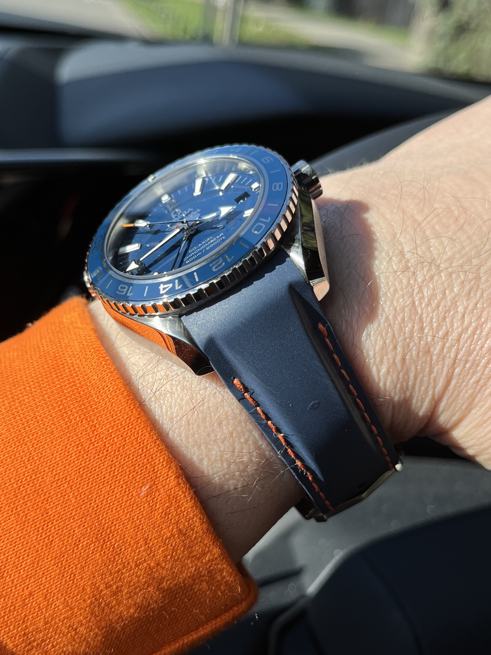 I have changed original white stitching on the strap into orange - I think it looks better with orange accents on the dial & hands. Also added some extra holes for better strap regulation during the day.