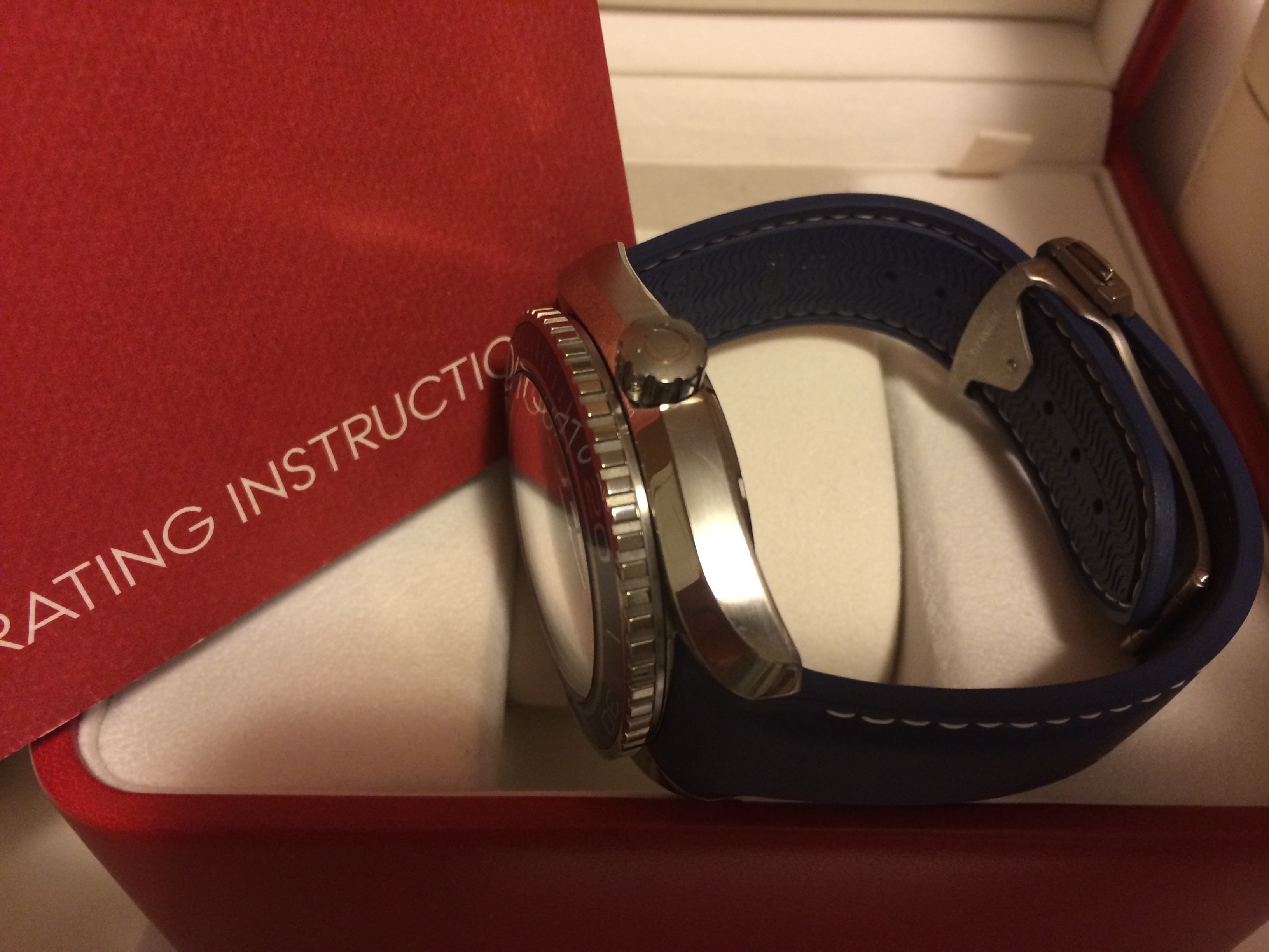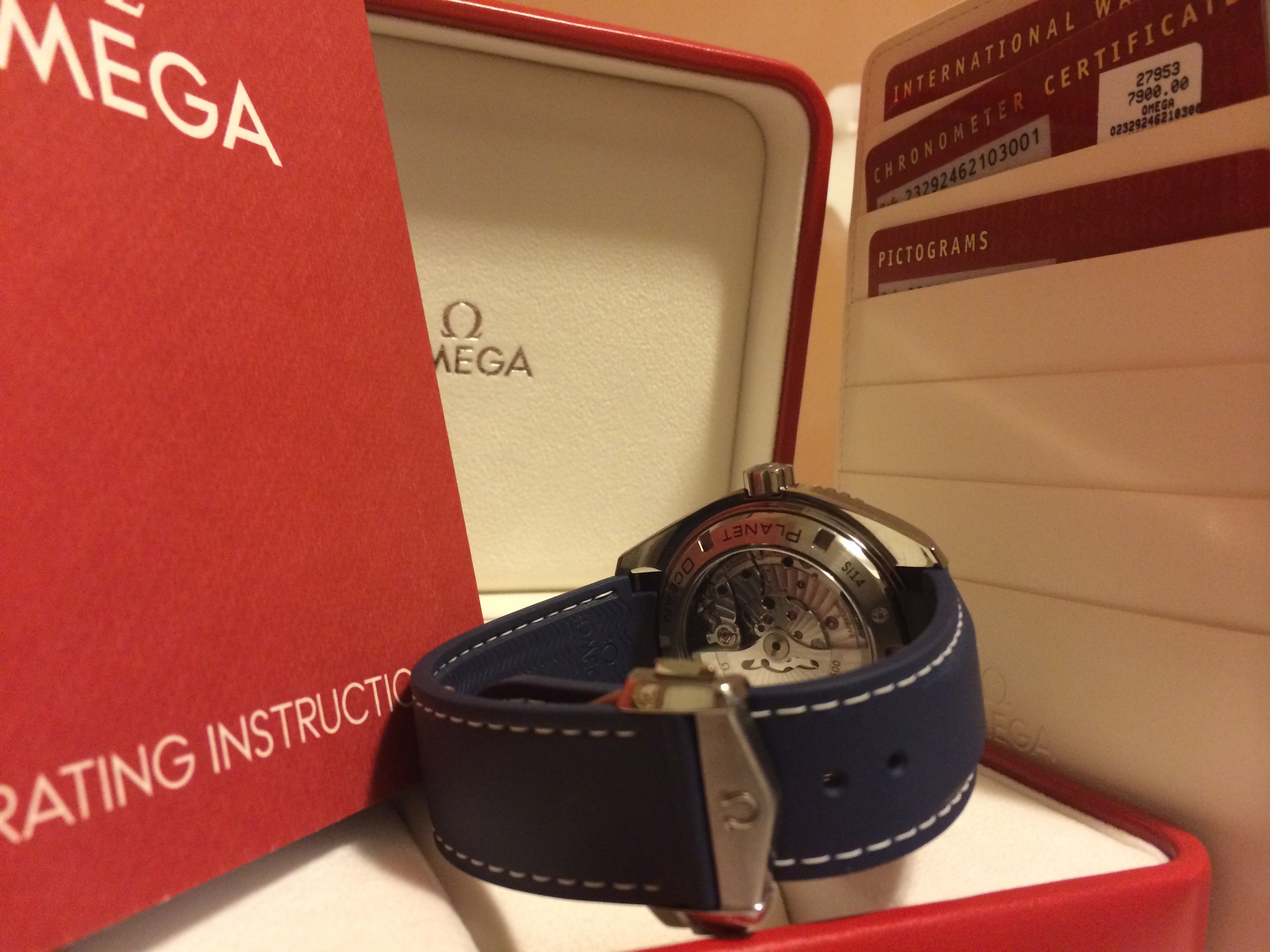 ·The is the beautiful OMEGA PO liquid metal TITANIUM on oem blue rubber with deployment.