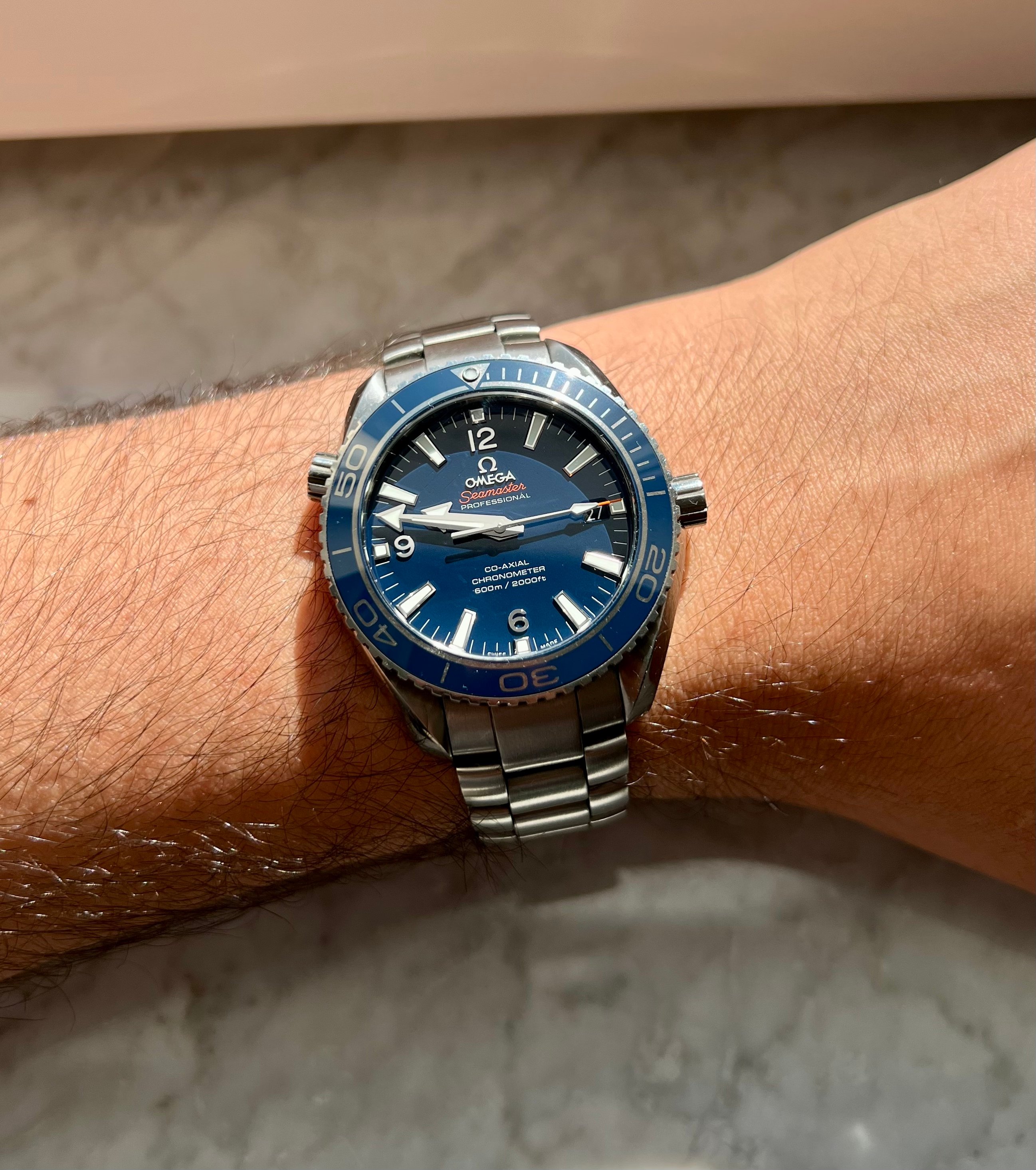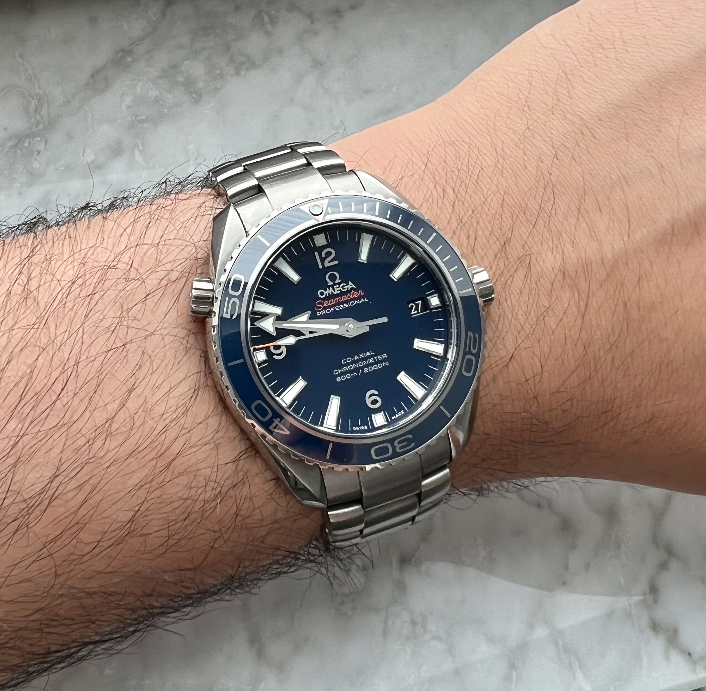 Im selling this blue Omega Planet Ocean LiquidMetal Blue with a 42 mm case.