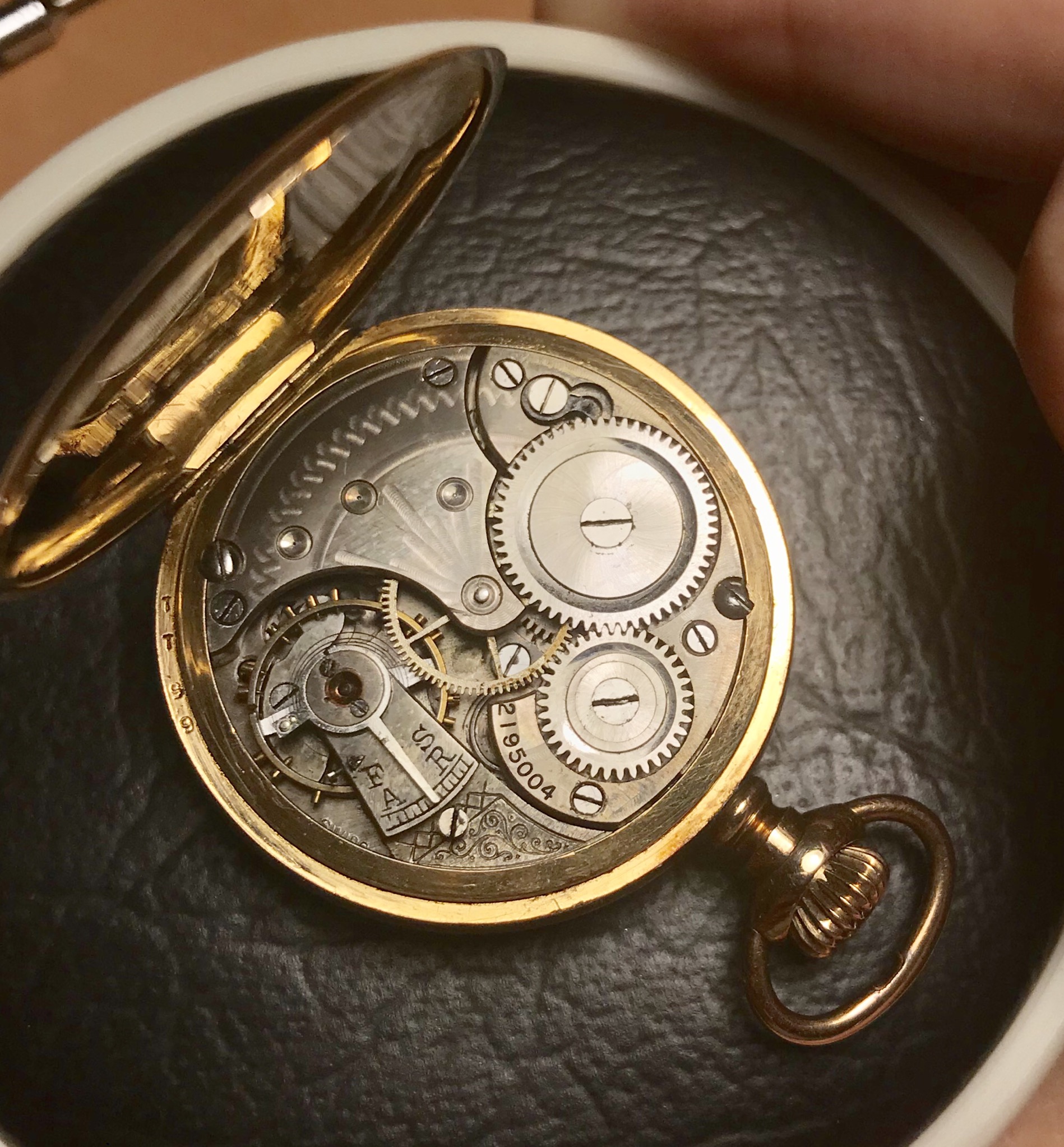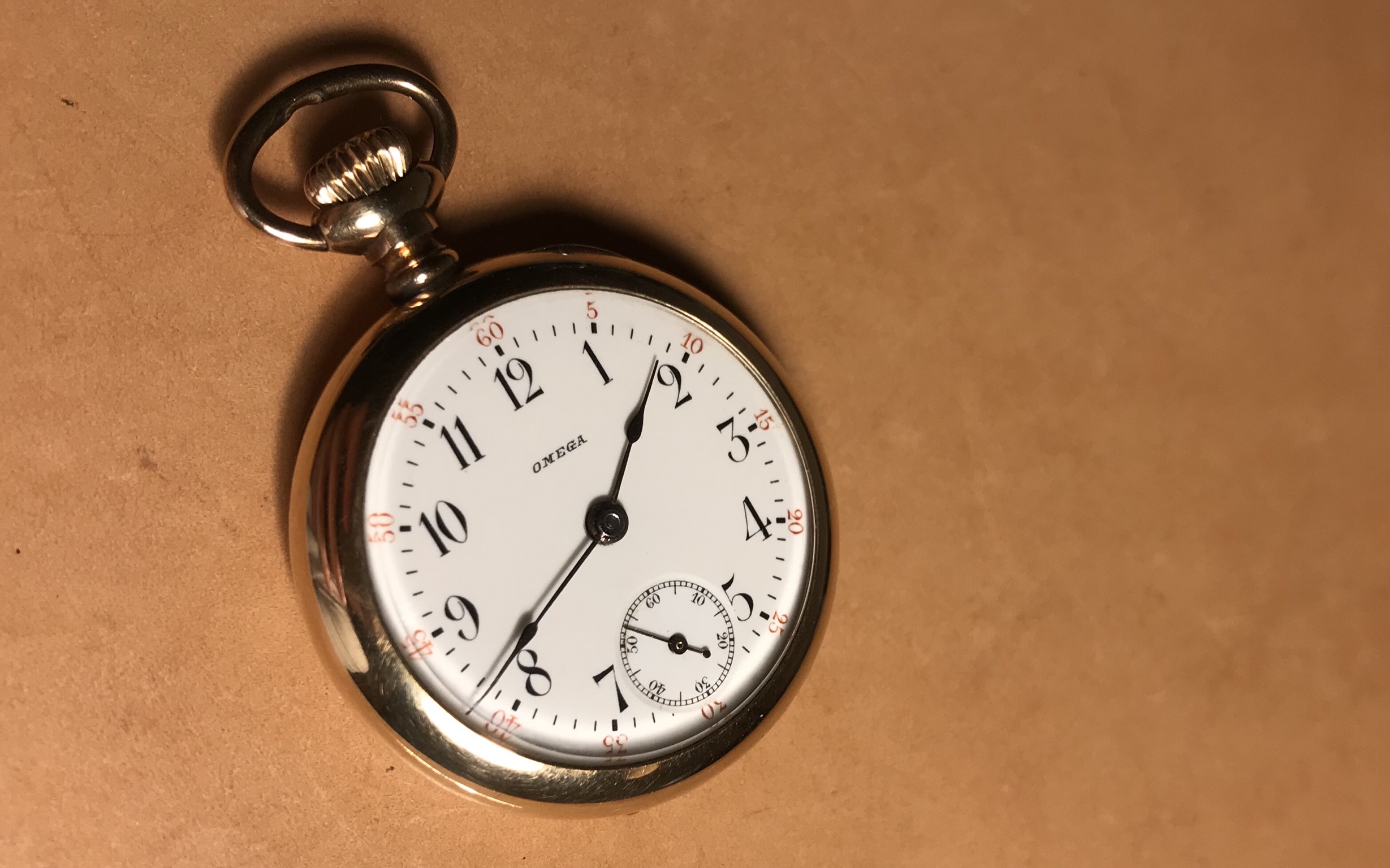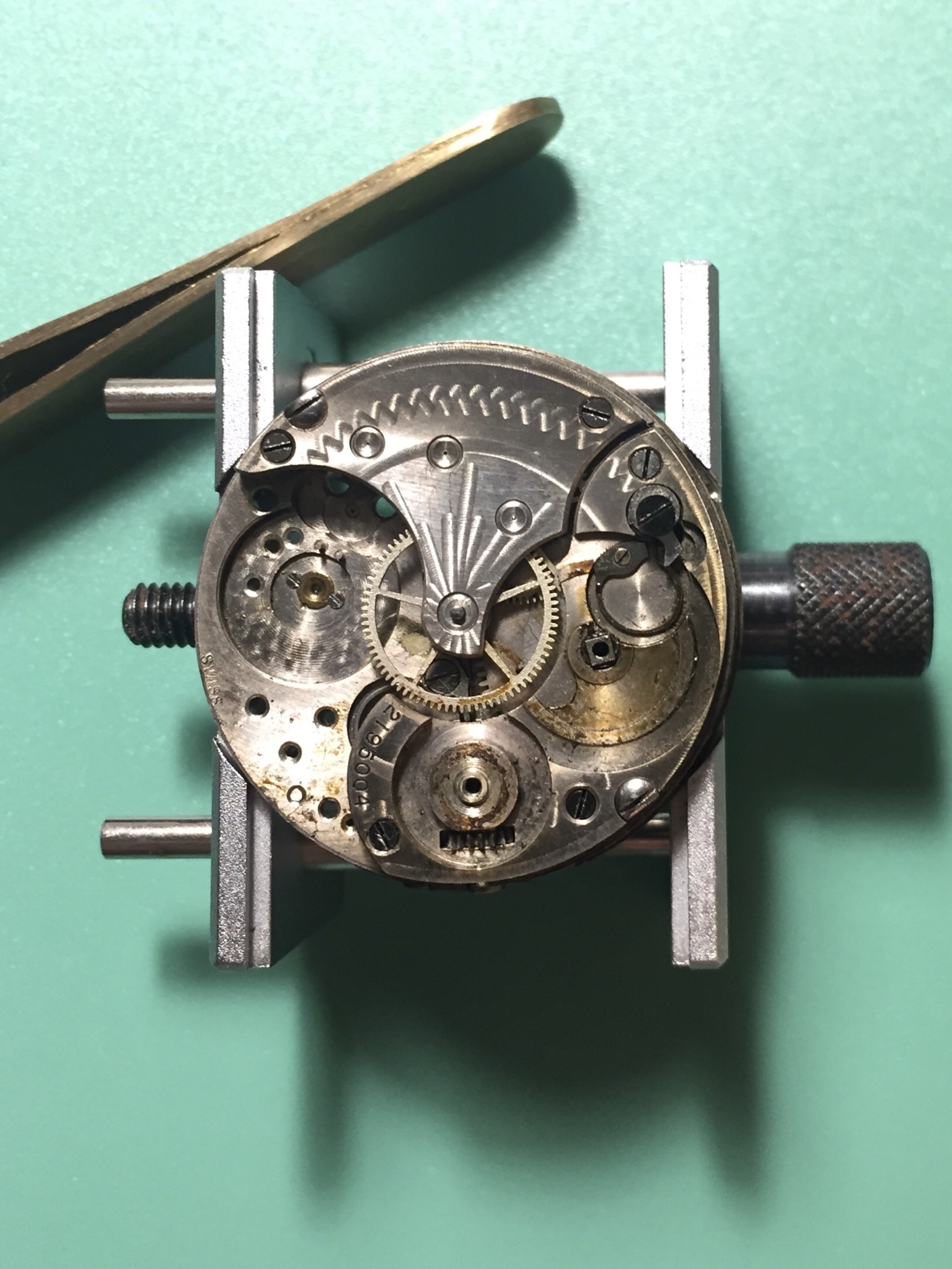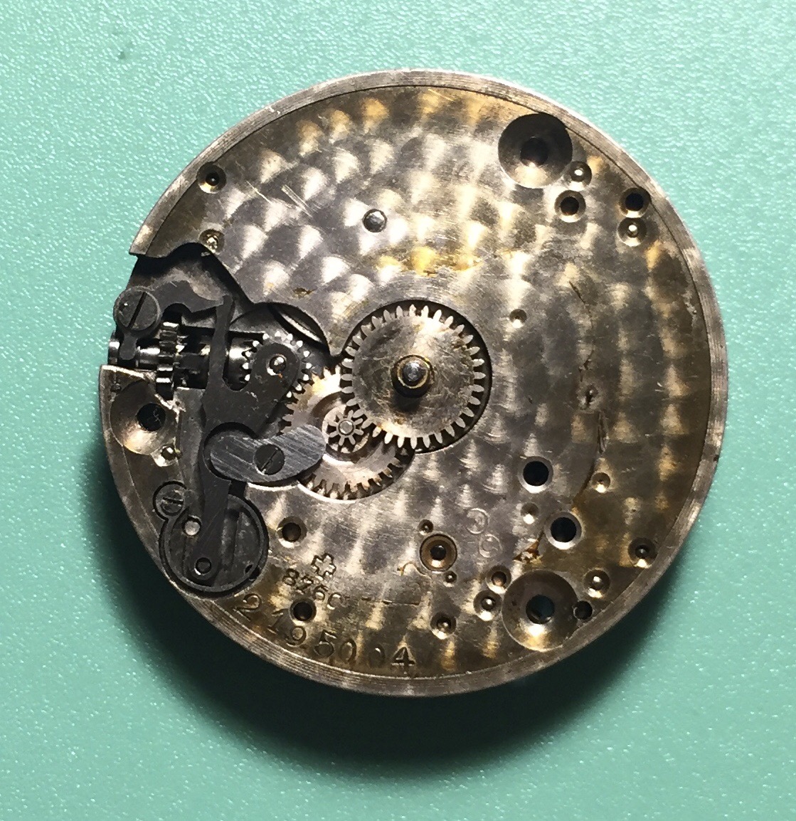 This is perhaps my first Omega pocket watch, an impulse buy to tinker with. It smells horribly of WD40...obviously not running. You can probably just make out the old, solidified oil on the centre wheel. It seems to be quite an early piece from 1900s, when watchmakers still combined the movements and cases together.