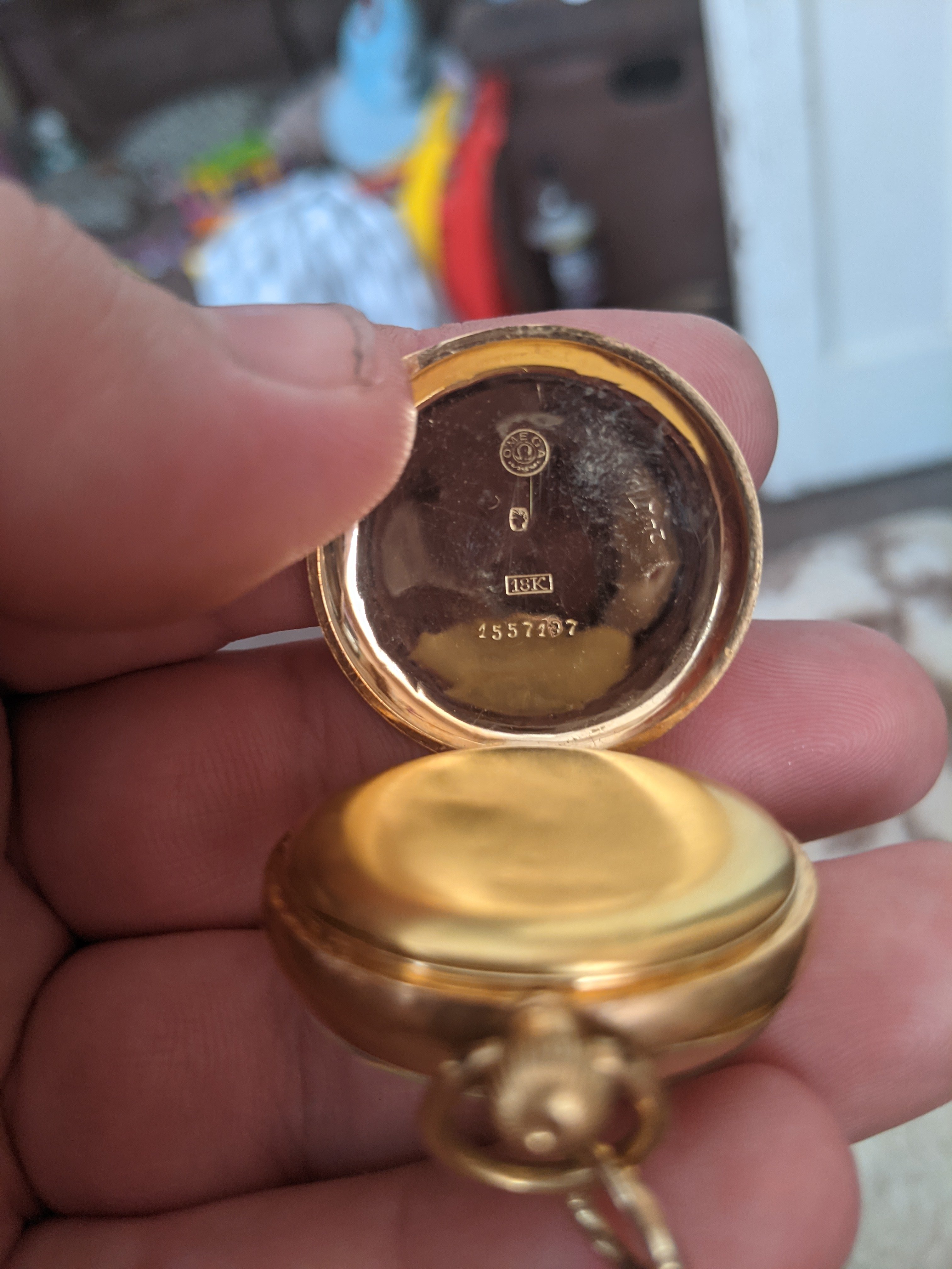 It is an Omega watch (we see the marks on the movement and the case). The movement number will be under the dial. The dial is not signed Omega - which was often the case in those days. The dial is a gilded, engraved metal dial, fairly typical for that period.