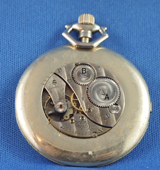 No such part as a “mainspring wheel”. You might be referring to the “ratchet wheel” as pictured at A. That screw is usually a right hand thread. However, if you refer to the crown wheel at B, that screw is often a left hand thread. It depends on the particular watch. In the image, A is the ratchet wheel, and B is the crown wheel. The watch in the image an a U S made Elgin. The screw at A is a right hand thread. The one at B is a LEFT hand thread. Without your having told us which particular Omega you are dealing with, I suspect the two screws will be like the example I’ve shown. But on the odd occasion, with U S made watches, the screw at B is also a right hand thread.