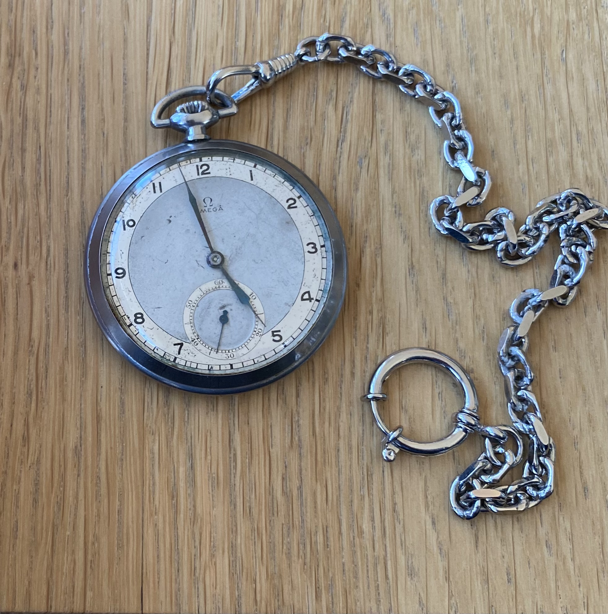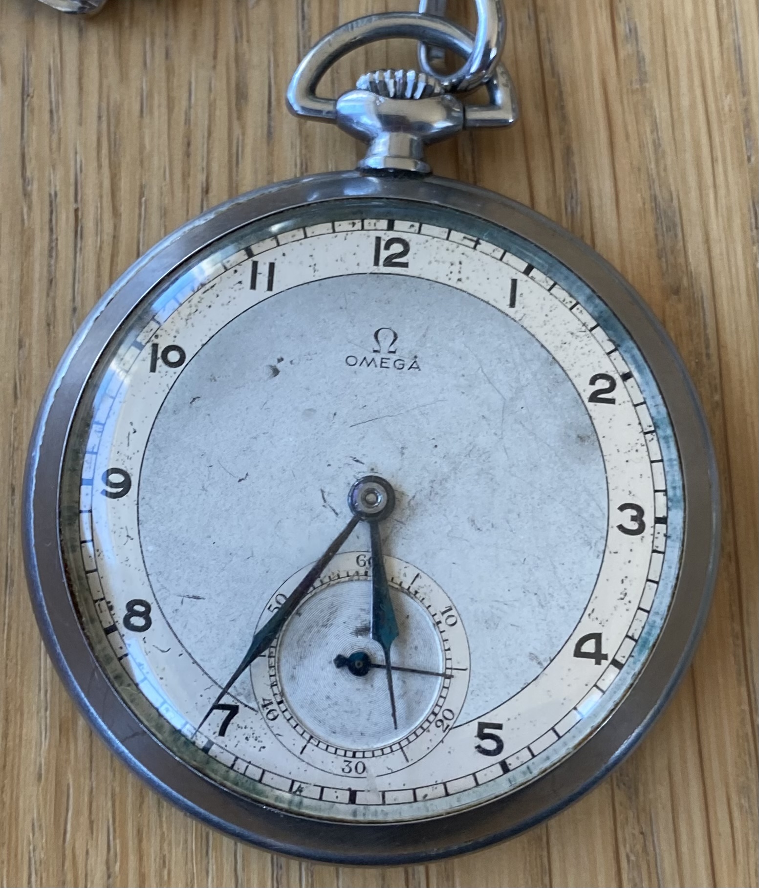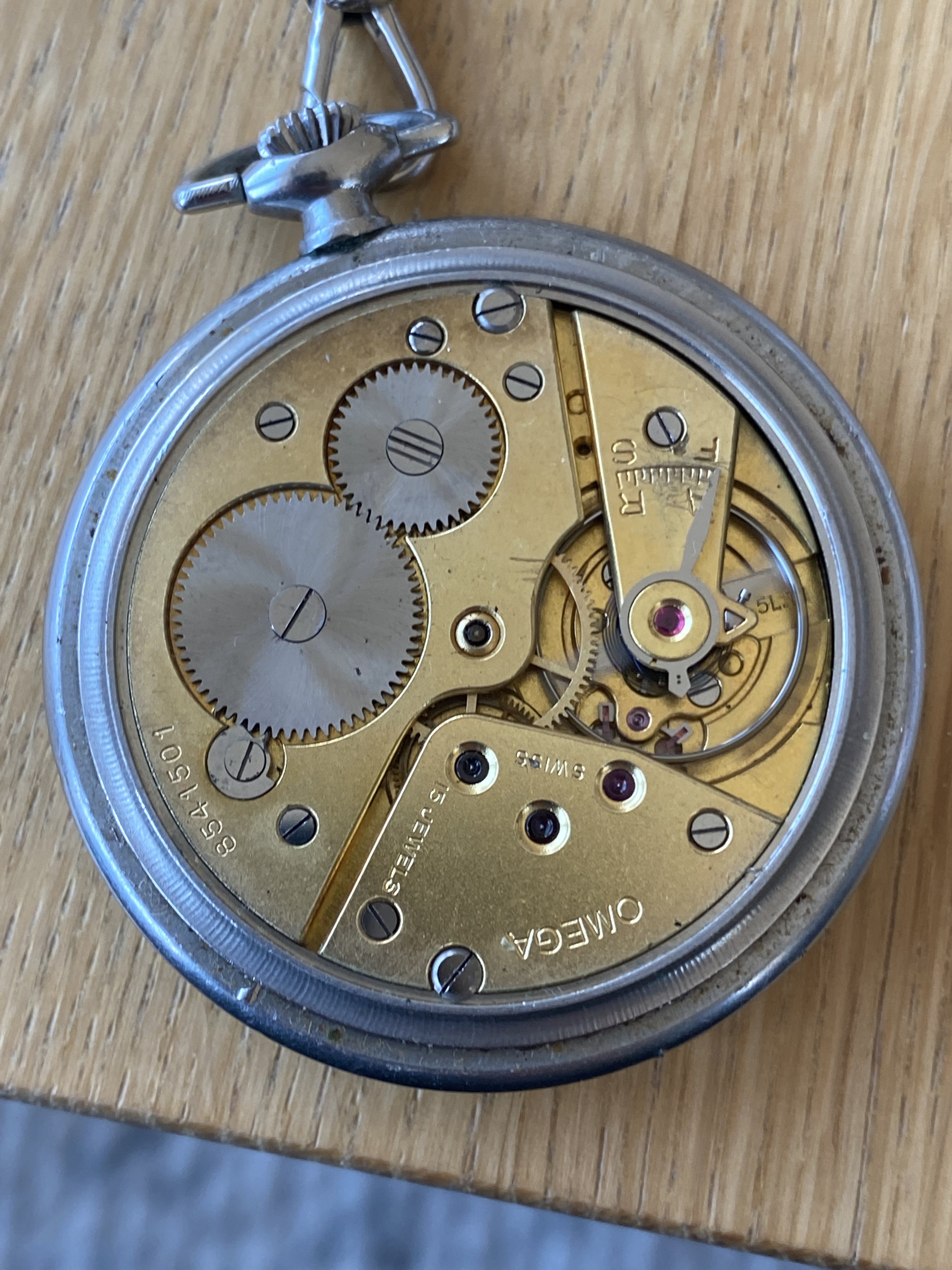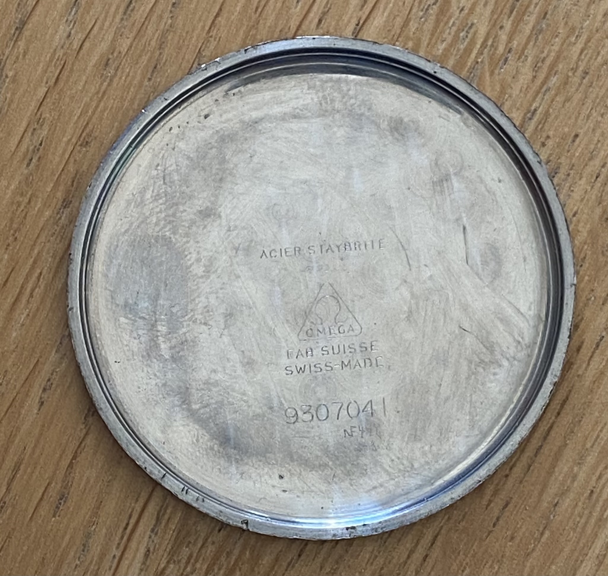 The movement (mechanism) appears to be a calibre 38.5 L T1. You may notice the number 5 L under the rim of the balance wheel. I think the diameter is 38.5 lignes. Ranfft suggests this movement was produced between 1933 and 1948. The serial number reference I checked states that the serial number on the mechanism is from 1934. Model name? I would expect that if this particular model had a name, it would be somewhere on the watch. Perhaps an Omega advertisement from circa 1934 that showed that model might prove me wrong. Price? Are you asking what it might have sold for when new, or what it might be worth on the market today. A vintage ad might answer the one question, but you’ll have to go on line to see what similar watches in base metal cases sell for today. That is, what they actually SELL for, not what people are asking for them. I see current on line offerings in the $400 to $500 range. But do they actually SELL for those prices?
