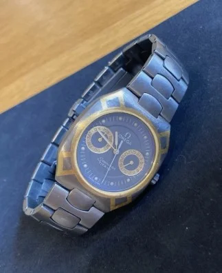 Back in the 1980s, a titanium watch with solid gold inlay with a complicated quartz movement made this thing absolute cutting edge in its day.