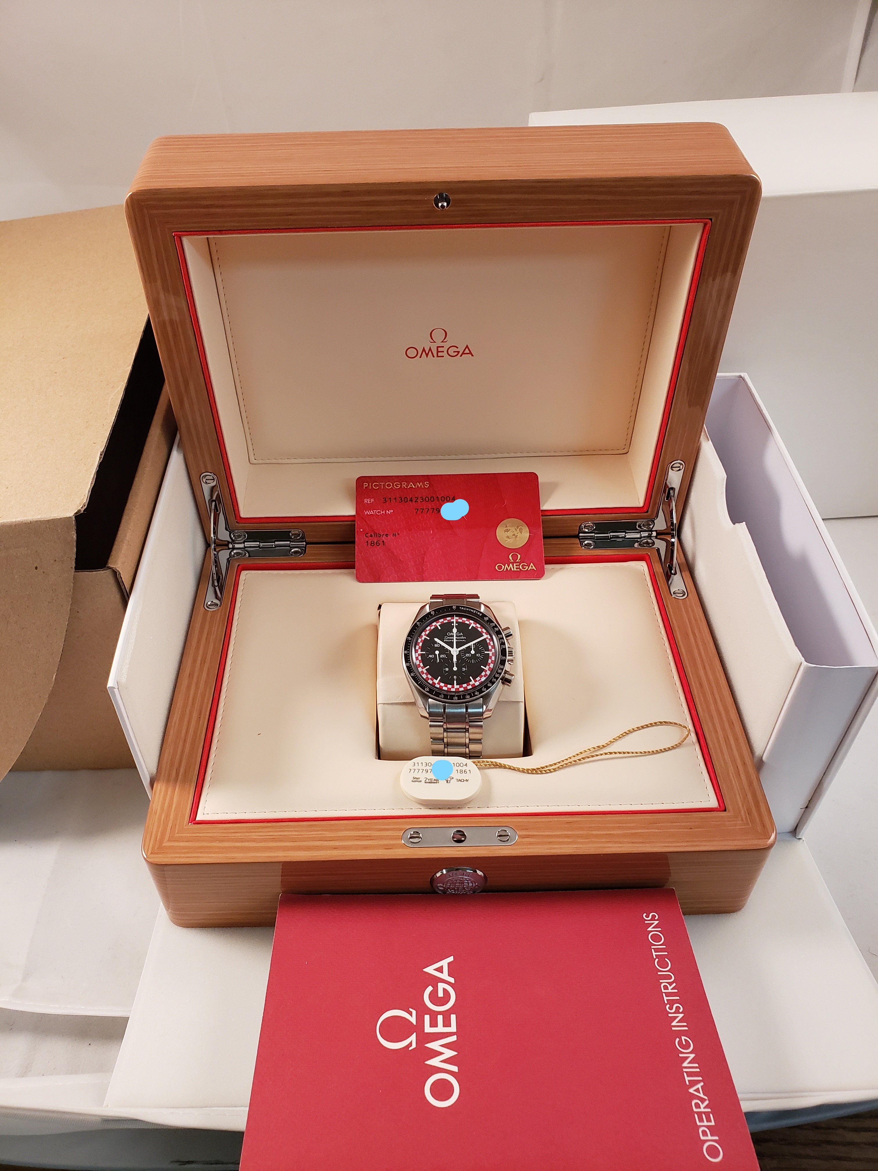 Accessories: Omega shipping box, Inner/Outer Box, Card holder, pictogram card, manual, serial tag