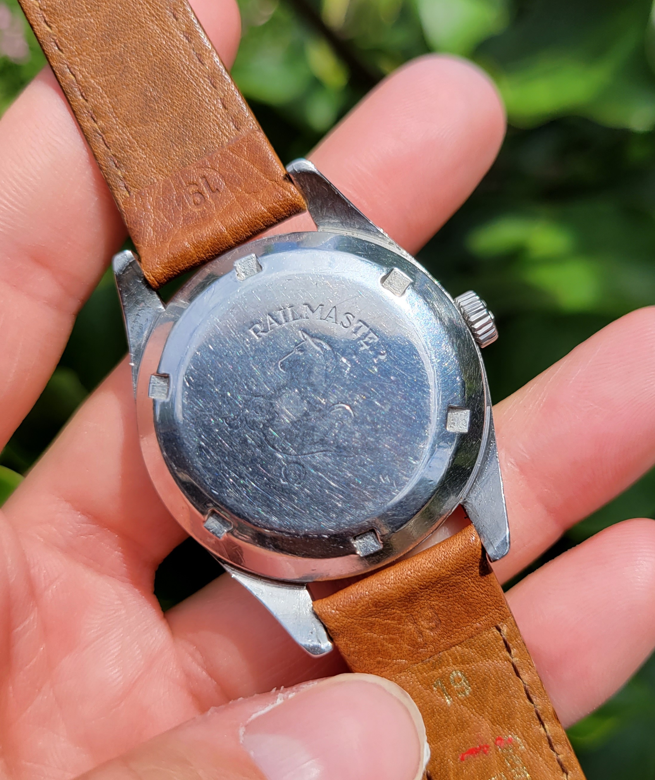 The antimagnetic cap and spring are present. Inside of the caseback is marked 135.004-63. My Extract request was successful showing delivery to Finland on January 23, 1964. I have not had the movement serviced as I have another Railmaster I wear more often.