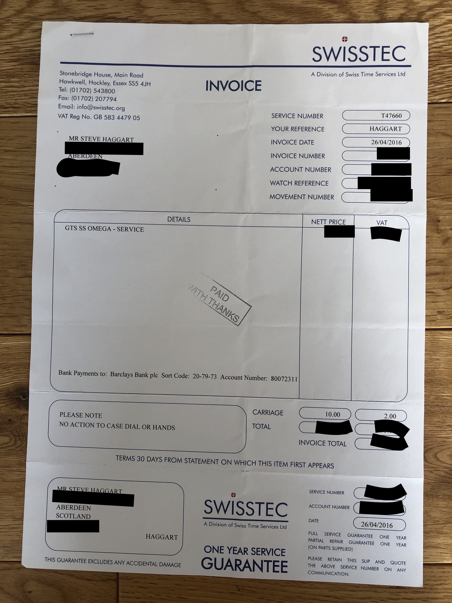 Included in the sale are the original Purchase receipt Invoice for the service and the Omega extract .