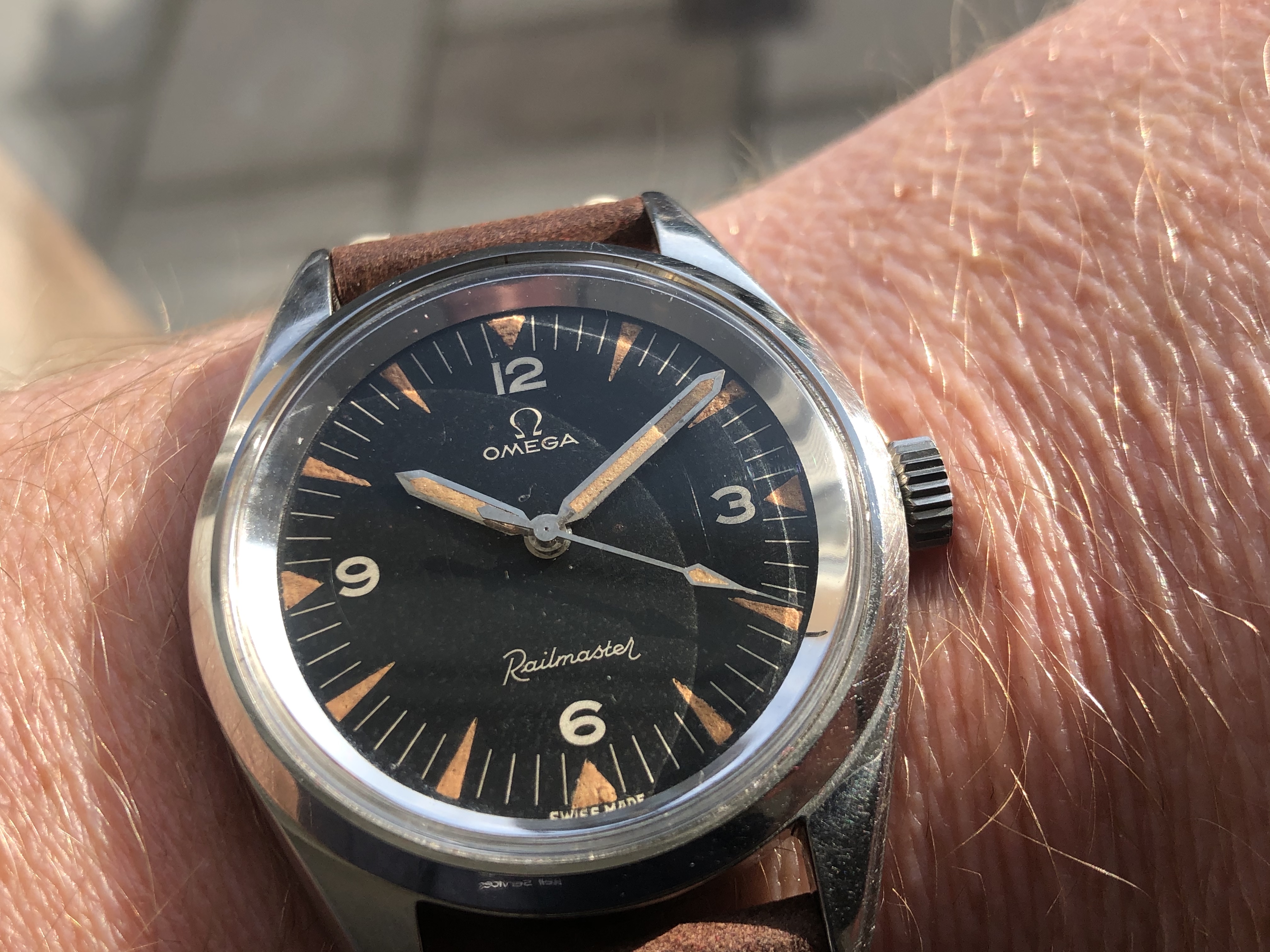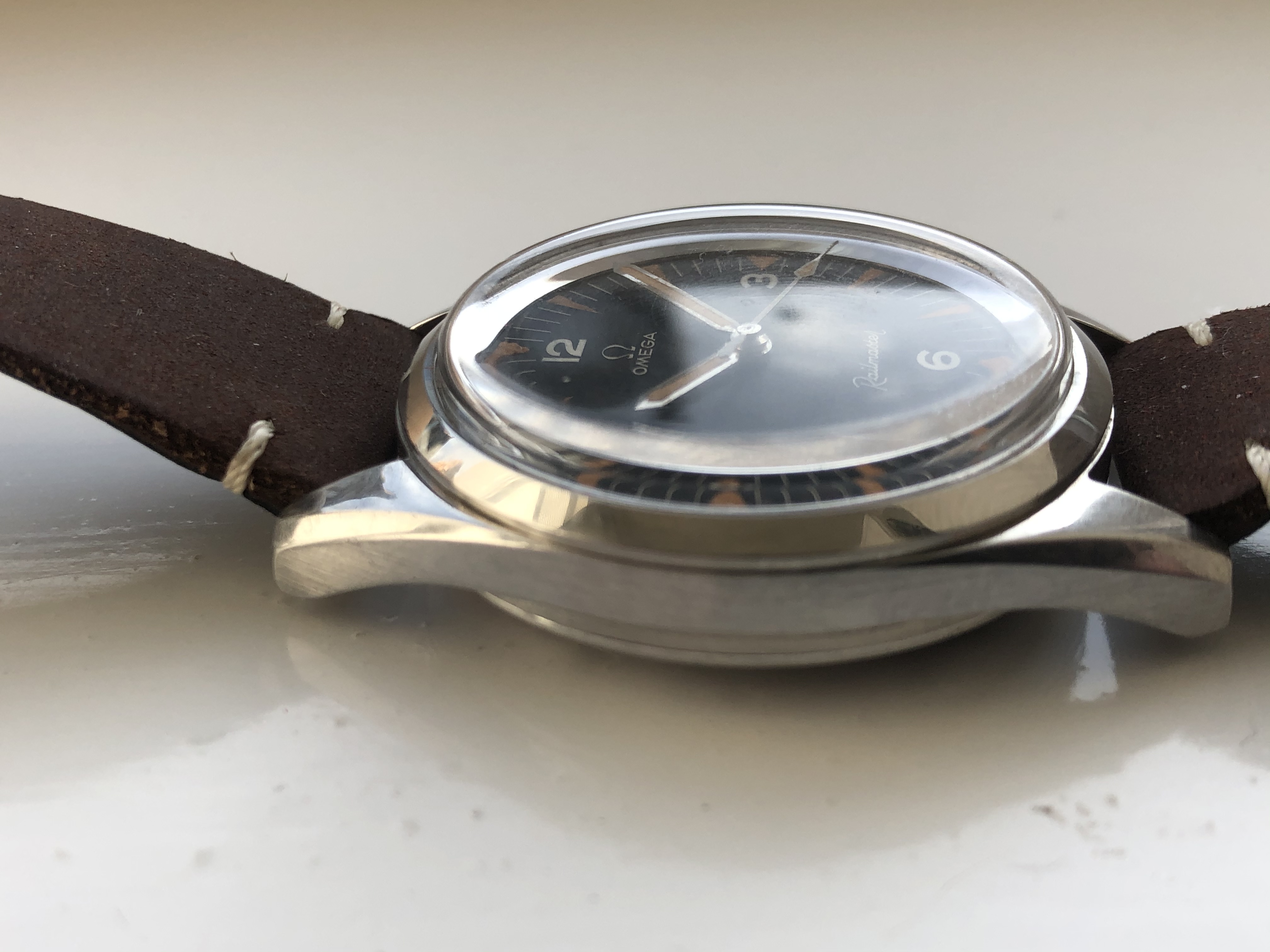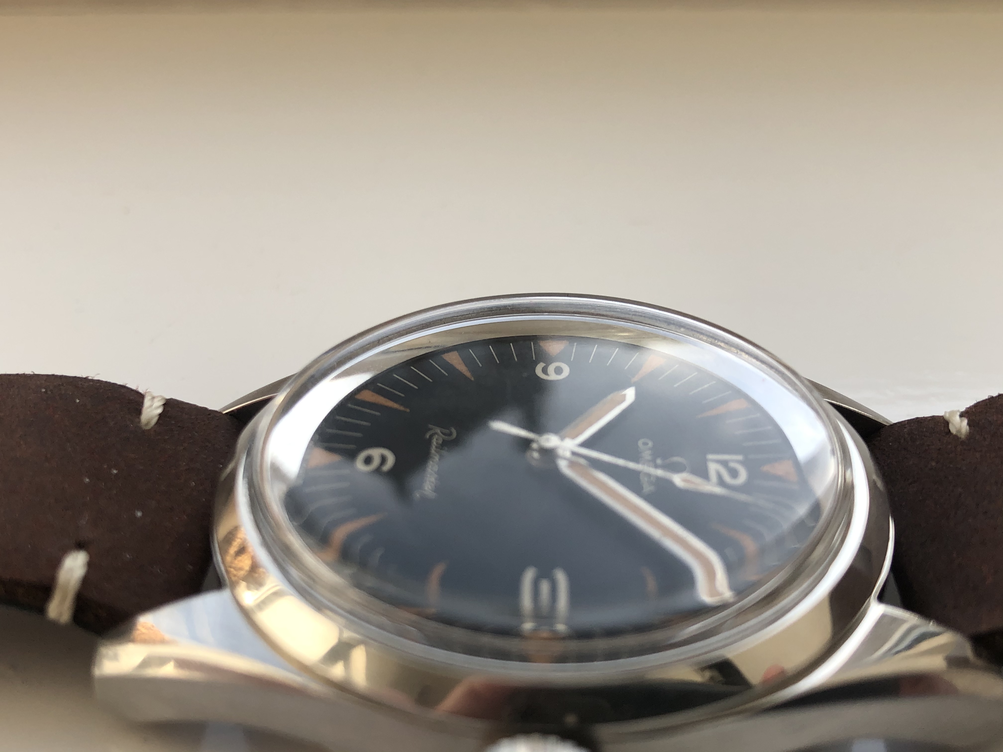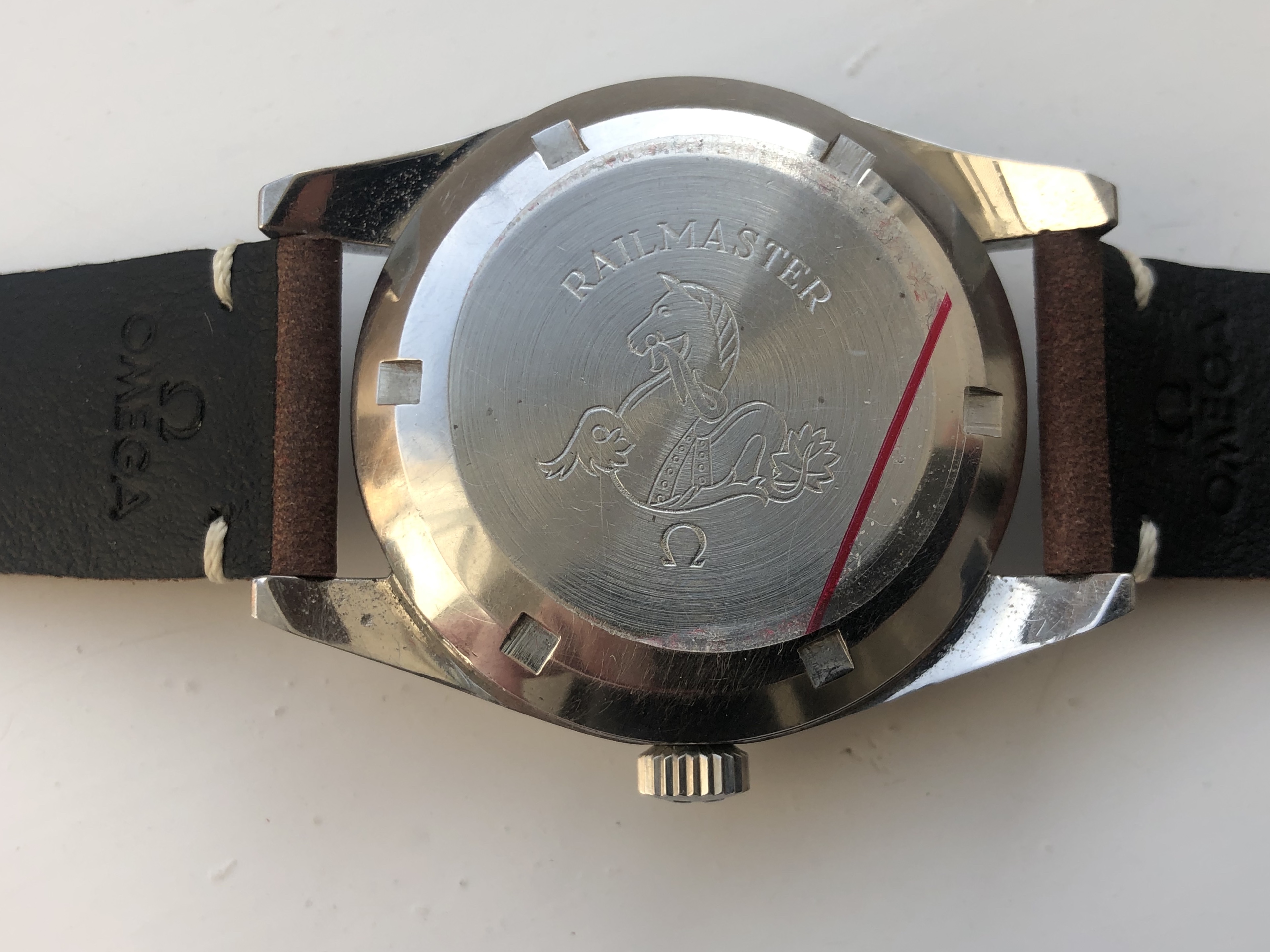 the case in sharp and unpolished with the railmaster Omega hippocampus very clear on the case back