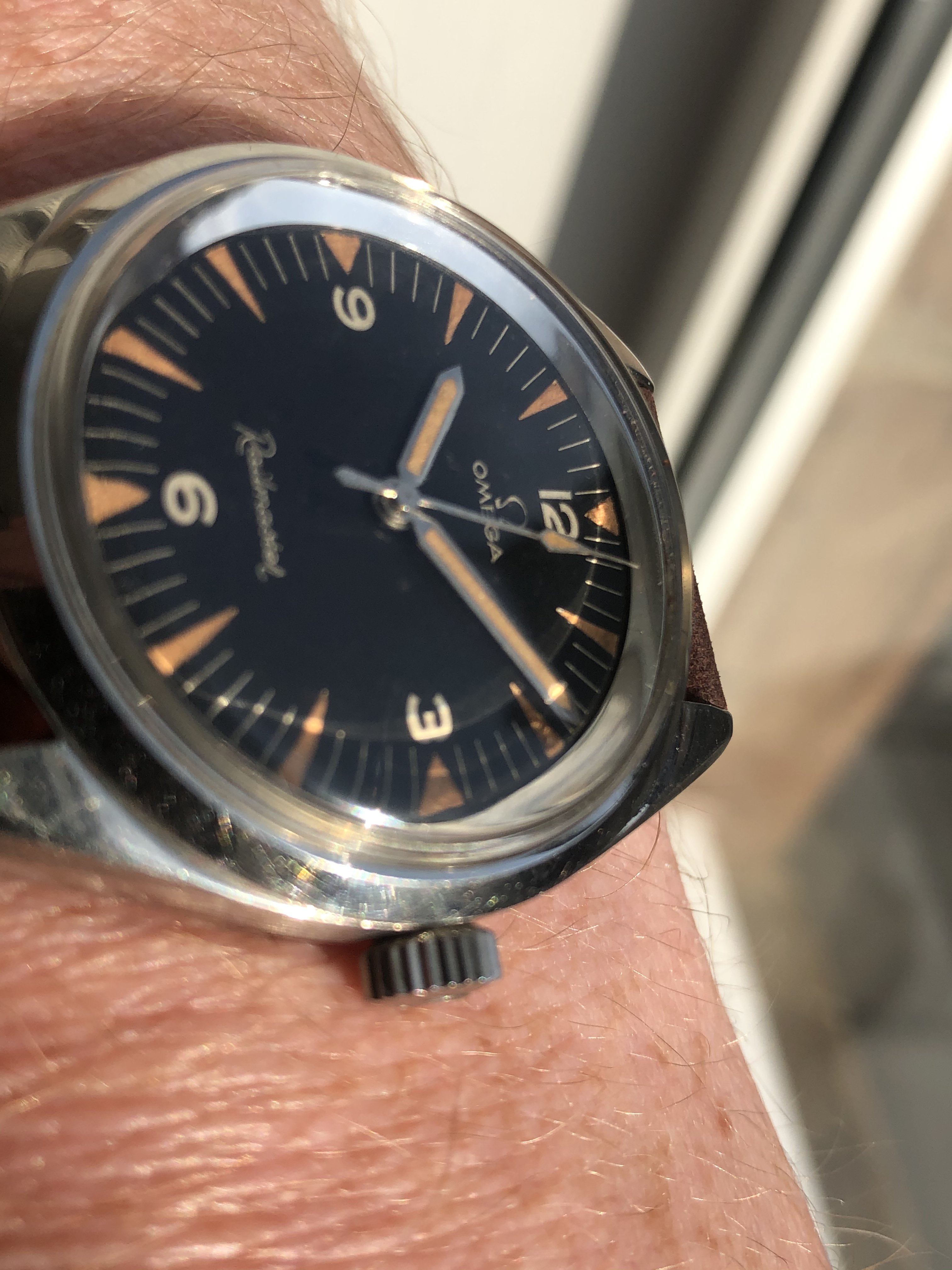 The Dial had aged well with a lovely colour of orange /Brown to the Dial & pencil hands with Swiss made clearly visible at 6 O'clock mark