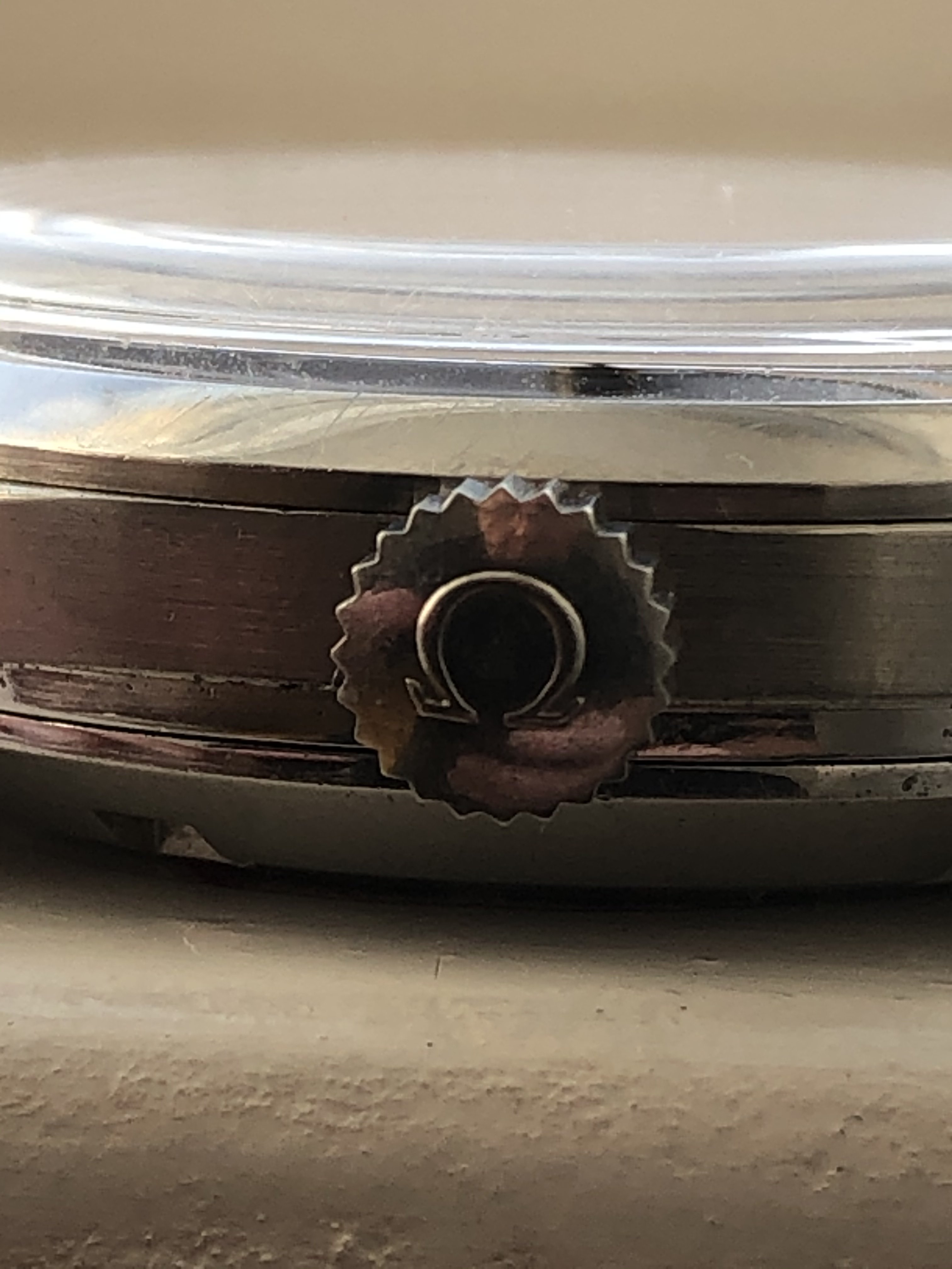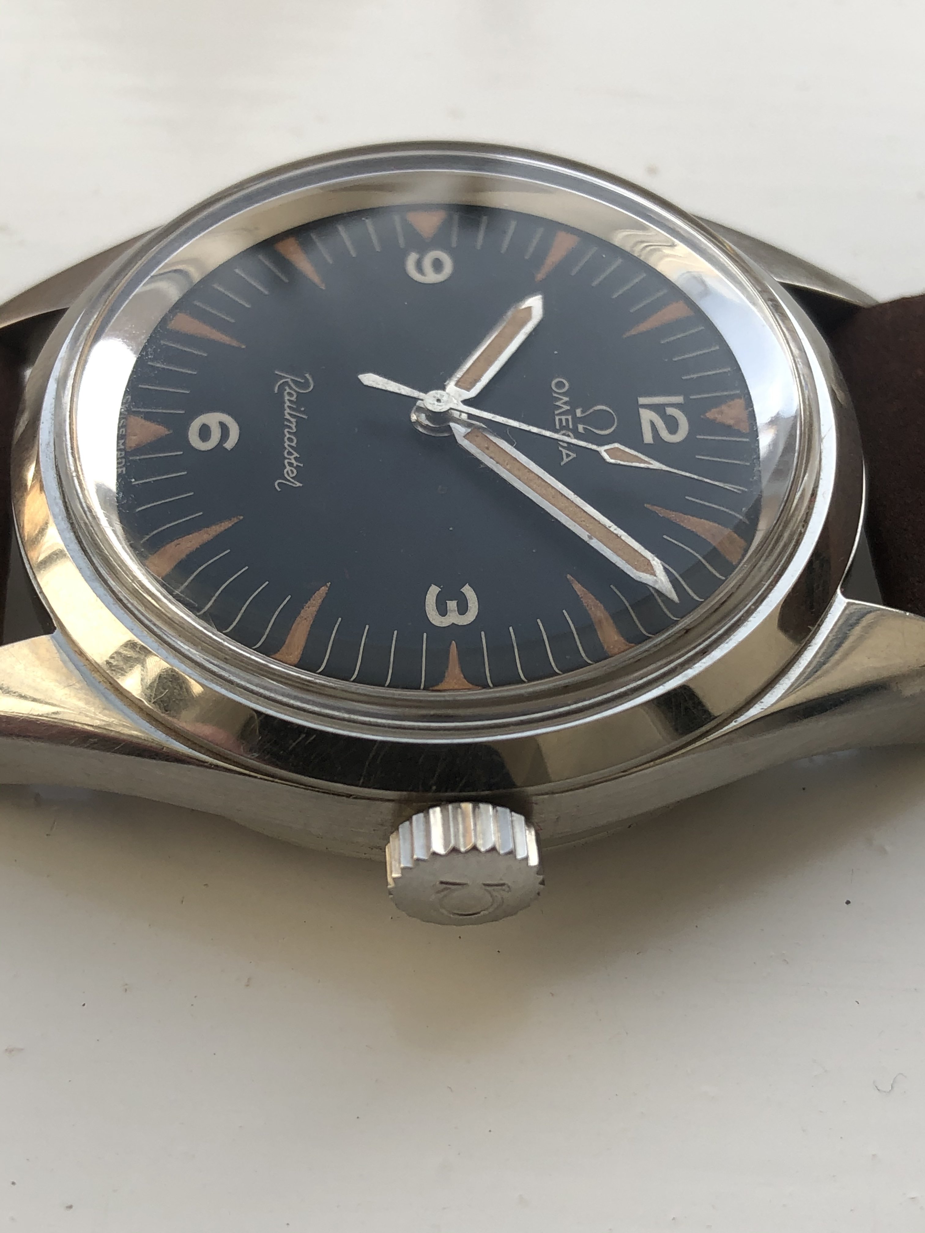 the case in sharp and unpolished with the railmaster Omega hippocampus very clear on the case back