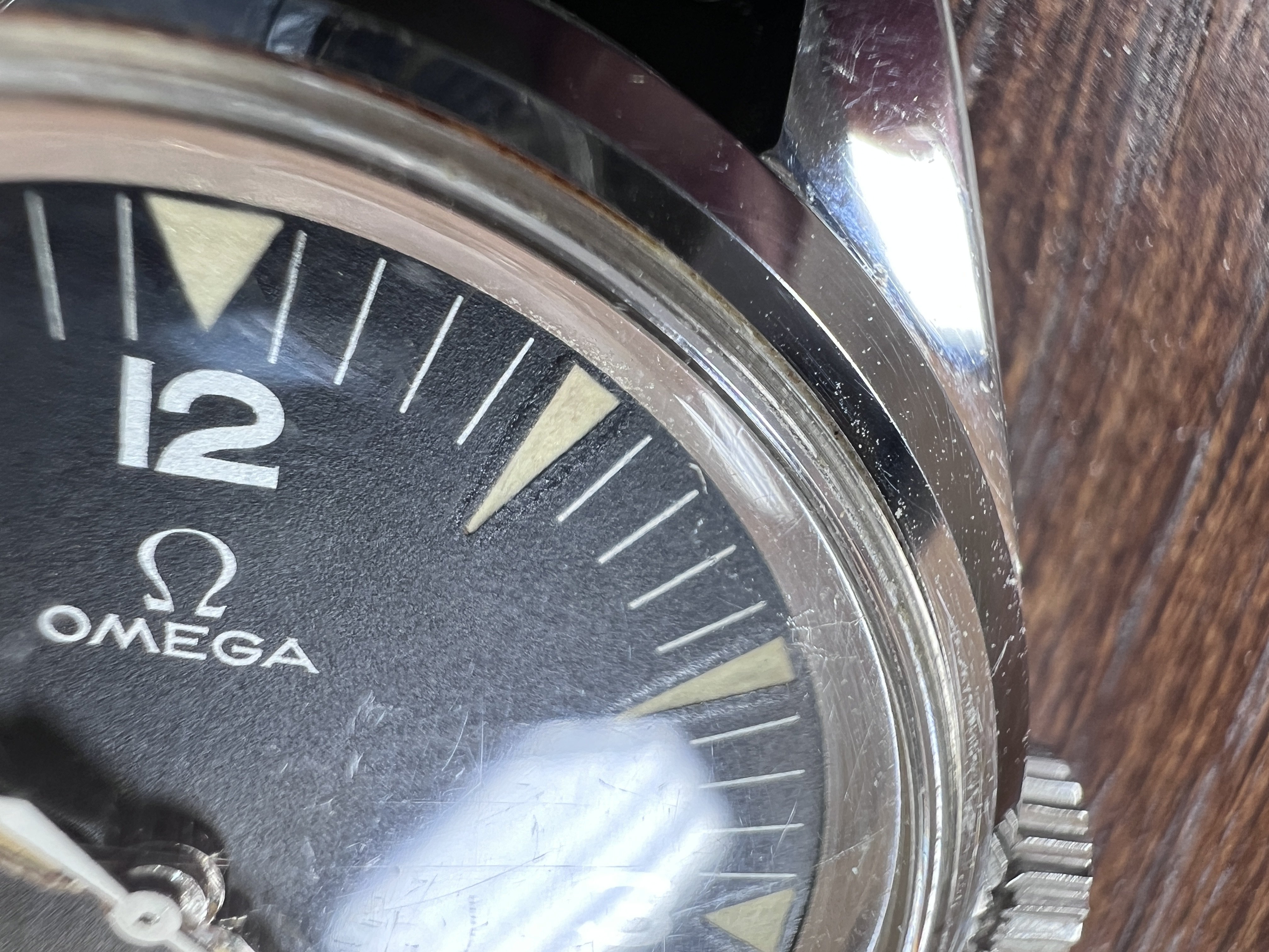 The crown is the old flatfoot, and also the Omega logo on the crystal.