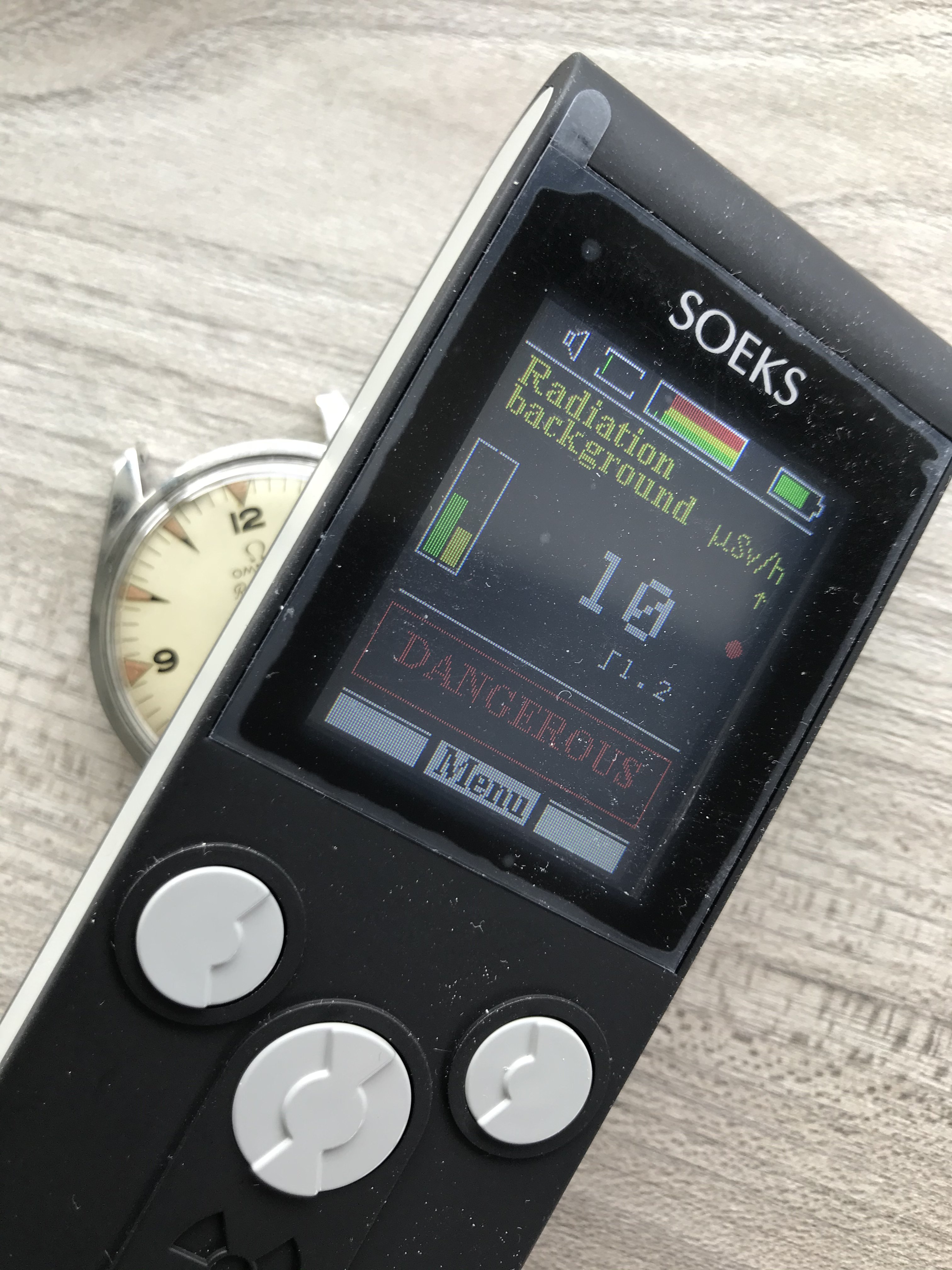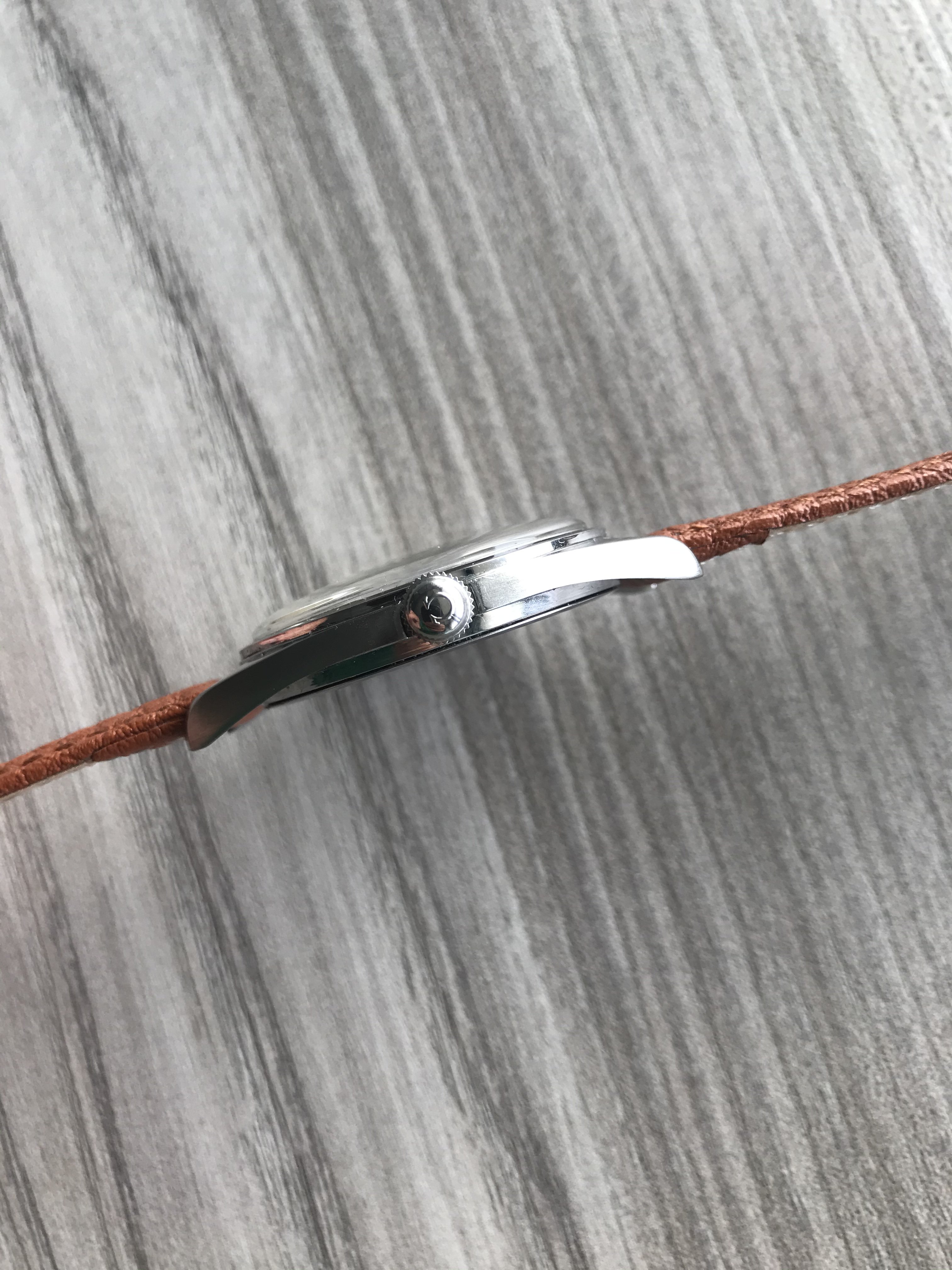 The dial is free of scratches. It has a small spot near the center. You can see it from the pictures. The radium on the indexes is full and with a orange-brown color. The radium of the hands matches the color of the indexes. It is missing a small radium part in the minute hand. The hands show the typical oxidation on the metal seen in some examples.