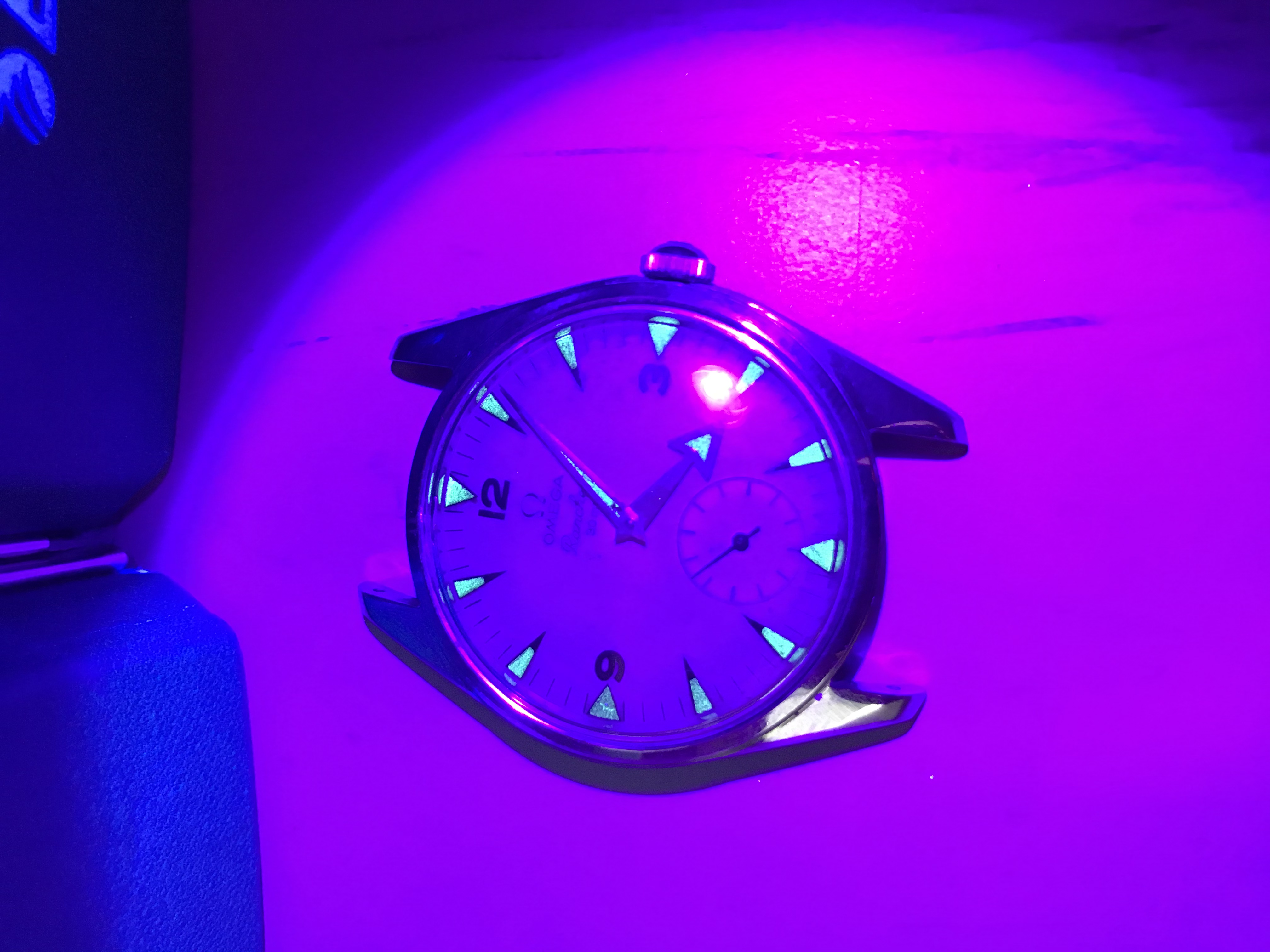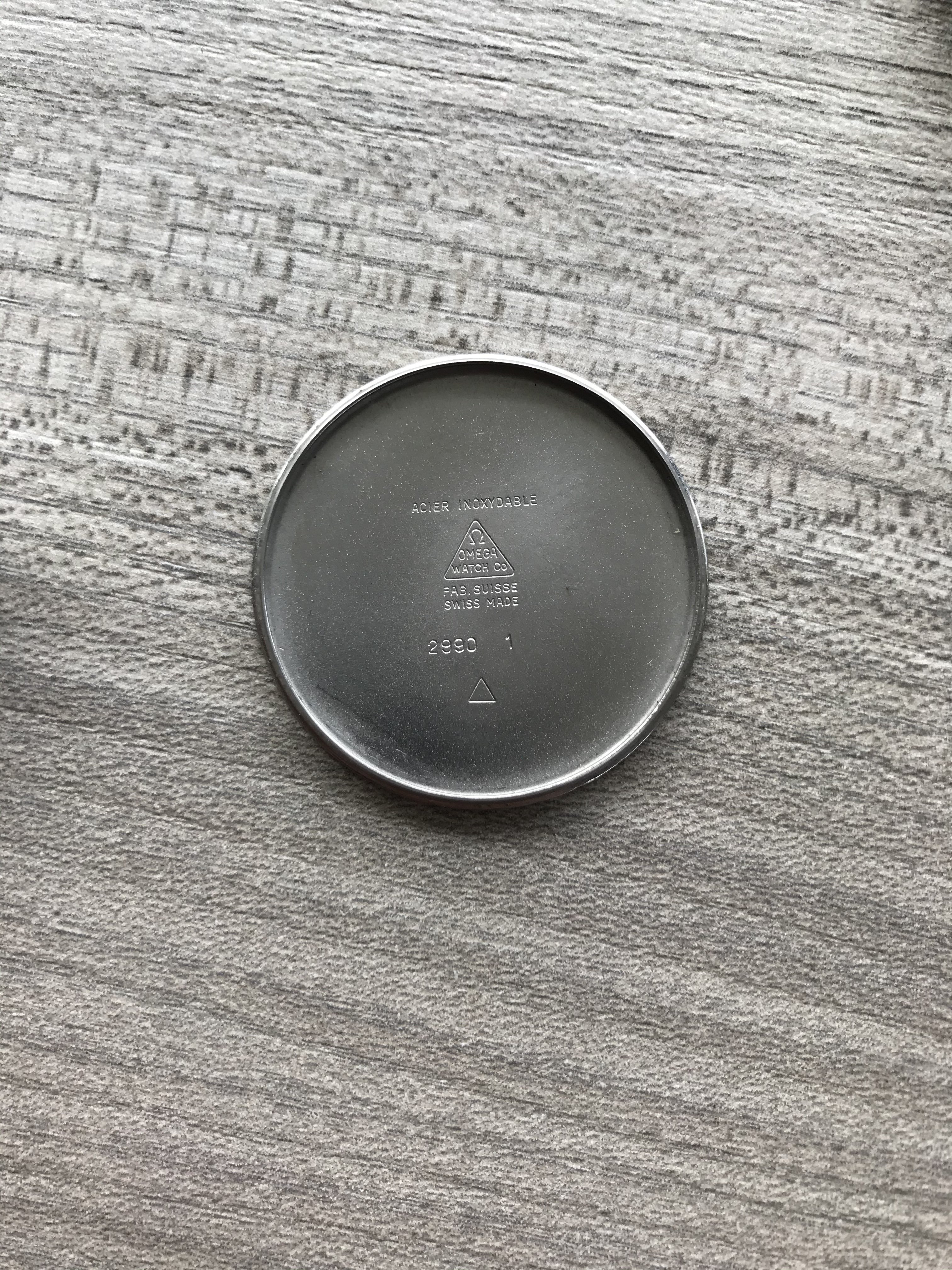 The plexyglass is the original one with the old Omega logo at the center. It has a sign near 12 hours. It's a small crack but it is under the edge so not clearly visible when wearing the watch.