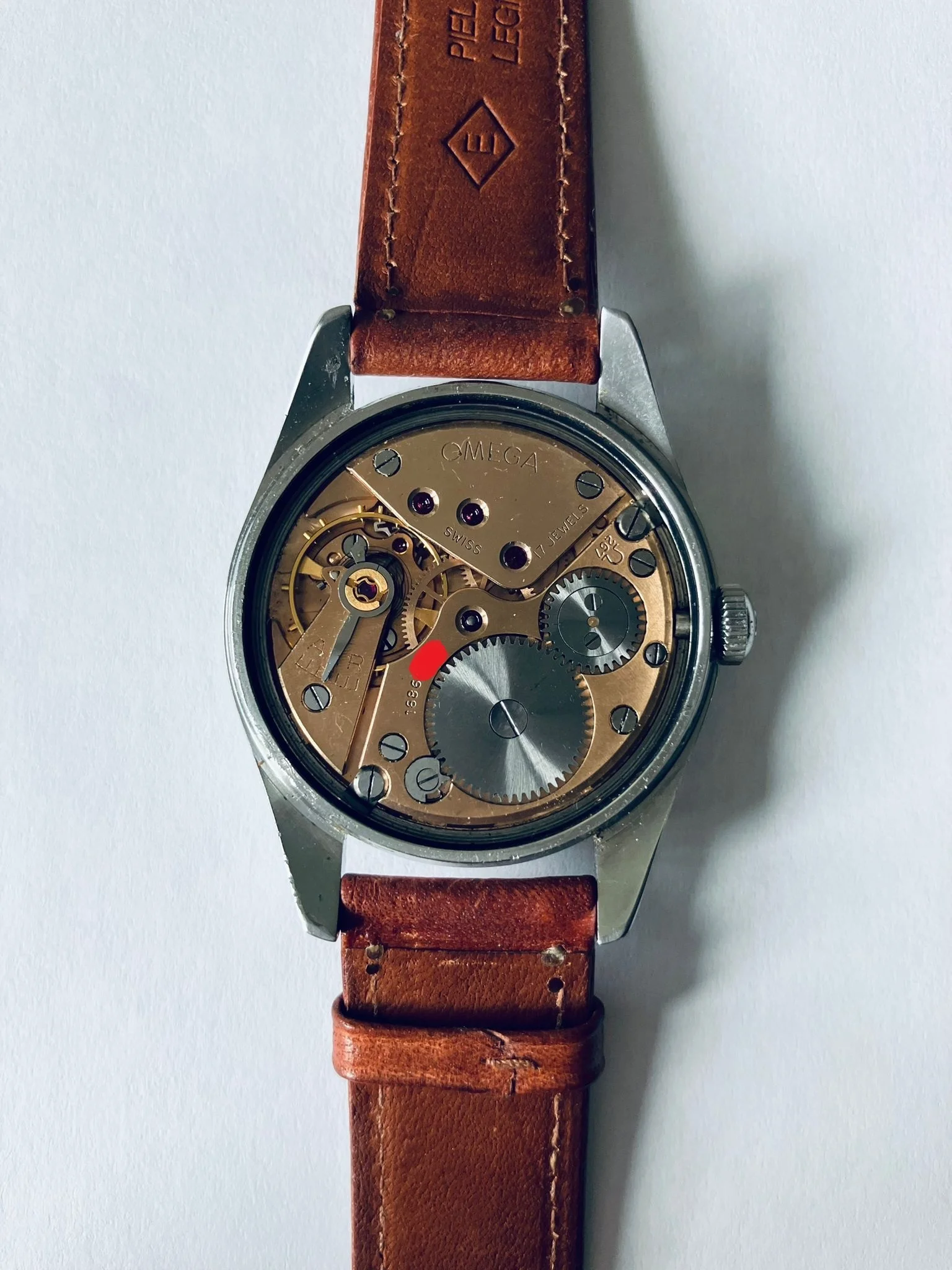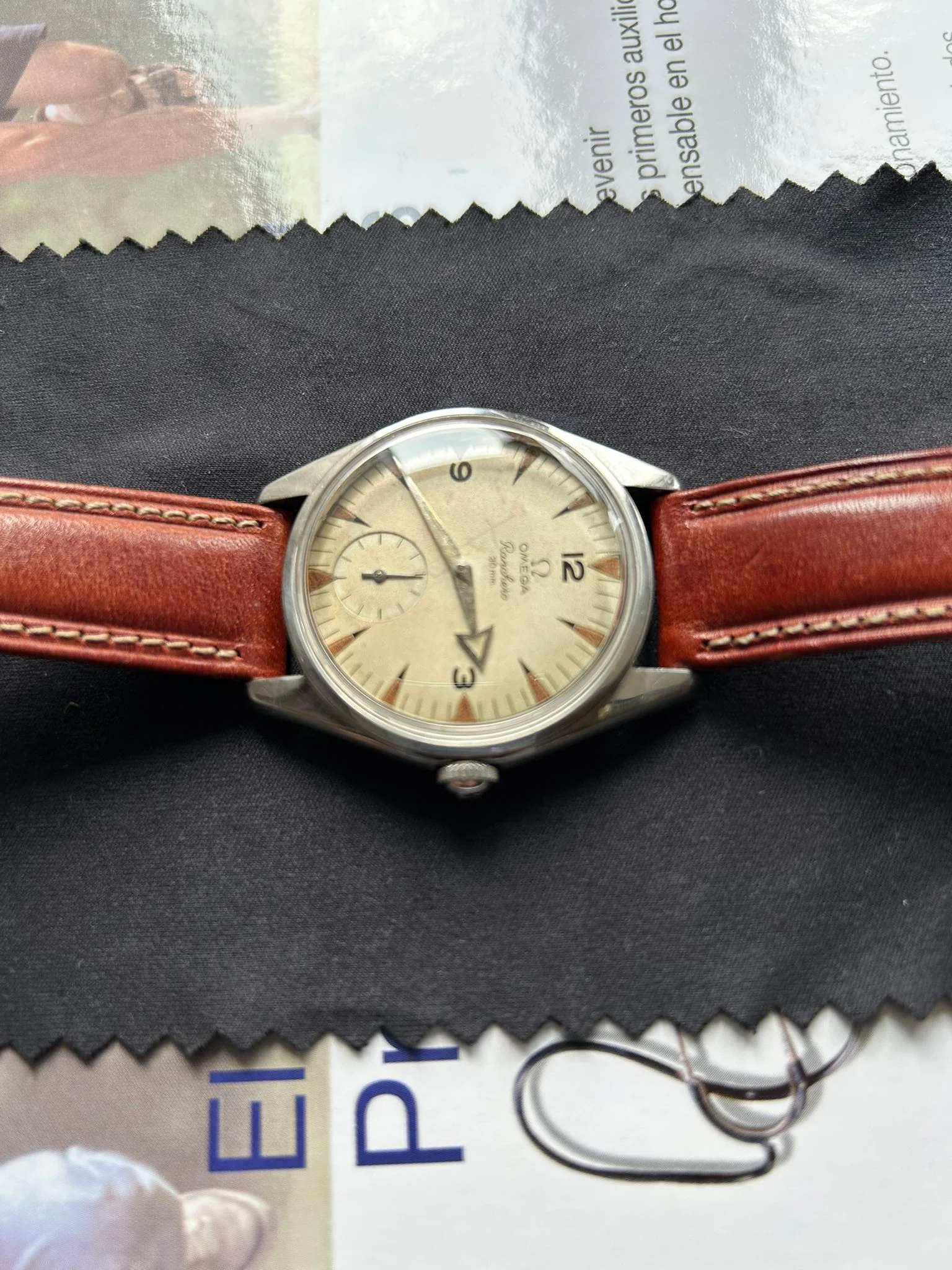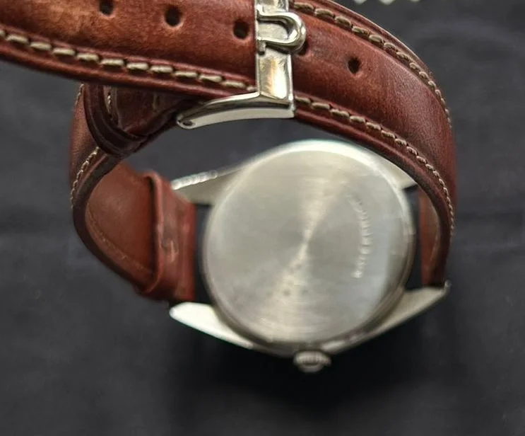 The project is based on a very good case and movement. I'll post some photos, and then there's the dial. This is a dial that I think we could call a barn find. I bought it from a watchmaker, and the story is that it's from an Omega Ranchero, and as soon as I bought it, the dial was replaced with a Seamaster dial. You know, at that time, Seamasters were much more expensive than Rancheros, and those things were sometimes done. The dial stayed in a drawer until now, and I bought it from the watchmaker.
