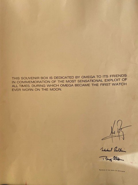 Measureing at about 40cm by 50cm, this box is really heavy but i will ship Worldwide still. It really is a cool set to the Omega addict and nice to be part of your Omega watches collection. The photo that's missing is the one of Buzz Aldrin on the Moon.
