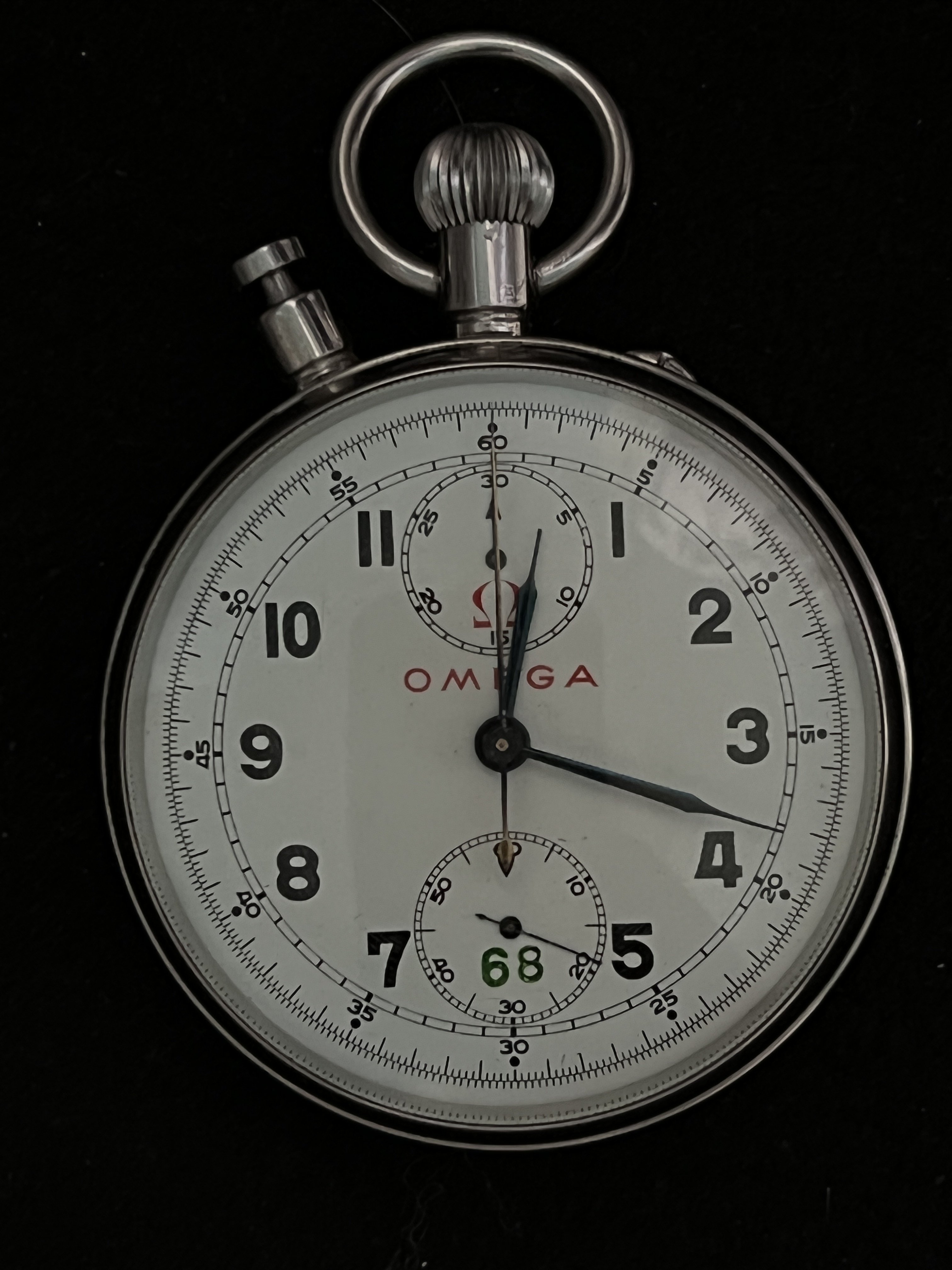 Are there any markings on the case back? If it was a competitively used model, that is for actually timing events, the 68 could well be a regulatory body inventory number that relates to it's regulation and timekeeping accuracy records.