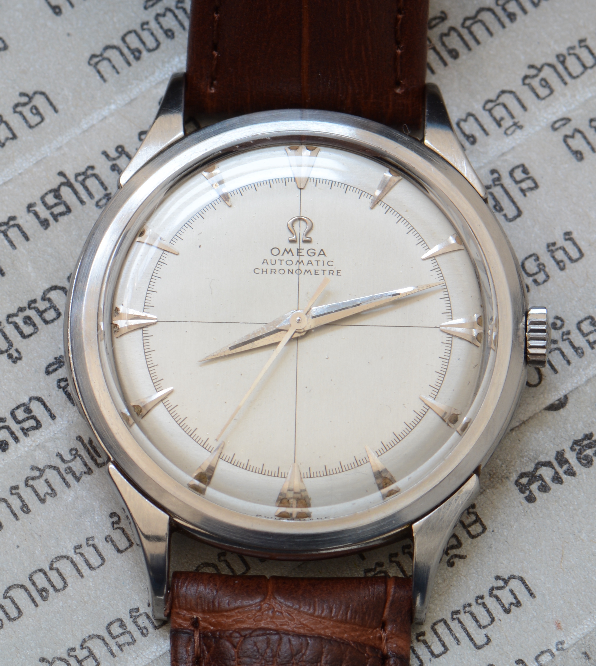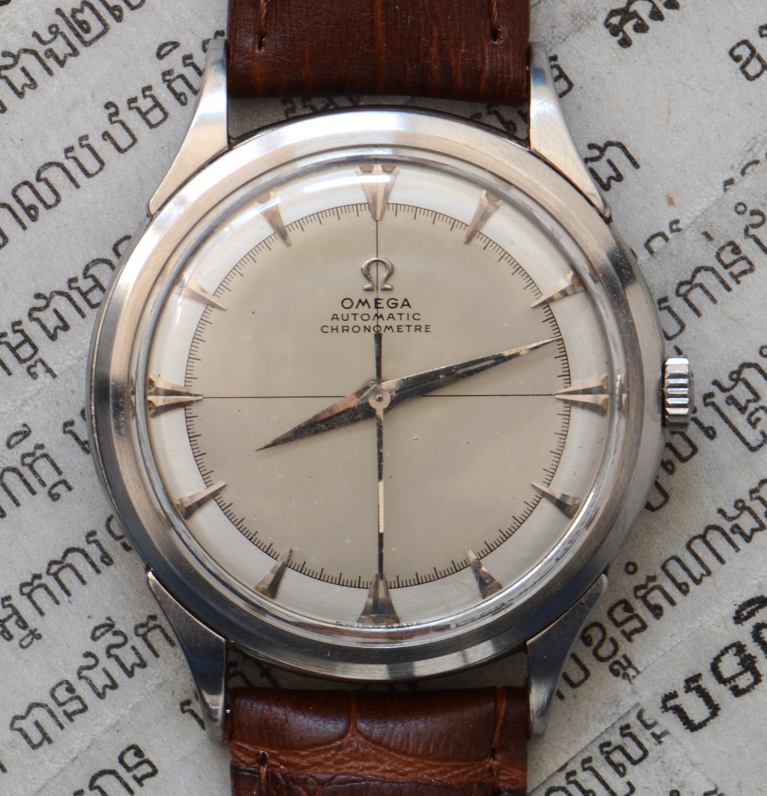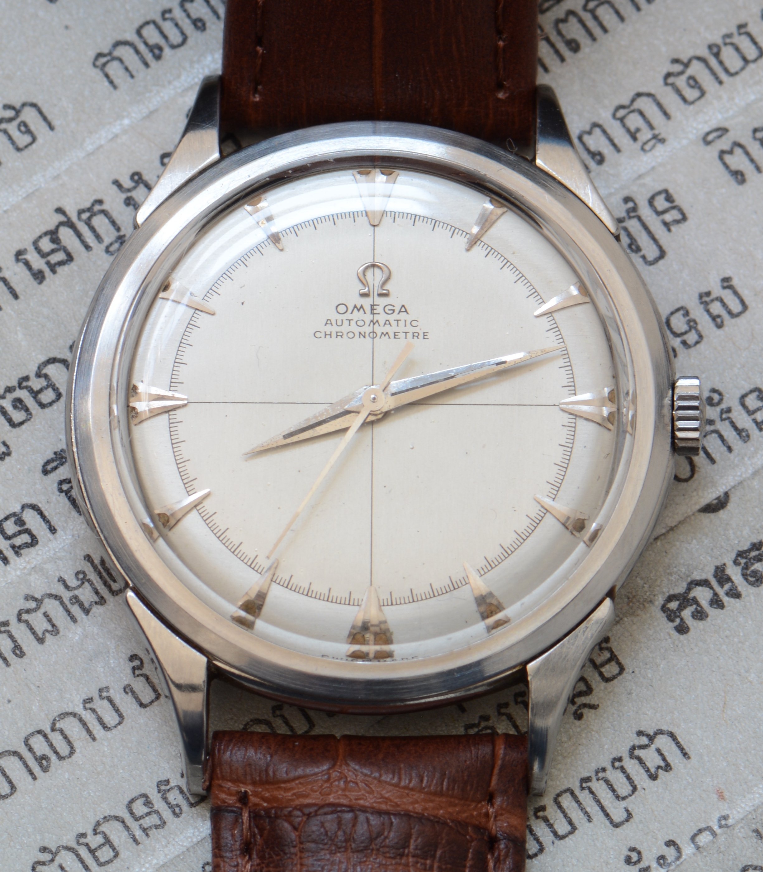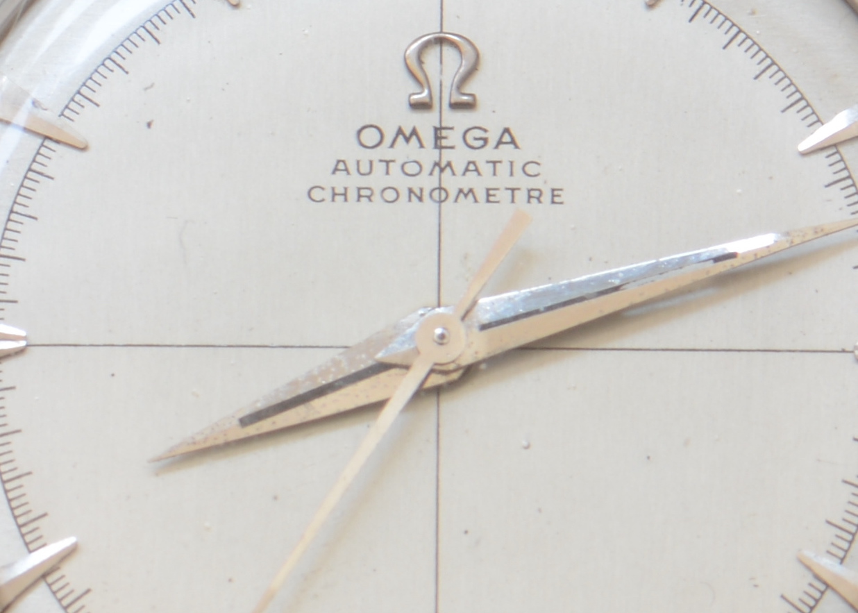 Crown: The watch came with a generic unsigned crown. I had recently had a signed Omega crown put on. It's, however, a modern production, not a period correct crown. Thanks to @gatorcpa for pointing me to the right crown and to @CaptainWinsor for purchasing it for me on eBay US.