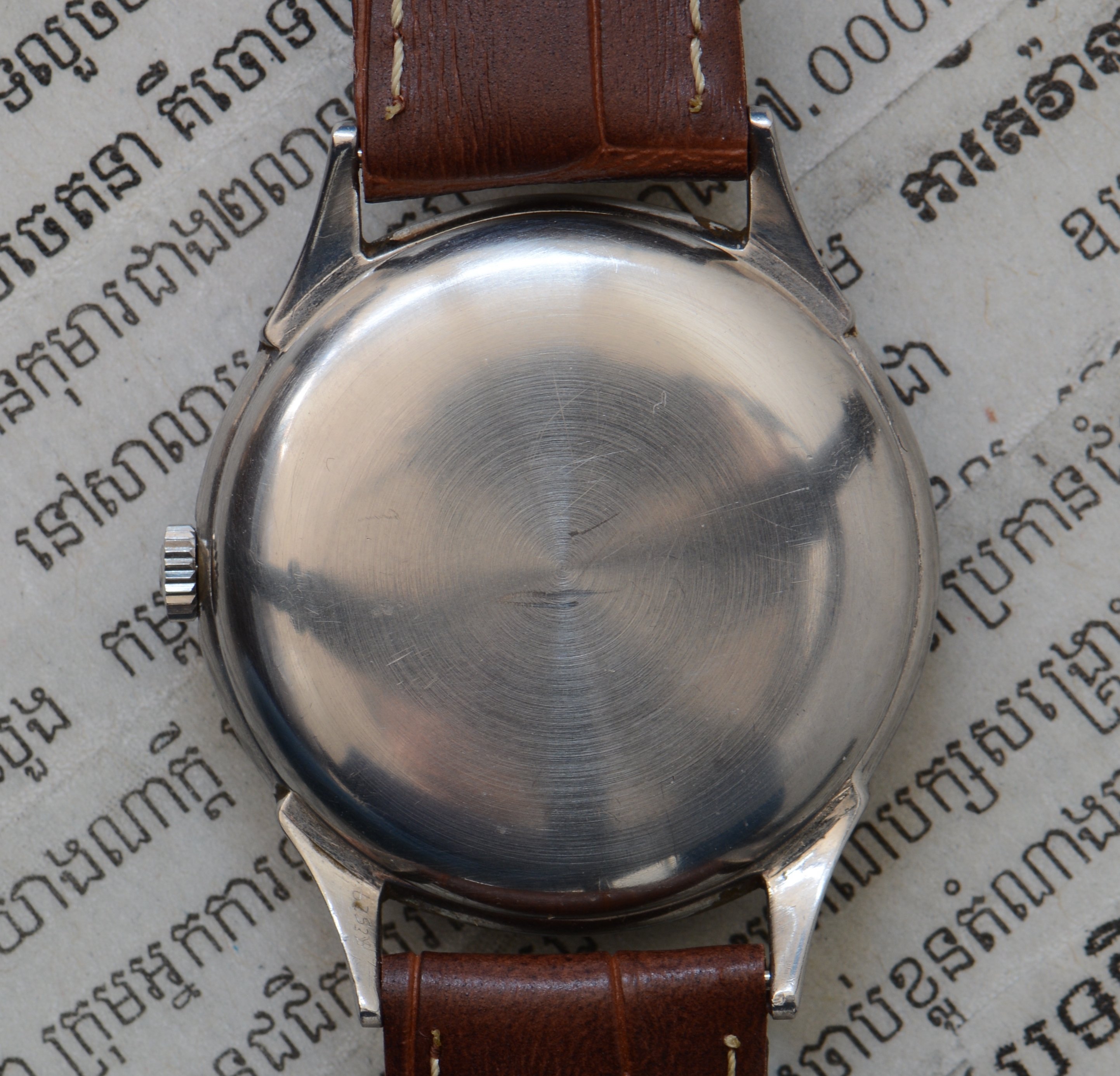 Case: Stainless steel case. The condition of the case is solid IMO without any obvious dings or scratches. The step on the bezel is still sharp, but the case has probably seen a polish in the past.