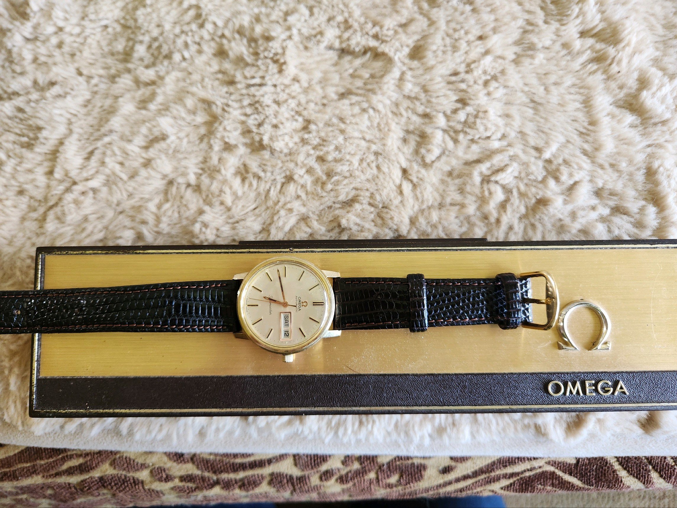 ·An acquaintance of mine recently discovered this watch in her cellar. To my eyes, it looks to be in quite nice shape. The watch is running and comes with its original box. She is looking to sell it. I am in no way an expert in these watches. For those of you who are more familiar with them, do you see any glaring defects with this one? I did a preliminary search online and it looks like most are selling around 1k USD.