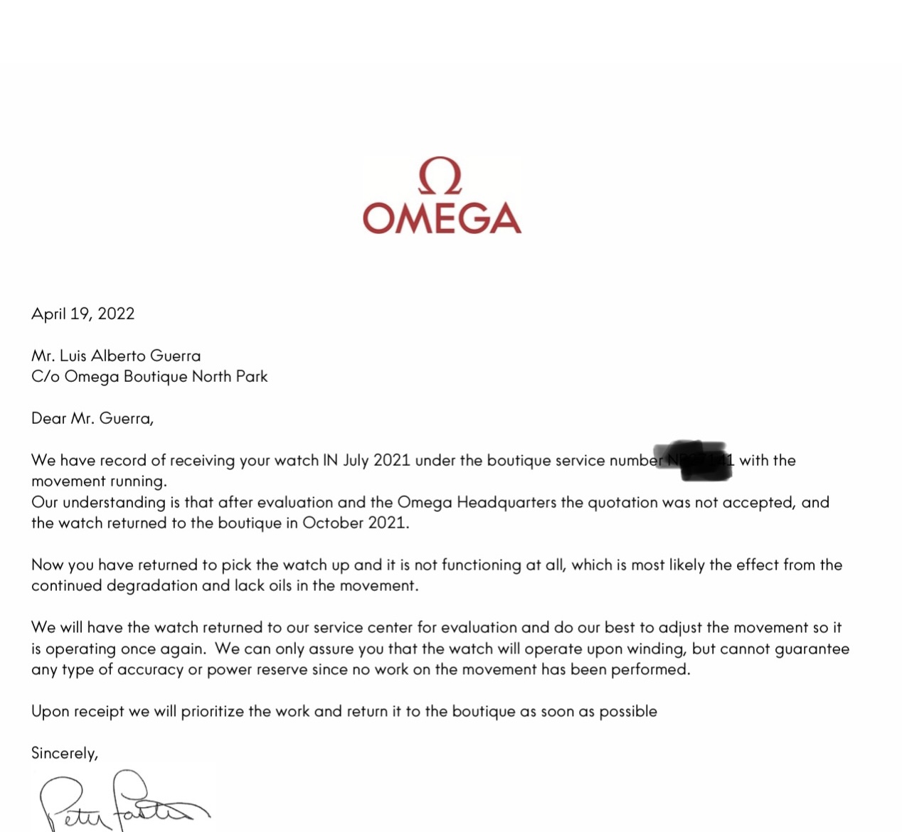 ·As far as I know, it been always take care of it and service’s done.. the boutique was the one that told him that he should do a restoration of the watch and send it to omega headquarters.. he only wants he’s watch working again as he left it.
