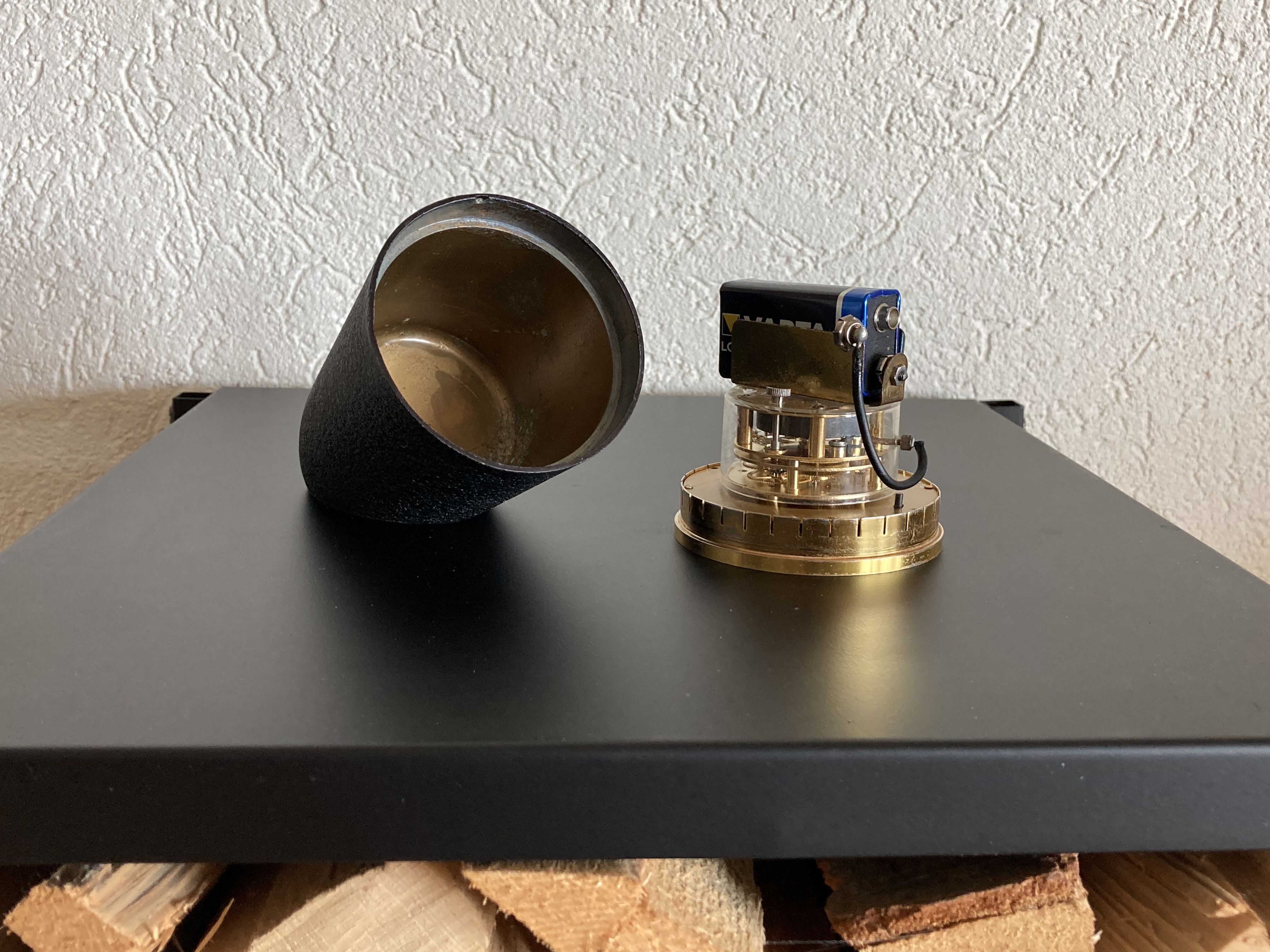 So what do we have here? A super fancy decorative object with a mechanical movement, automatically wound by an electronic system powered by a 9V battery.