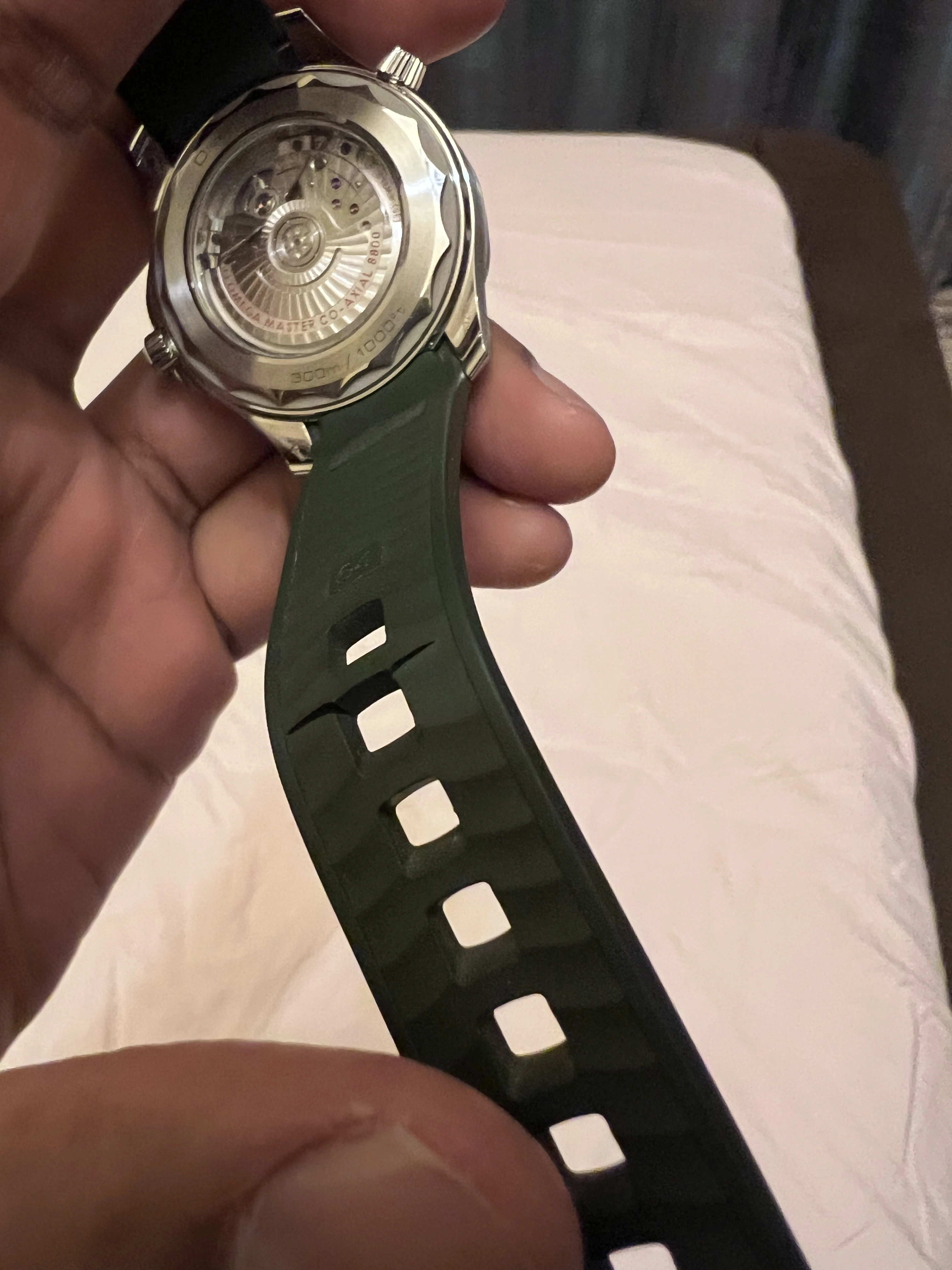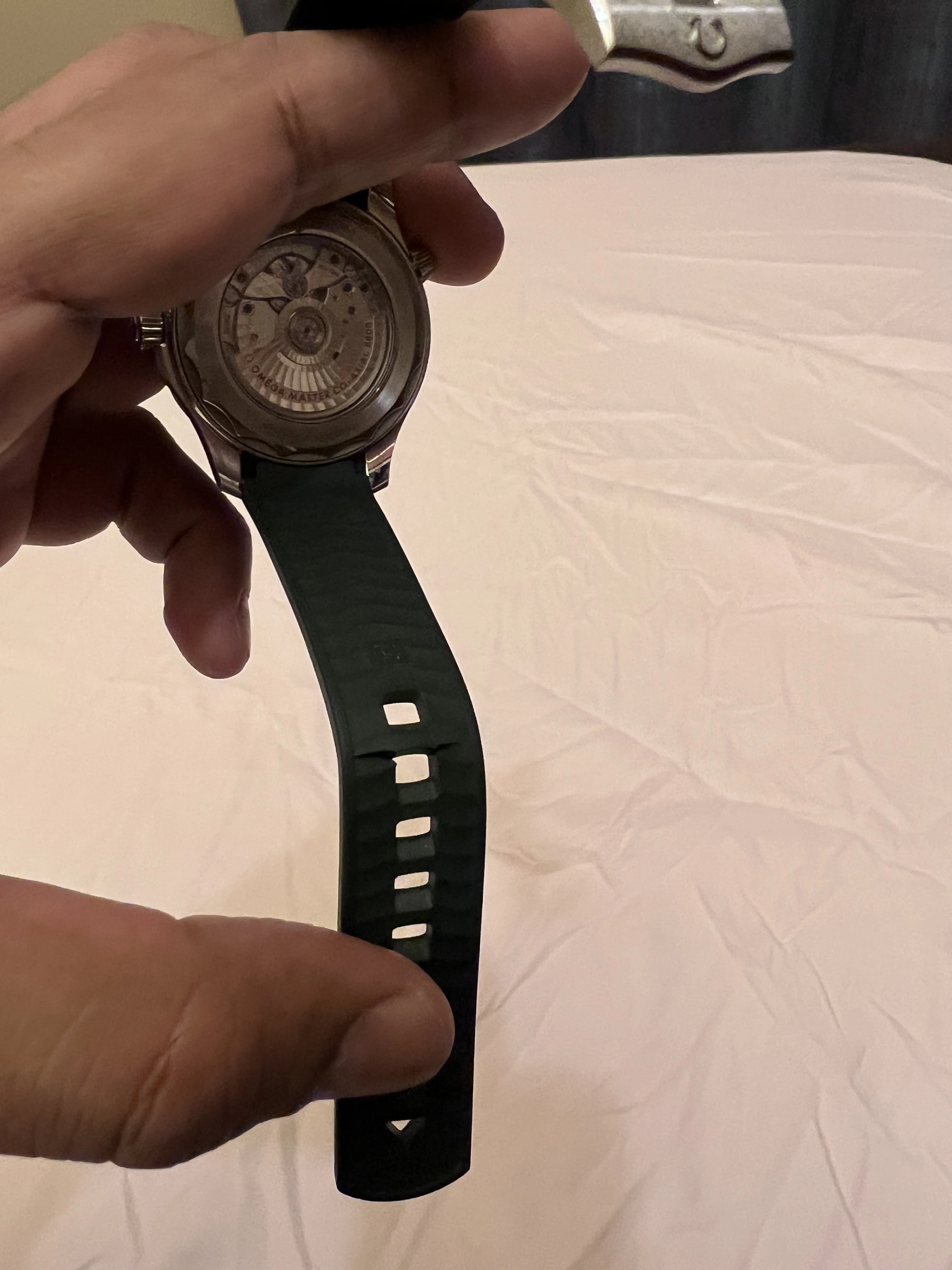 Actually, I have a similar problem with the rubber strap on my white dial, but the one with the threads around the outside. It snapped off on the 'tail' after the deployant.