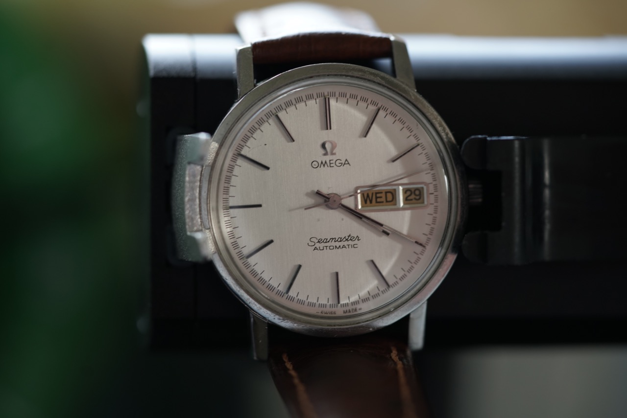 ·I picked this up recently after falling in love with it, it ticked all the right boxes for me but I have a couple of concerns, firstly I'm not sure if it has been redailed, there's a little dimple from what looks like a locating pin in the middle of the O in Omega and I was concerned about the colour of the day/date until I saw another exactly the same online.