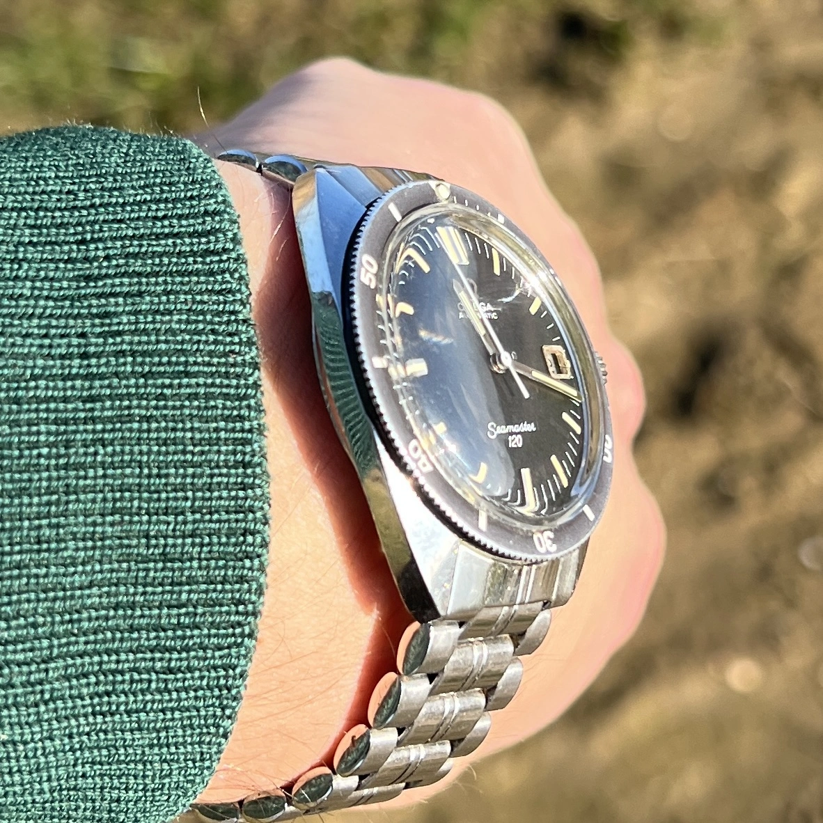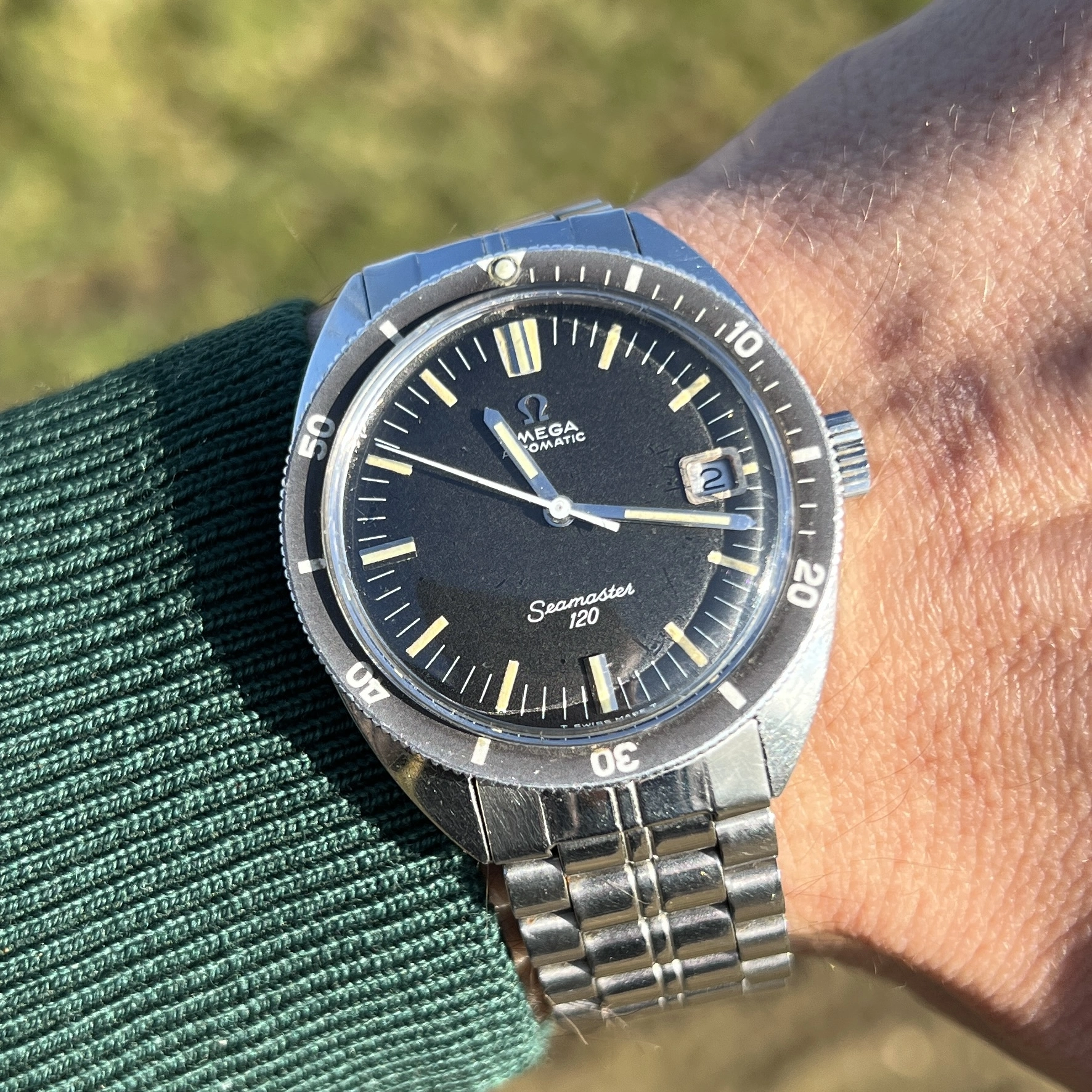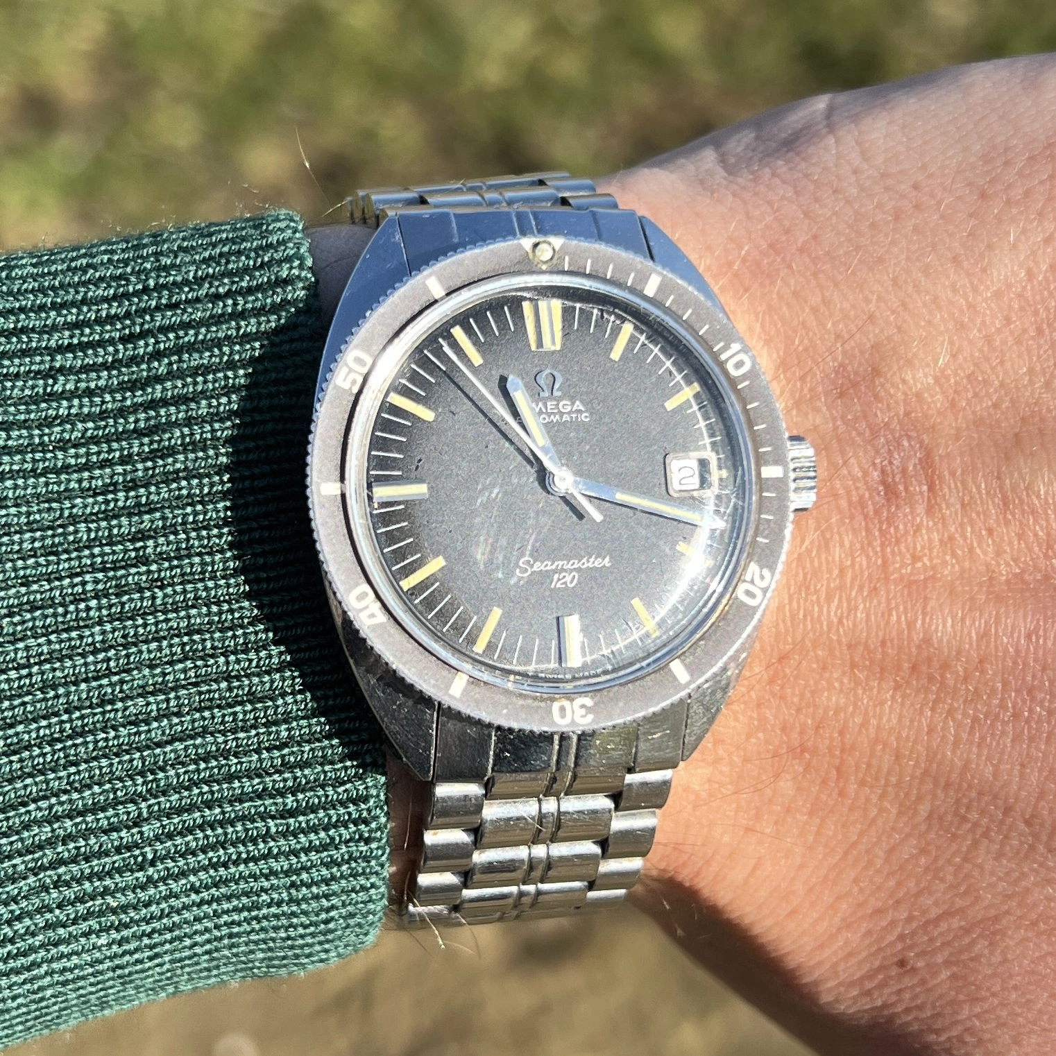··@SpeedyBirthYearLooking for a nice vintage stainless steel tool watch which sits perfectly on a somewhat smaller wrist? This skin-diver might be it! eBay is full of partially (or fully) fake Seamaster 120's, but this 166.027 is the real deal. An honest vintage piece with matching bracelet. Still, it's perfectly wearable for every day use and quite recently serviced (late 2022).