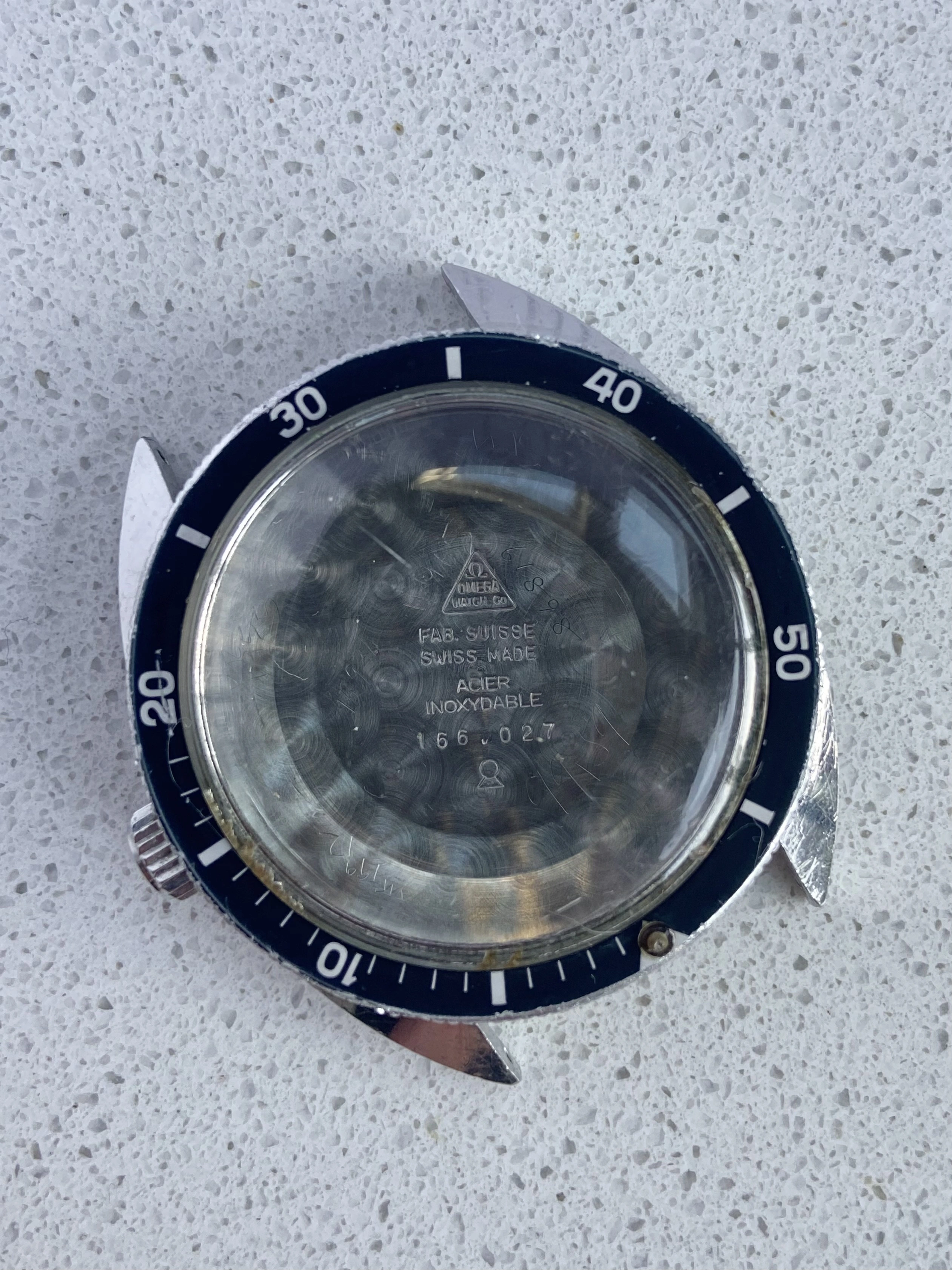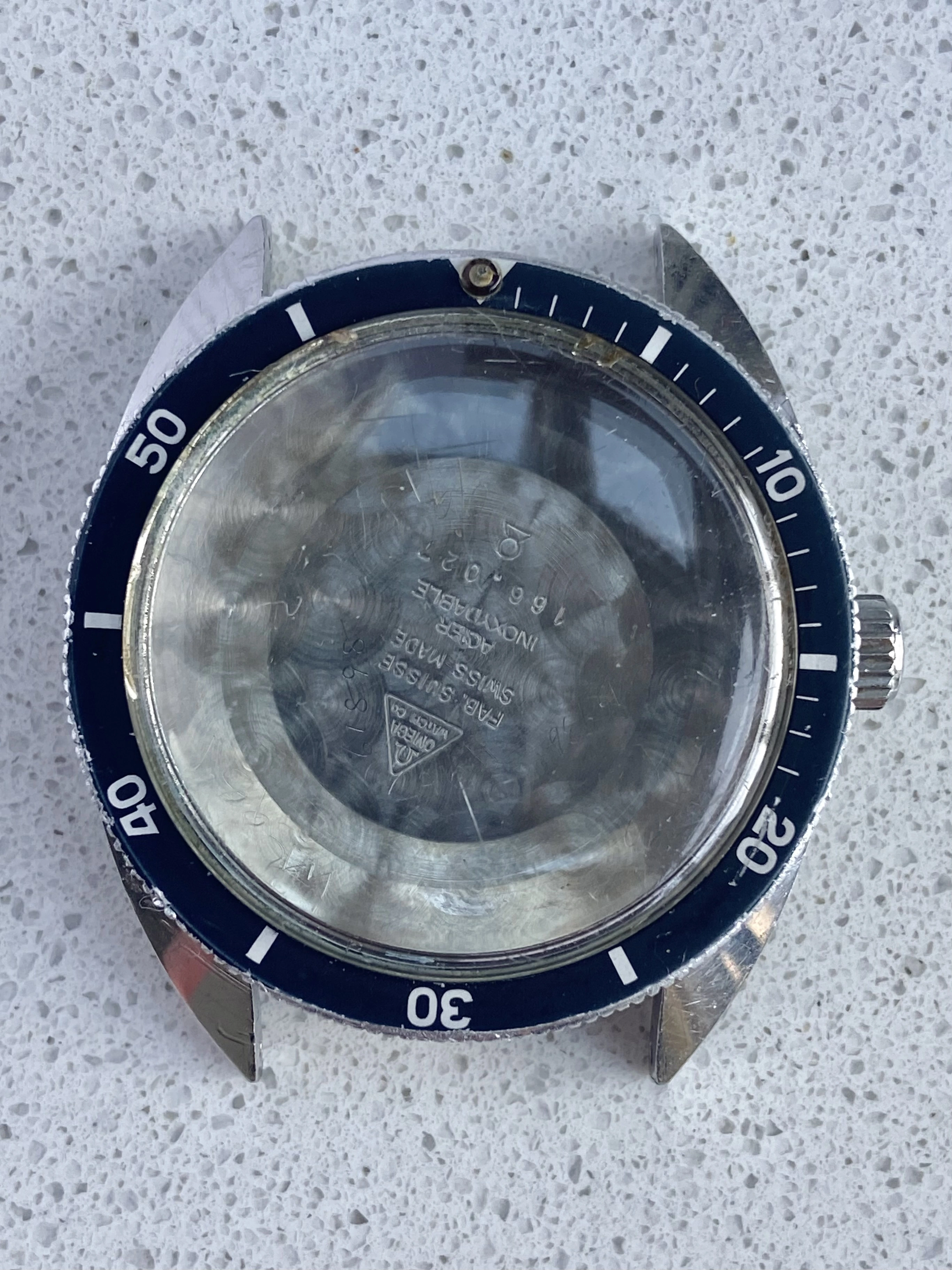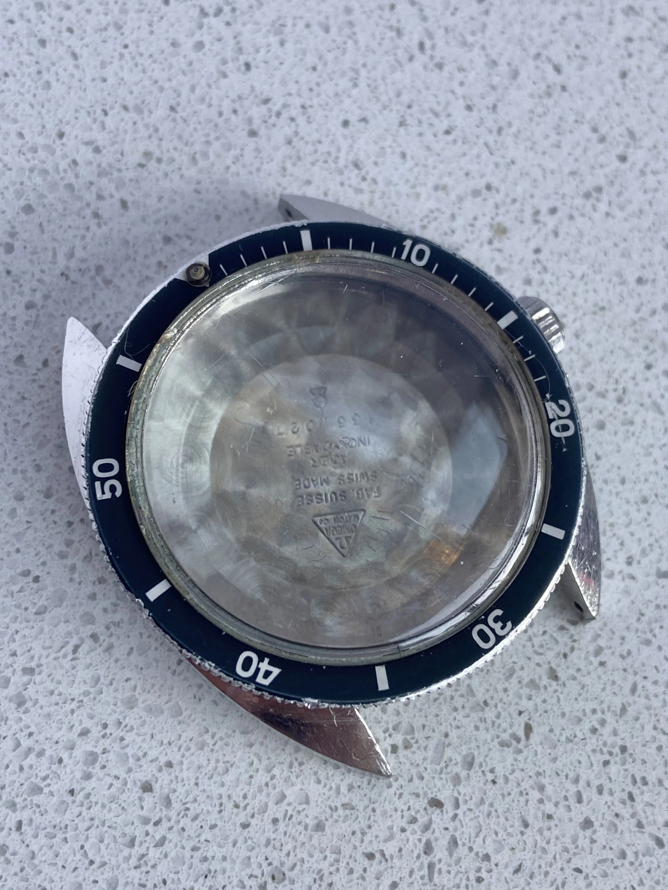 ·Offering for sale a Seamaster 120 full case, including mid case, caseback, bezel, bezel spring, signed Omega crystal and original Omega crown (no stem).