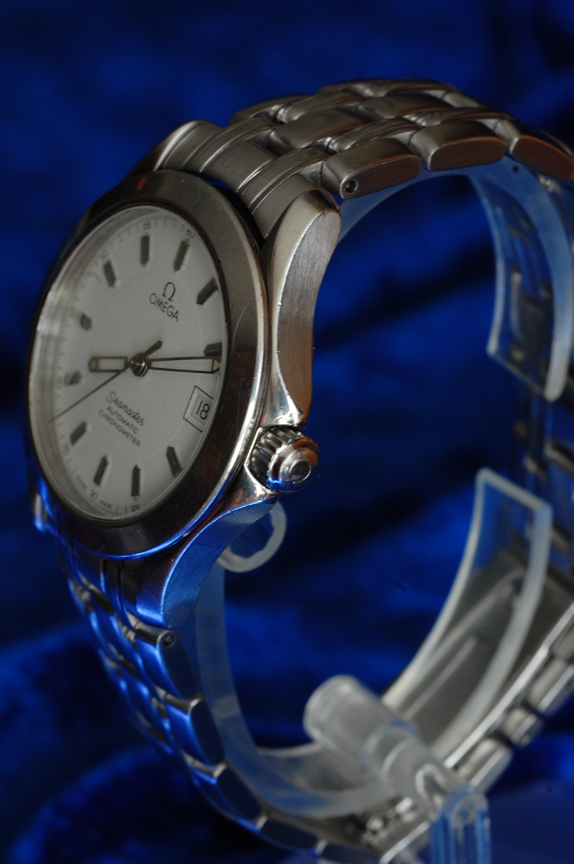 ·I have been looking at this series of Seamasters for awhile, and had finally decided that I wanted one with an unpainted bezel because of the wearing and scratching. Would actually have liked to get a steel bezel with engraving, but when this one with the plain round bezel came along I thought that it would be a fun daily wearer. It passed the timegrapher with flying colors, under +-10 seconds in 6 positions. While that no longer qualifies it as a chronometer it certainly testifies to the original build quality, considering it has been somewhere around 30 years since it ticked it's first heartbeat. I wear this new friend frequently, which is unusual considering the number of watches that I own. A dear friend has been hinting around that it might be better suited to his smaller wrist. So if I can locate a similar one with the larger case I might give it to him at my cost. I really enjoy the 2892-A2 based movement. It winds silky smooth and though it doesn't visually have that wow factor that the 500 series calibers has, it certainly doesn't lack decoration. I read the forums enough that I avoided the 2500 caliber series of early co-axials