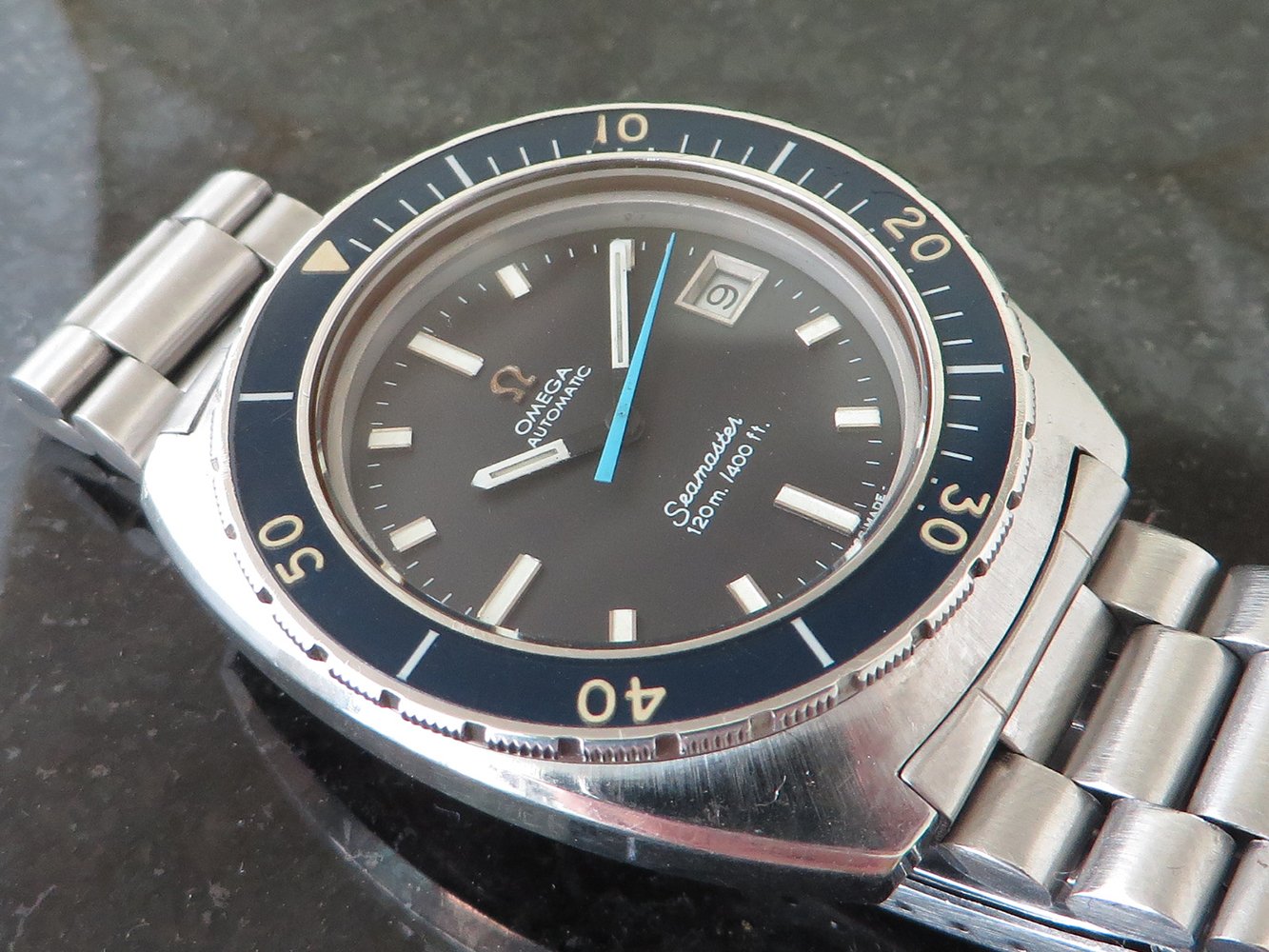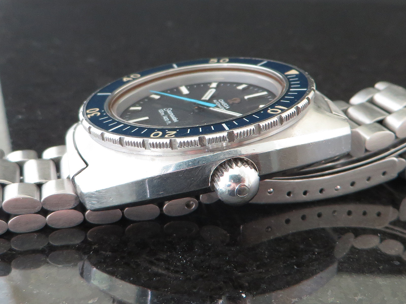 ··Vintage Omega AficionadoNice case with crisp edges and excellent bezel. Original screw type 1171 bracelet fits nearly an 8-inch wrist.