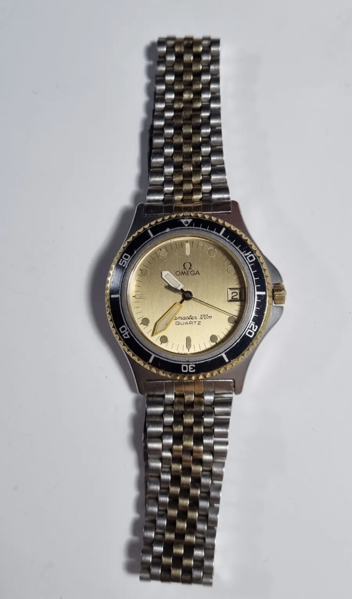 Whilst scouring eBay I got lucky, I saw a minty bi-metal SM120M ‘Mayol’ in Germany, craps pics, wrong set with later box and papers BUT looked super sharp with red dot case seal. I snapped it up, it arrived and it was better than the pics, unpolished, barely worn! It had clearly been serviced in the past, for some reason it had a very light scratch on the dial. I called STS and sent the watch to them, no case work but they managed to source me a NOS tritium dial from Omega and serviced it, its back with me and fully waterproof.