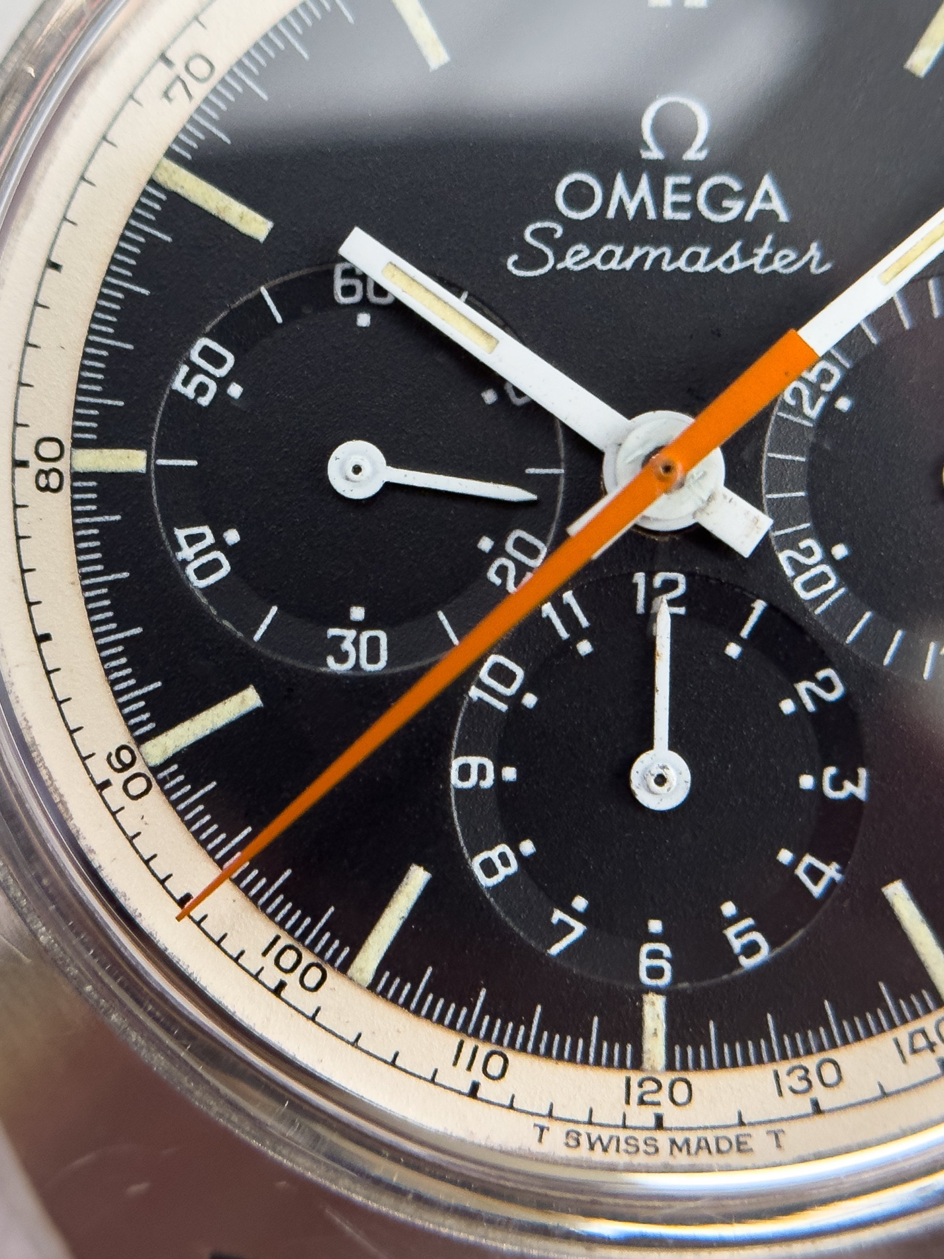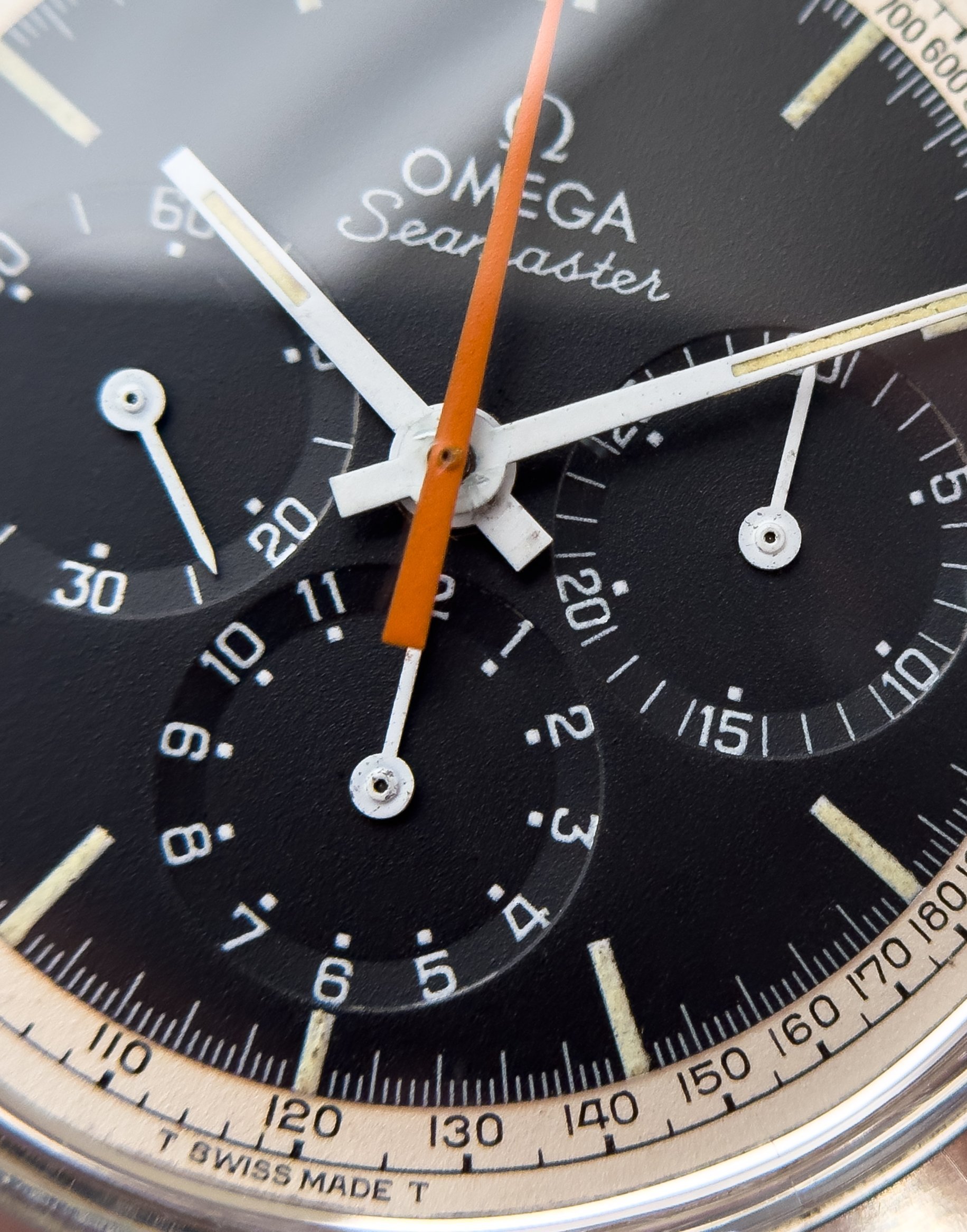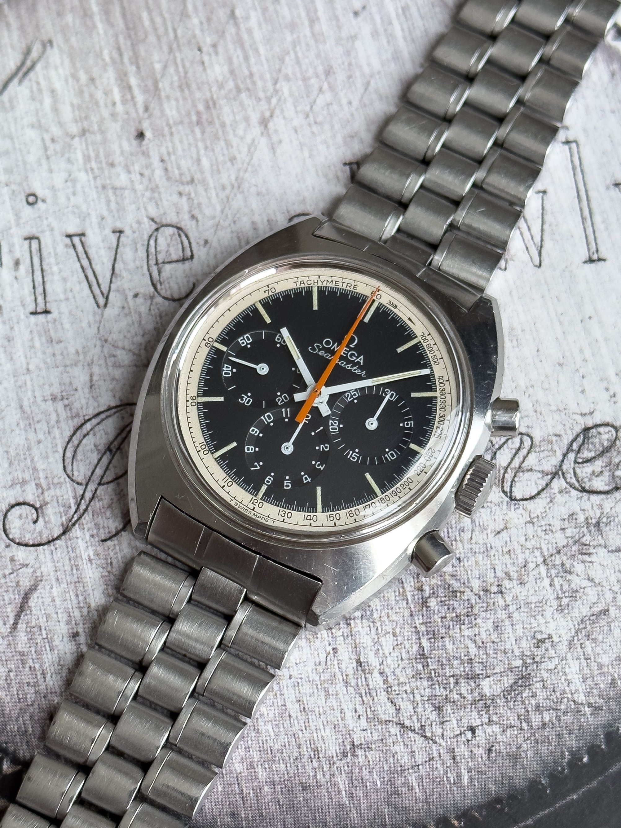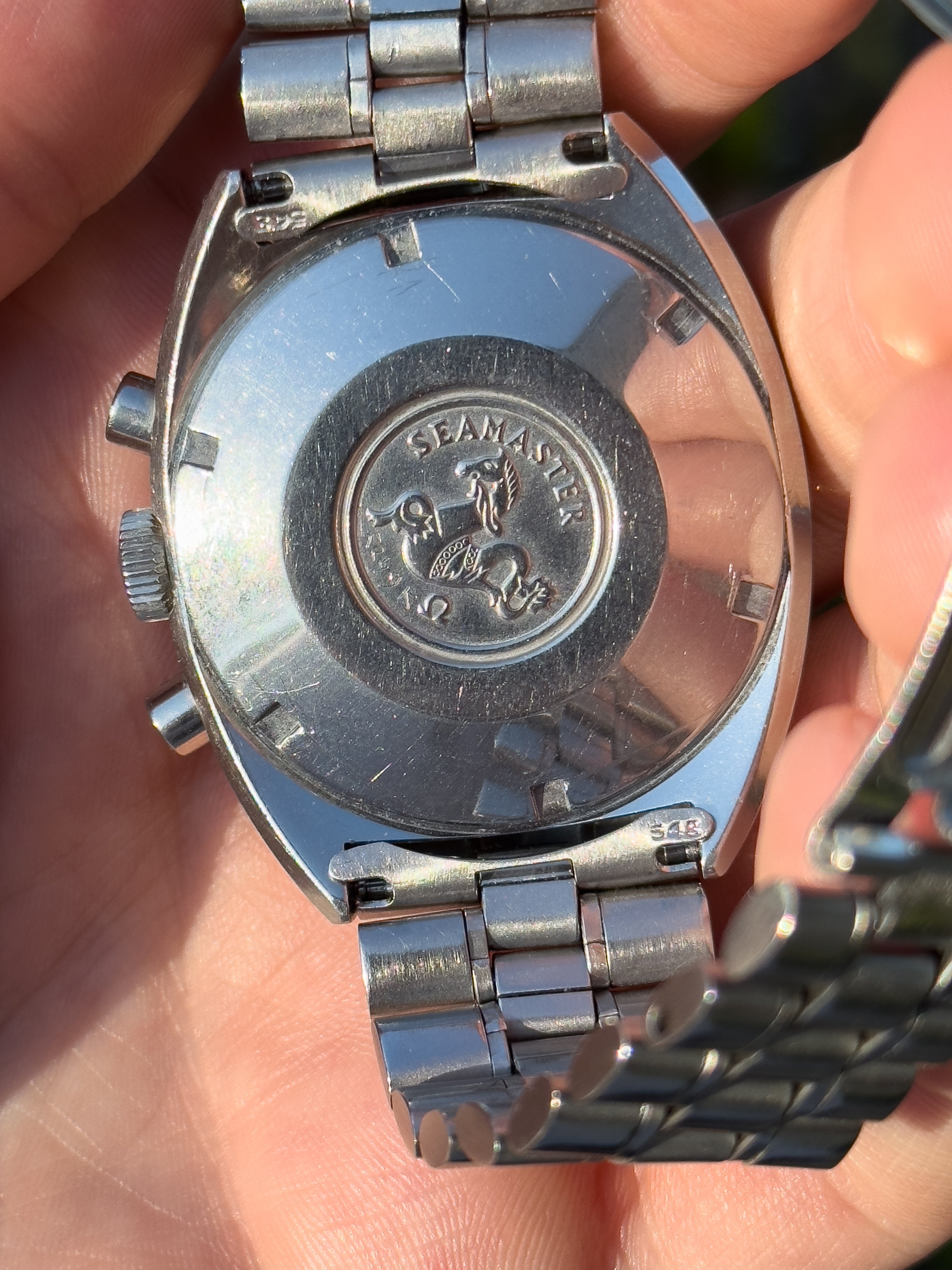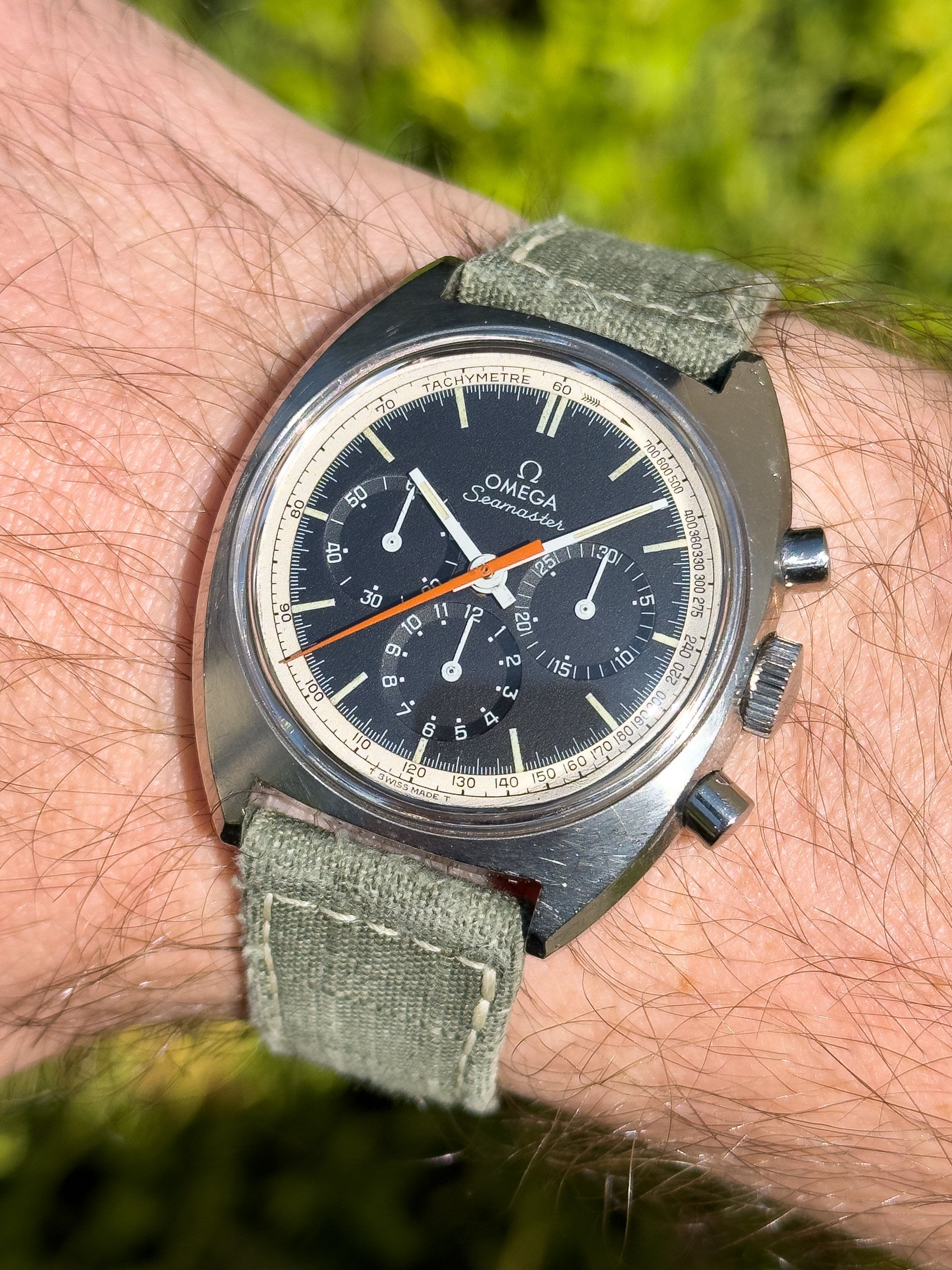 Overall this piece is in very good condition and it is such a joy to wear. As you can see from the original listing, it was serviced in 2021 and while I don't have physical proof of this, the movement is clean and everything operates as you would expect. I have worn this daily for extended periods of time and this watch has always kept time very well and has a healthy power reserve under full wind. I can't say this is unpolished as I have not owned this watch since it was first sold; however, I can say that it retains its original shape with sharp lines and chamfers. I can faintly see remnants of the original brushing but it has been "polished" down from use over time. The case does show wear that is commensurate with age. The 1116/548 bracelet is correct for this reference and has more than enough length for my 7.25" wrist. It even has plenty of room to spare as I wear it four micro adjust holes in from the edge of the clasp. Back to the watch- the crystal is signed, intact, clean and in great shape. If anything, the crystal could benefit from a slight polish. The black dial is beautiful and well preserved. Any shadows seen in the outdoor wrist shots are just that- shadows from the superficial marks on the crystal. The outer white tachymetre ring is well preserved and has a lovely almost parchment tone to it. The original tritium lume on the dial and hands is intact and has patinated to a beautiful soft custard color that is really pleasing to look at. The crown and movement wind smoothly and the pushers have a pleasing tactile action when pressed. That is everything I can think of but if you have any questions, please do ask.