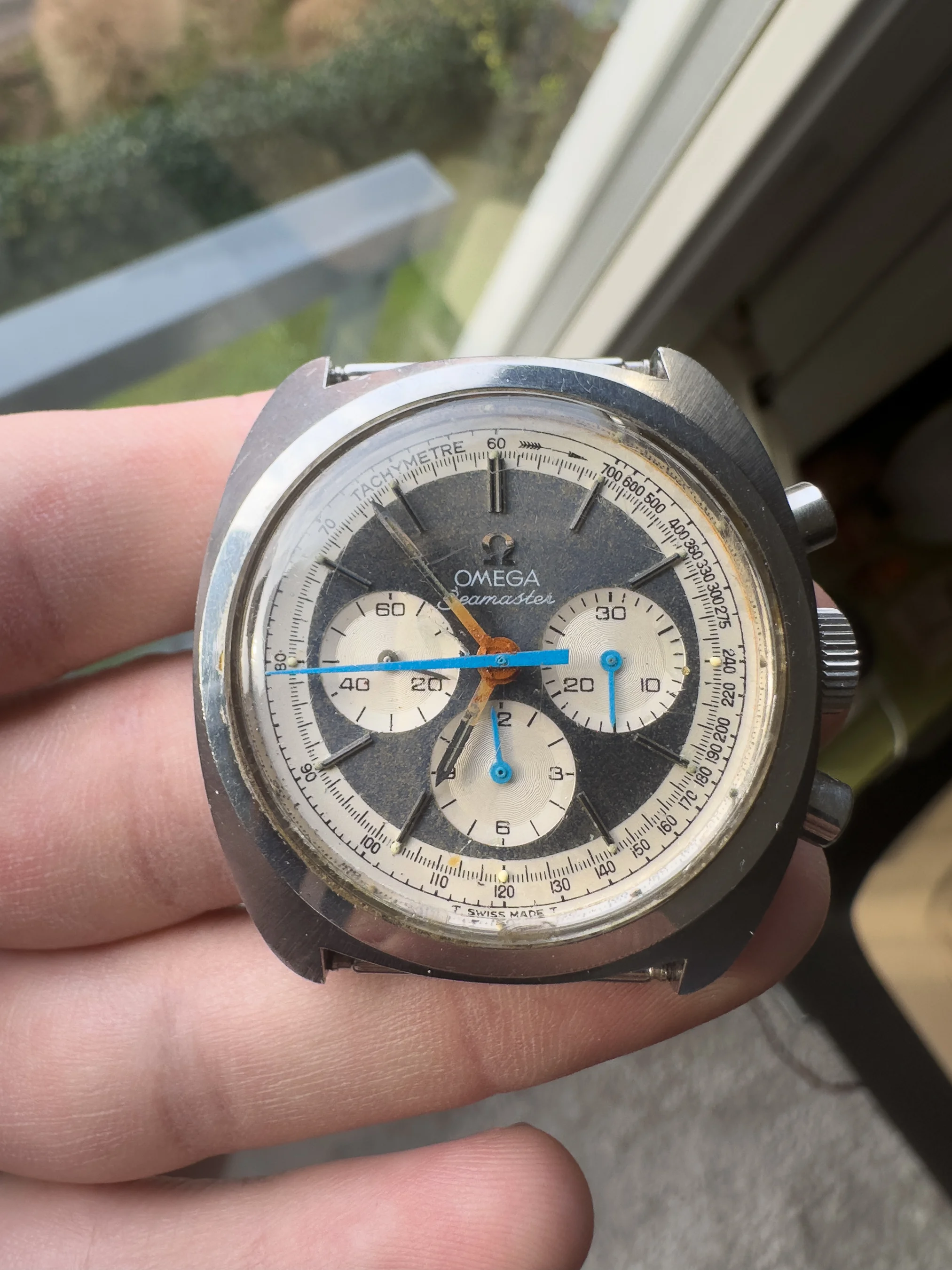 Idk if some water got in somehow cuz the pointers look really rusty, the glass needs to be changed and the steel needs to be polished. Also the dial used to be blue originally but now its pretty washed out it almost looks grey...So I am not sure what to do with the dial.