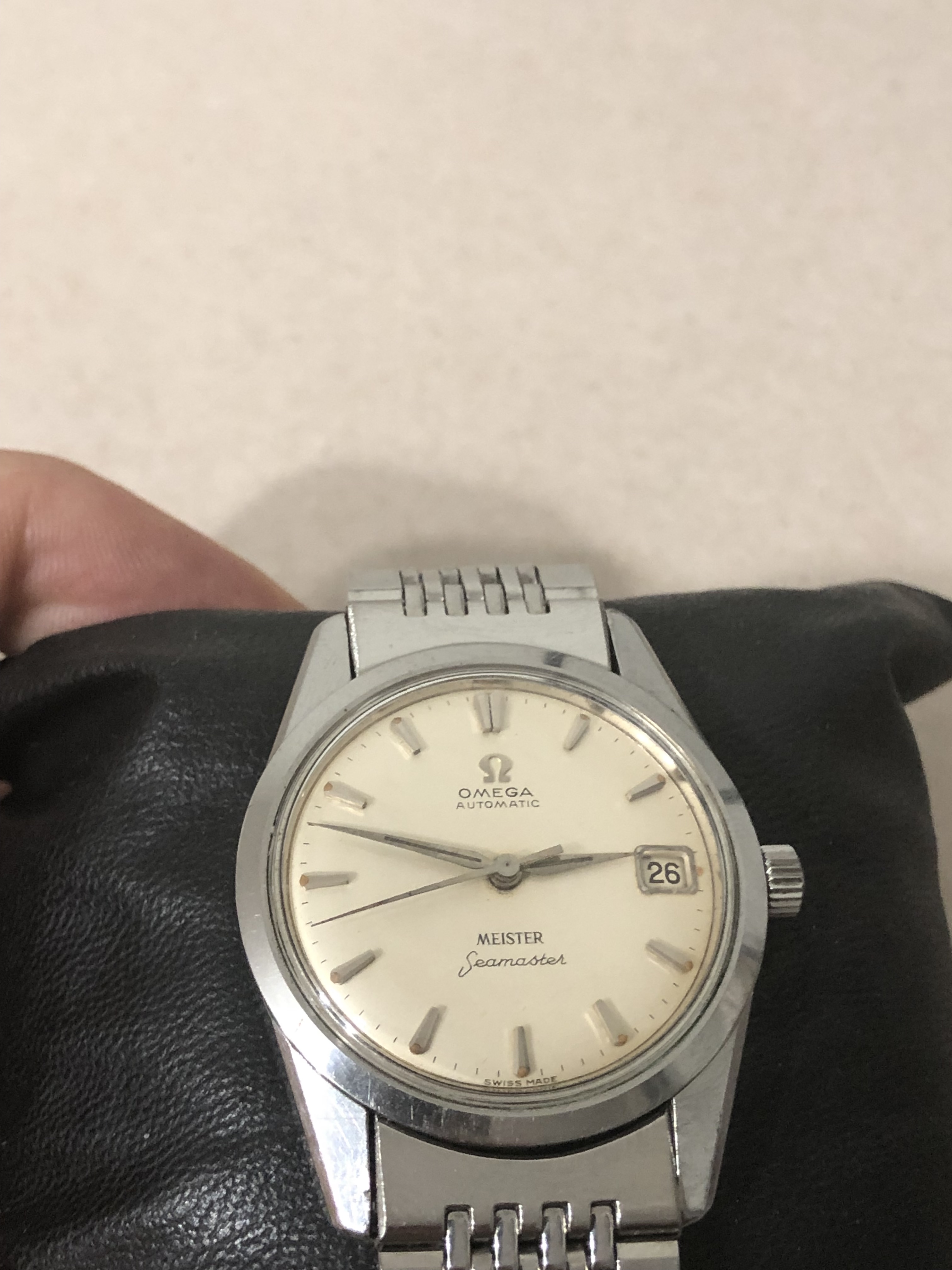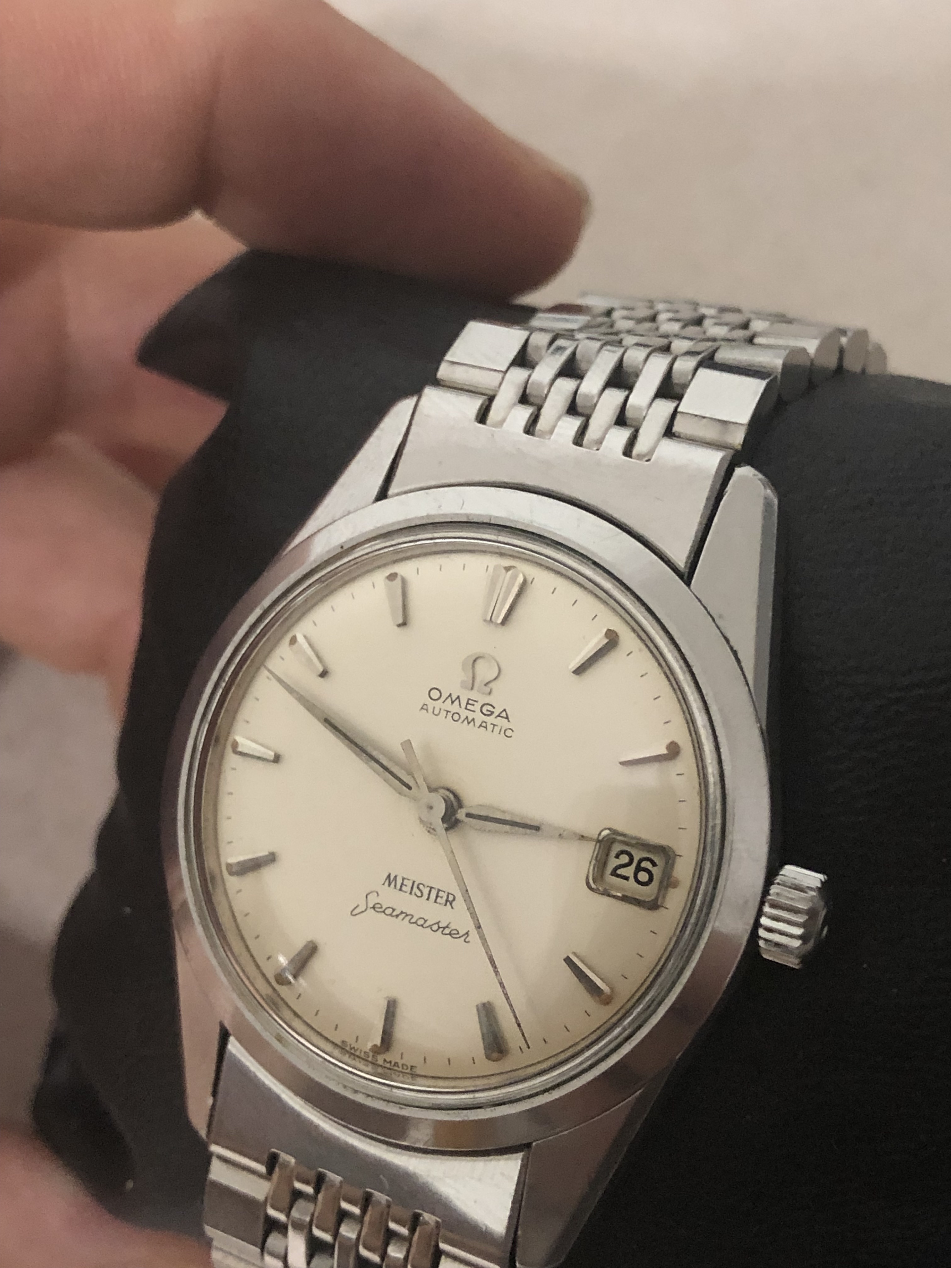 The watch in my opinion is perfect, only regular use scratches on the case, the dial is incredible with all the lume pips there and darkened with time - the bracelet is a gift with the watch, clasp is authentic I assume