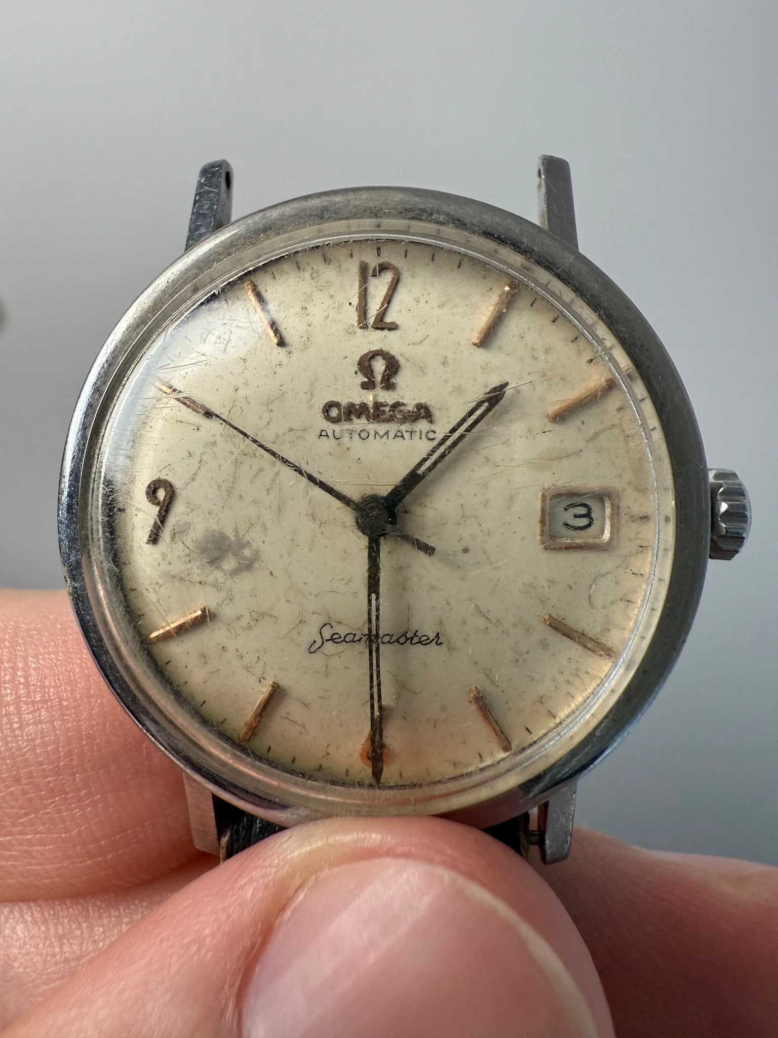 I just got my hands on this Seamaster Pre-DeVille with "Art Deco" numerals from my grandfather. It had been sitting forgotten for at least 40 years, and it’s still ticking.
