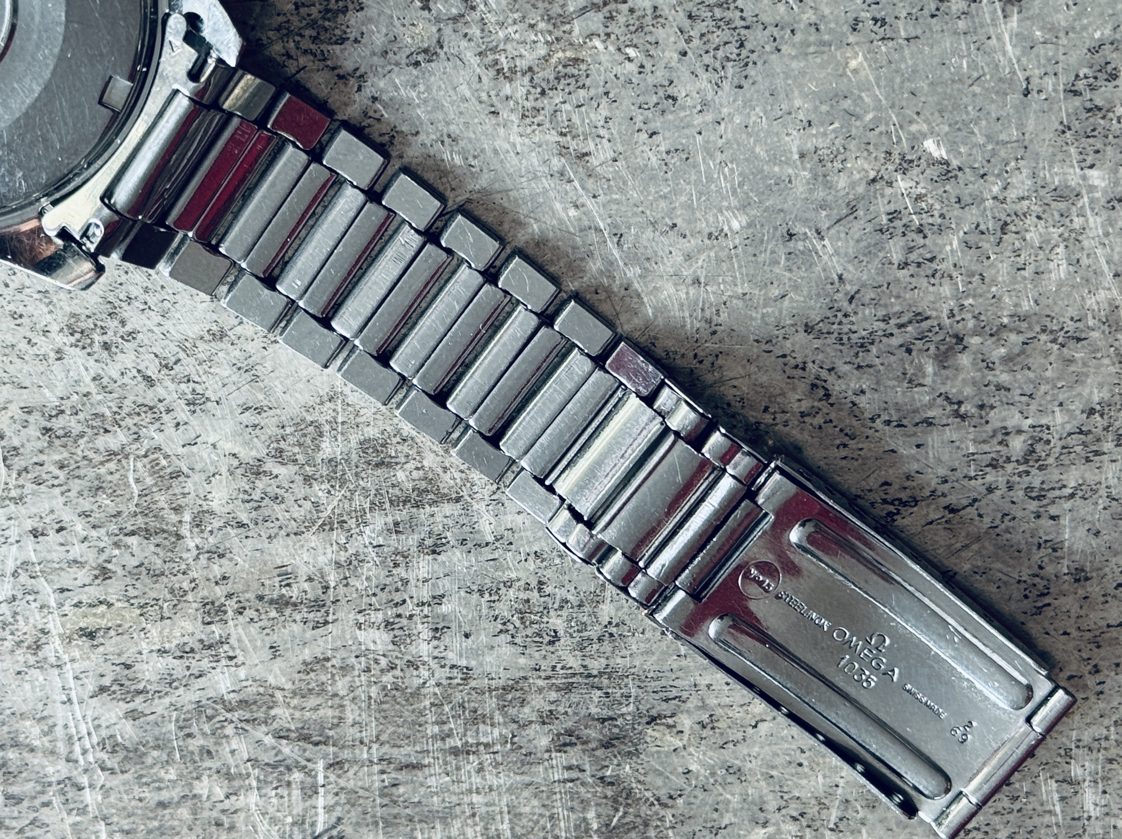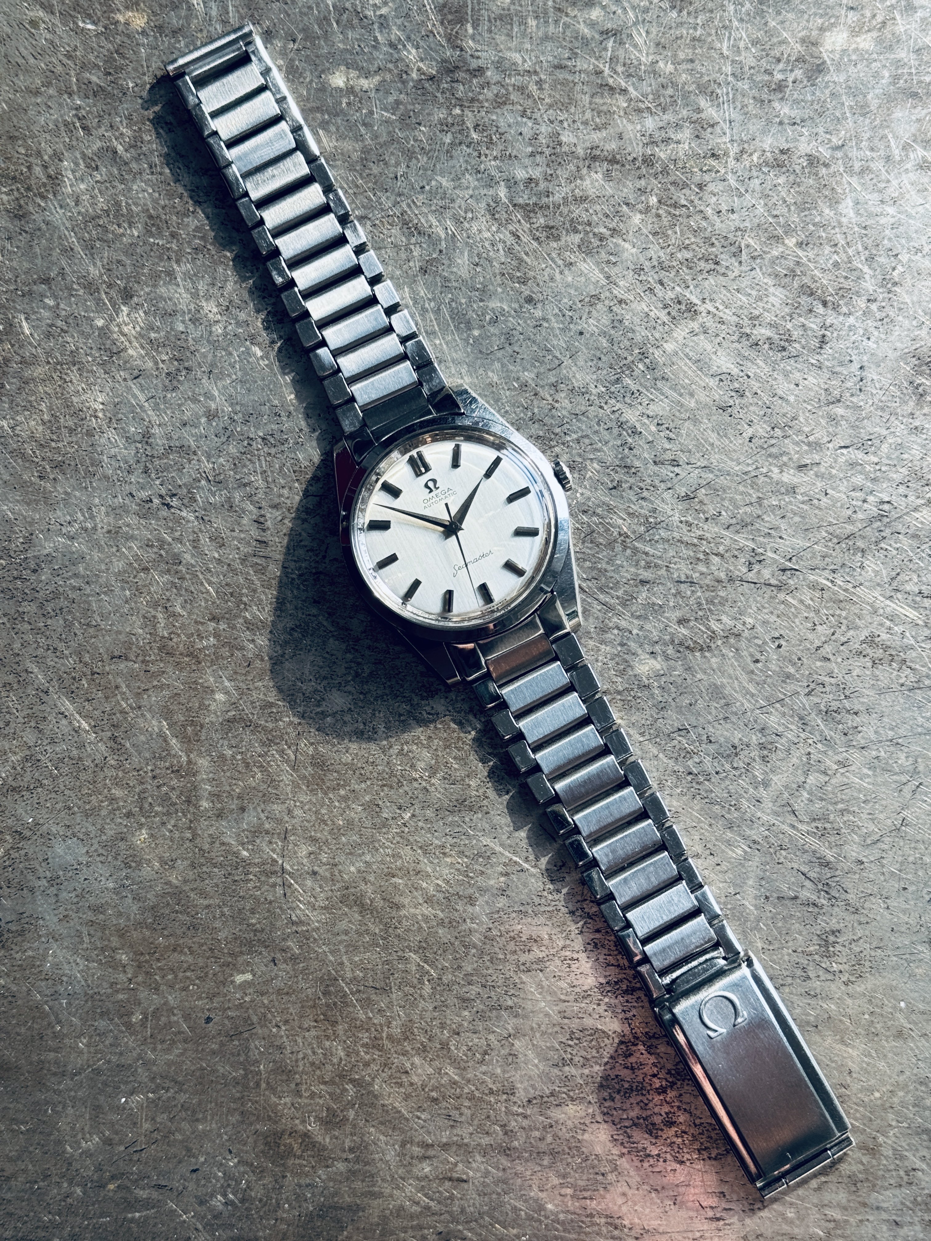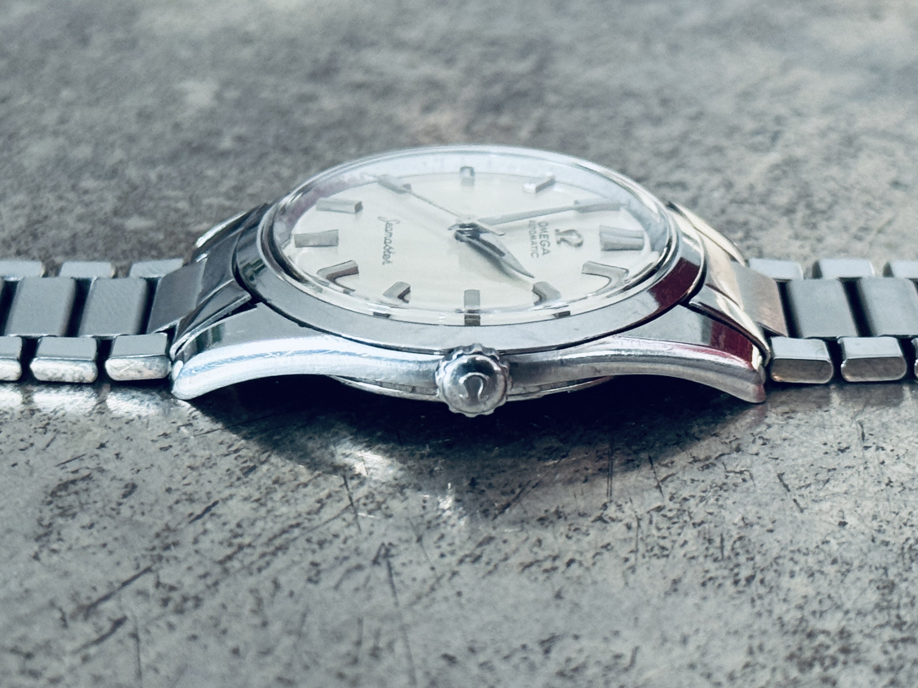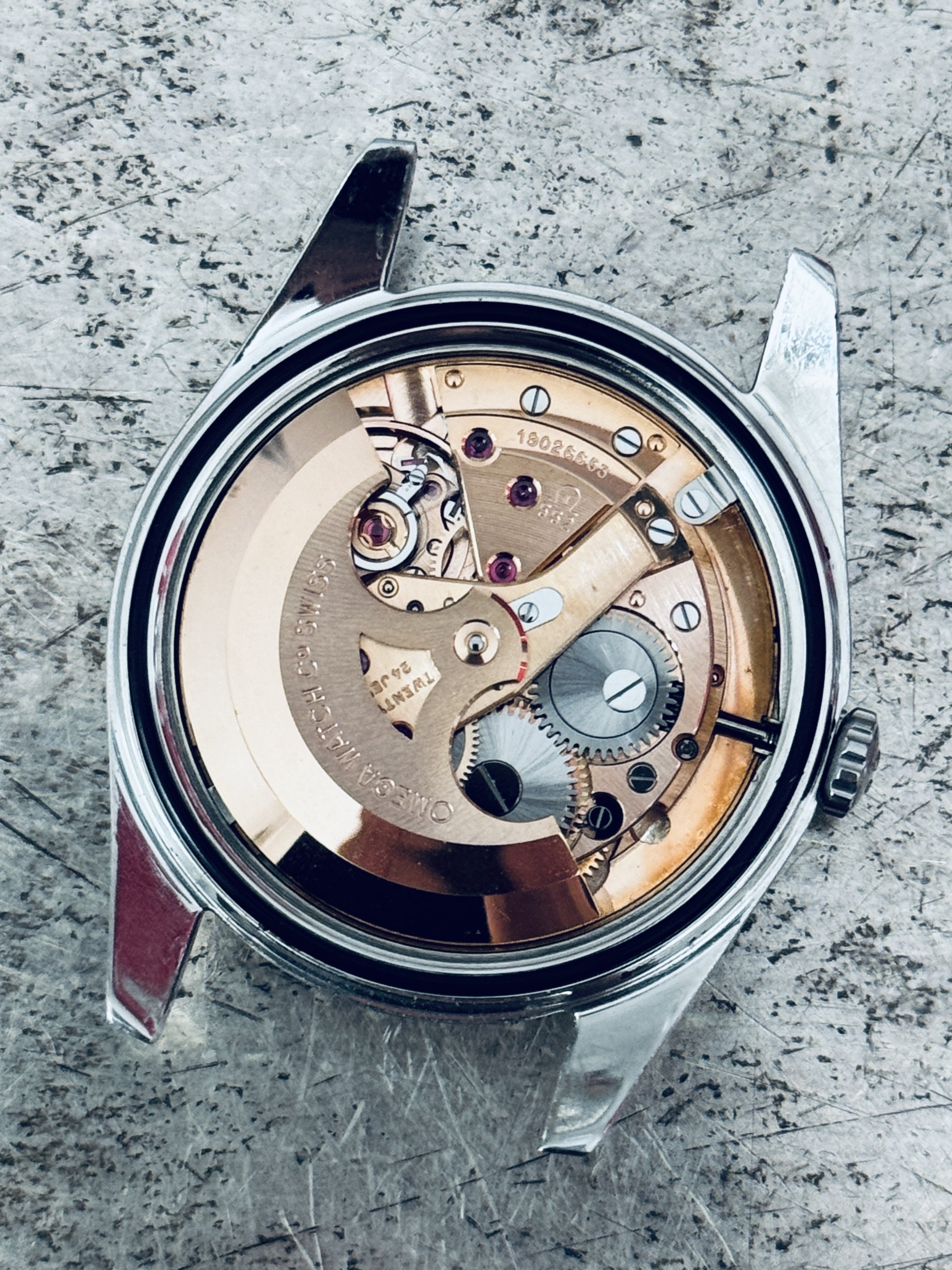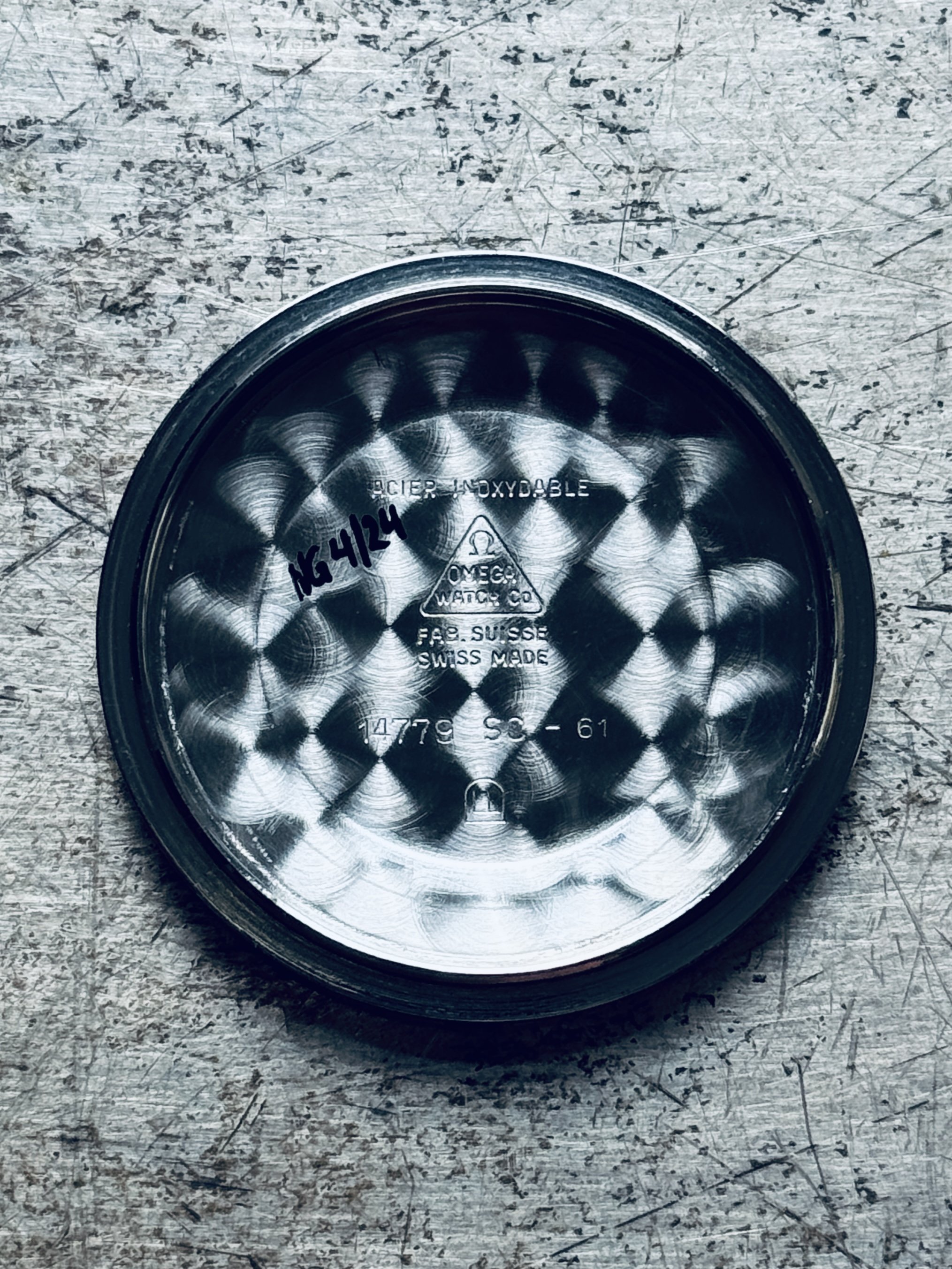 Crystal: Original, flat-dome Omega crystal with the period-correct flat-feet logo in good condition.