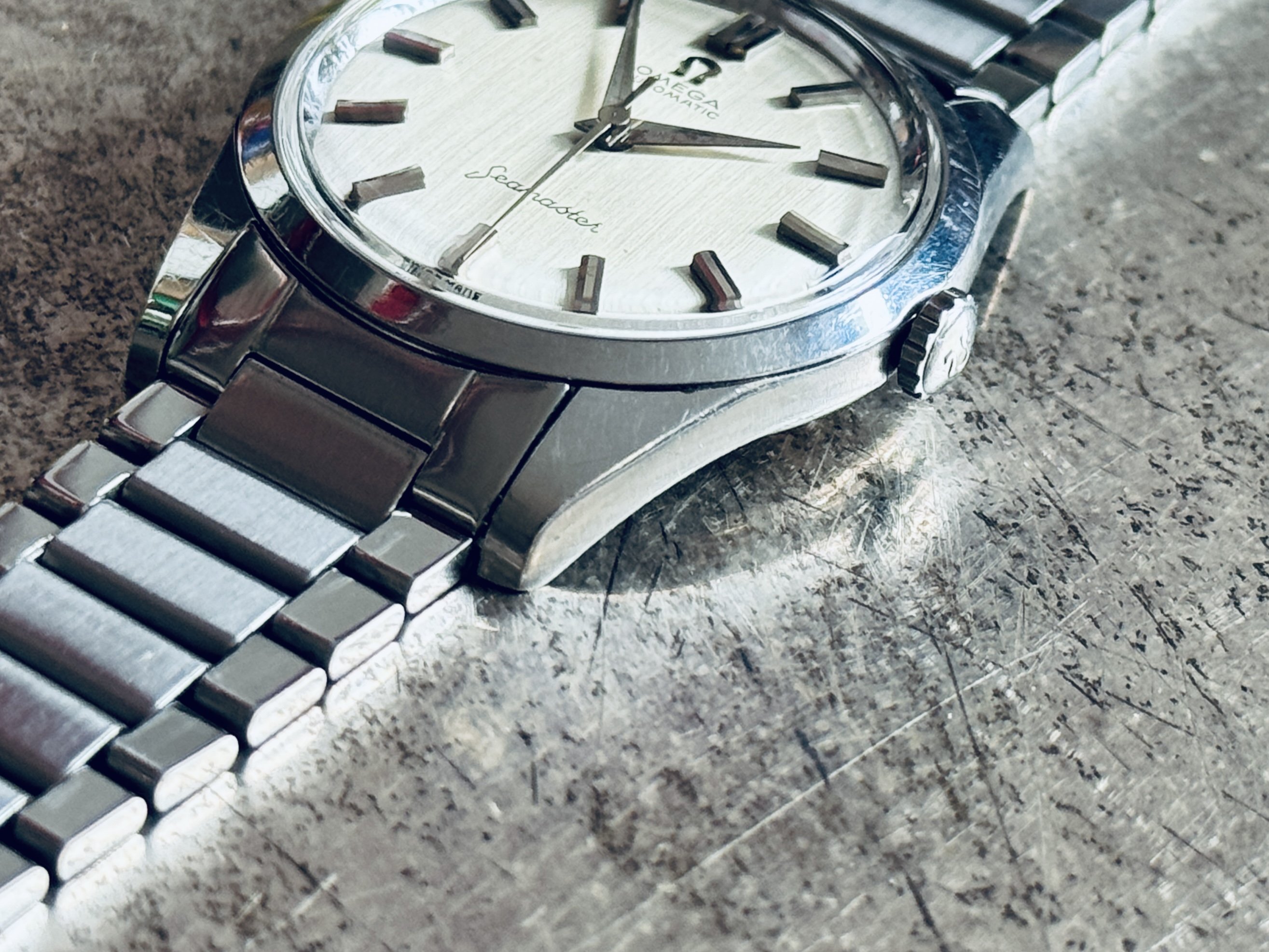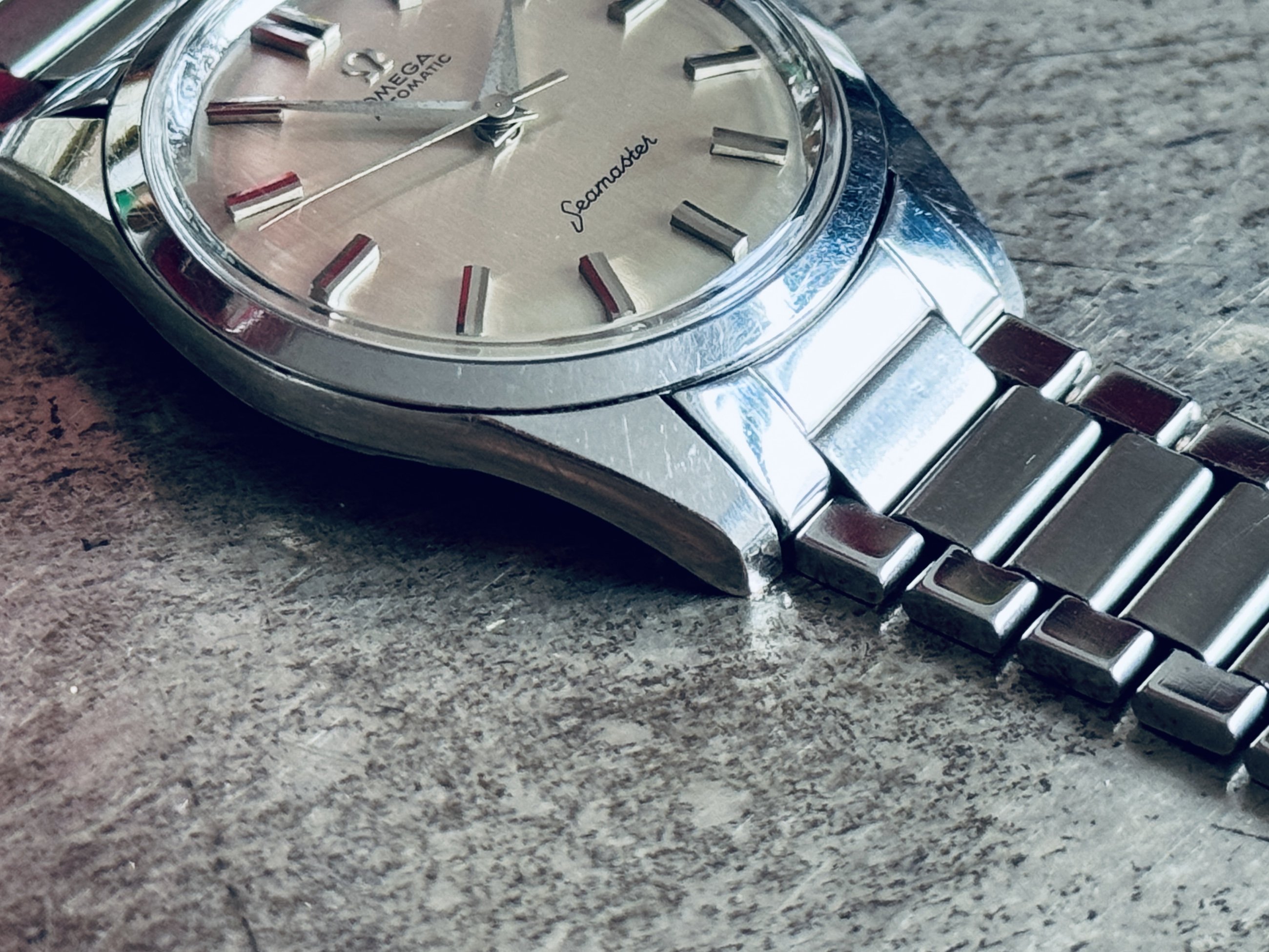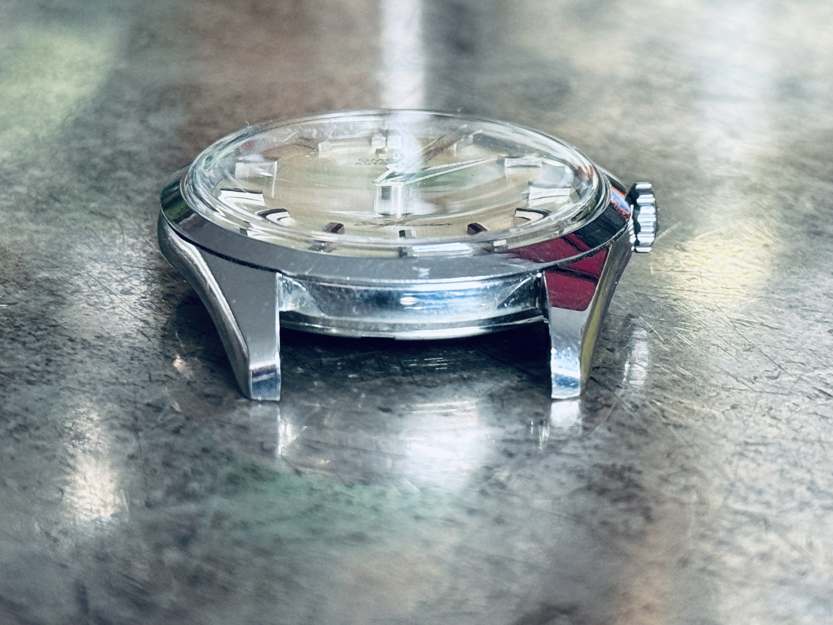 Case: Original 35mm stainless steel case. It’s very sharp, all the edges are beautifully preserved. Minute scratches everywhere, as you’d expect from a 60+ year old watch that hasn’t seen significant polishing. Even the original brushing on the sides and around the hippocampus are intact.