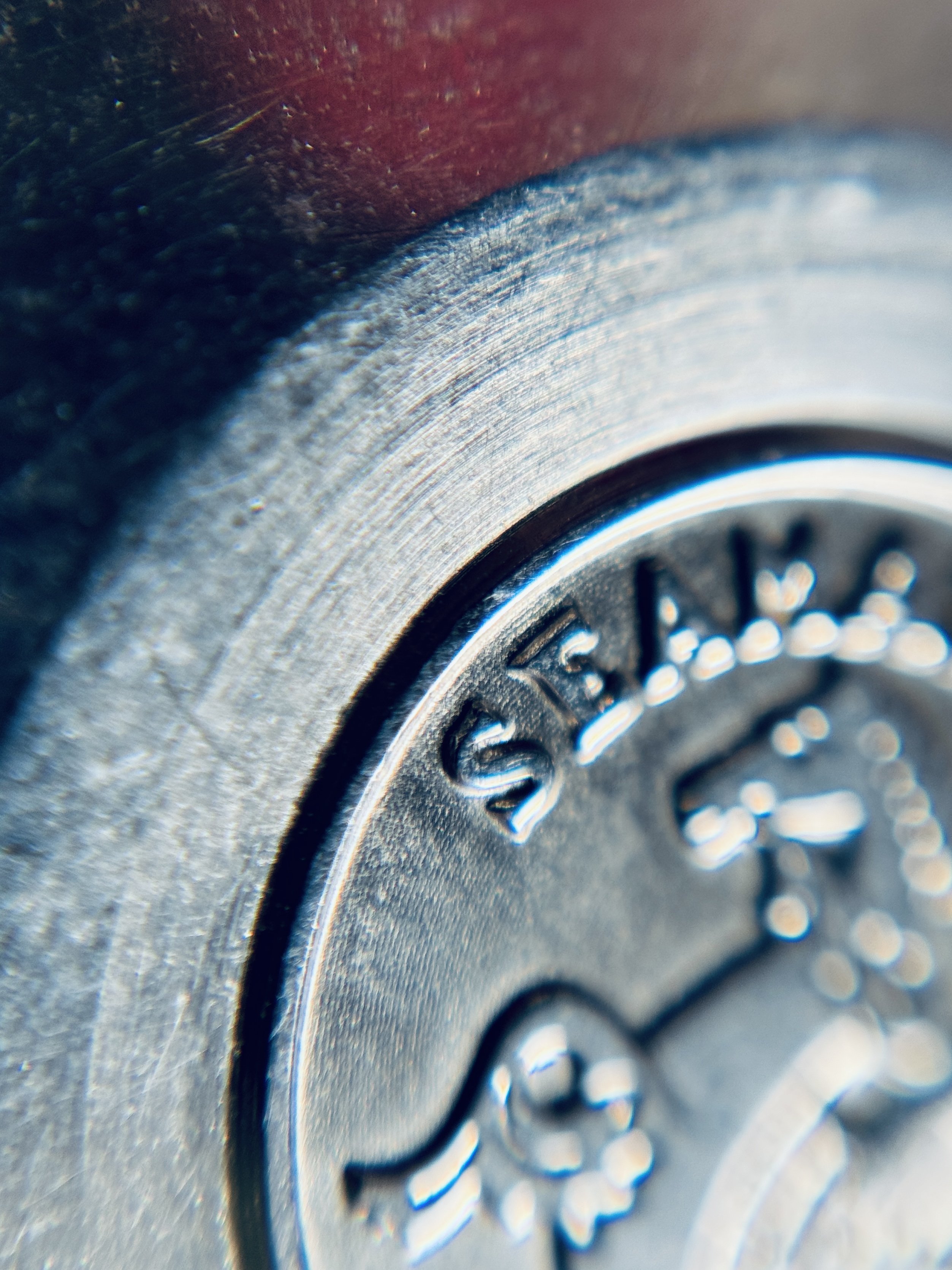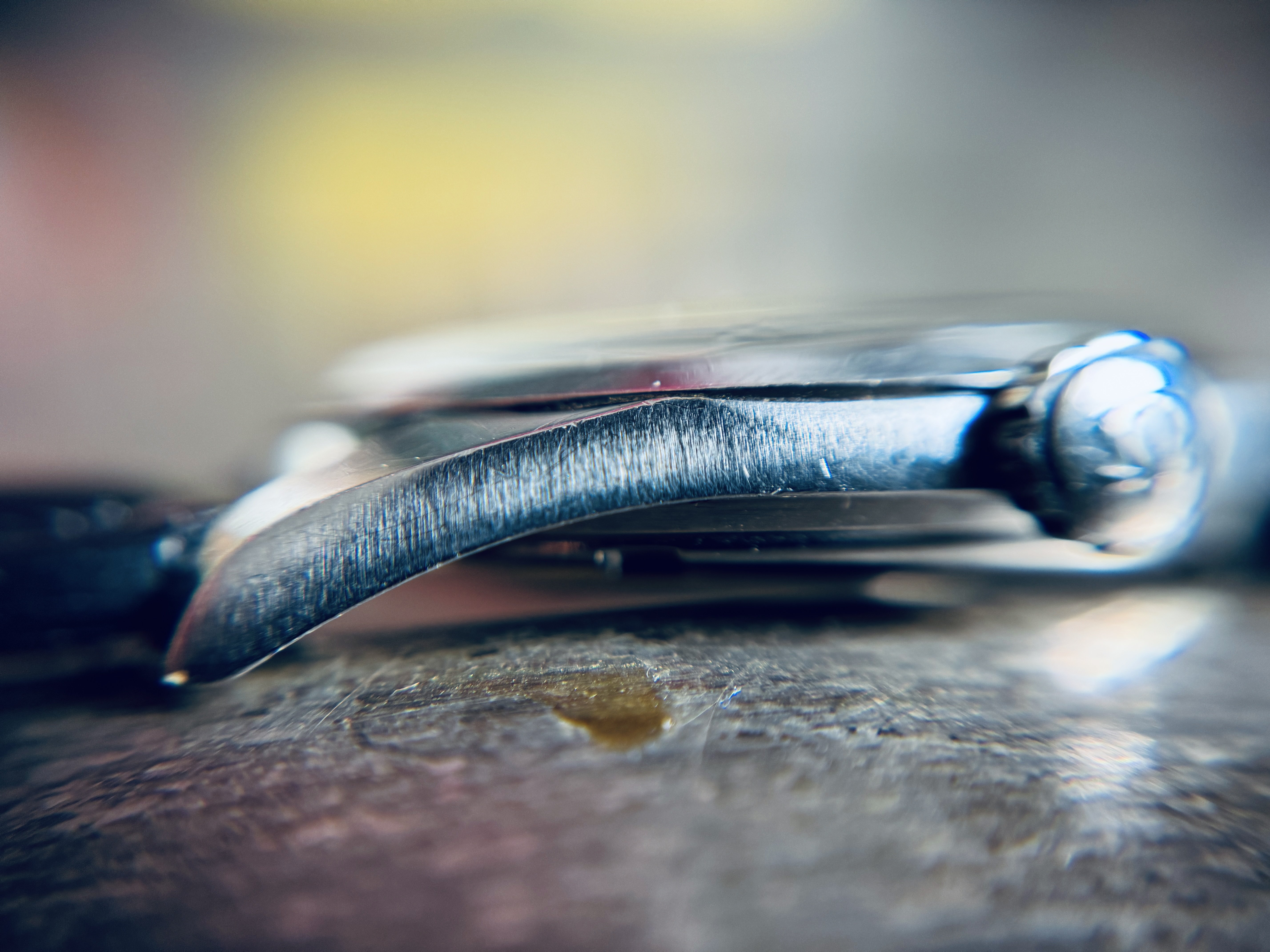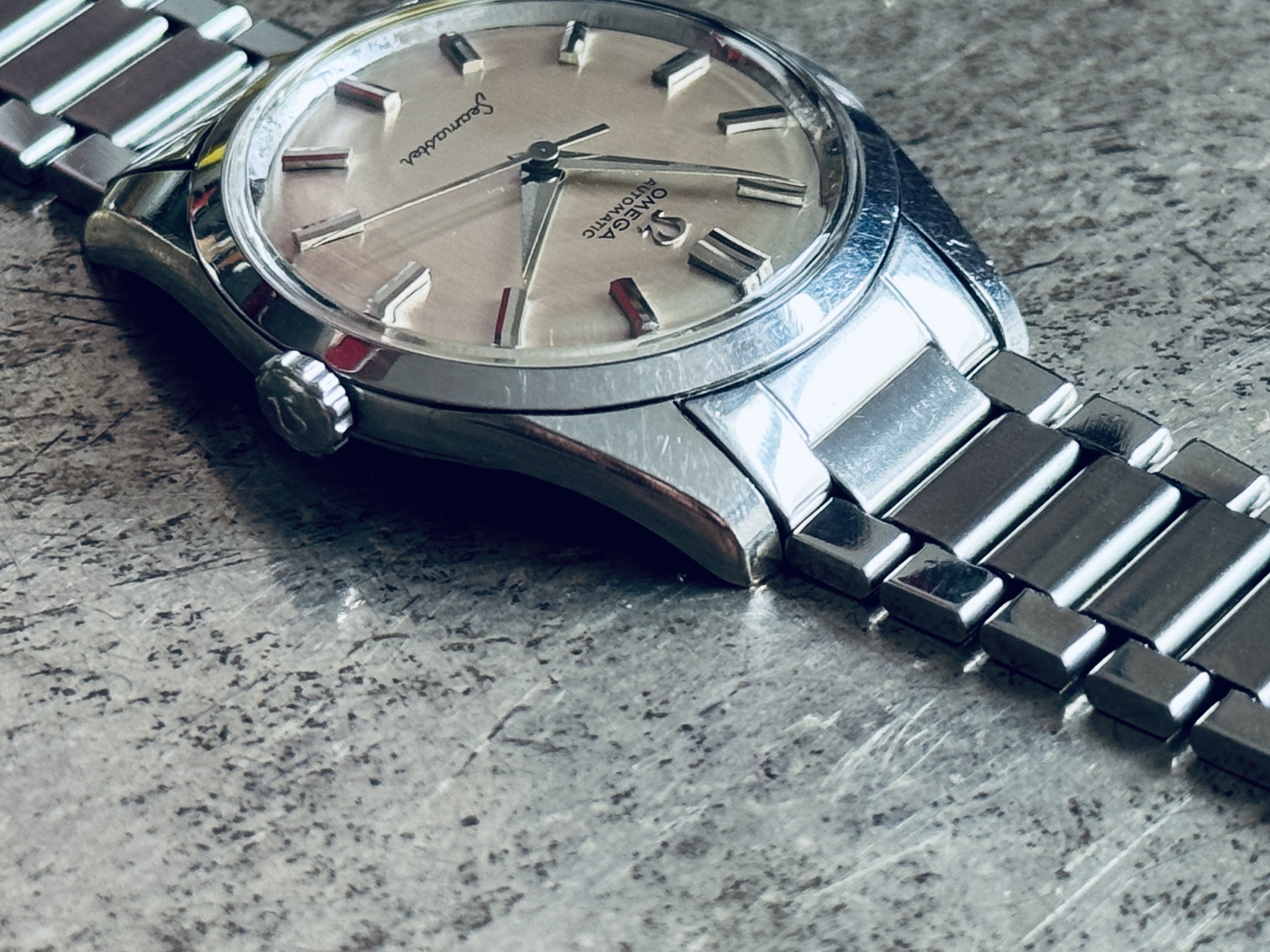 Case: Original 35mm stainless steel case. It’s very sharp, all the edges are beautifully preserved. Minute scratches everywhere, as you’d expect from a 60+ year old watch that hasn’t seen significant polishing. Even the original brushing on the sides and around the hippocampus are intact.