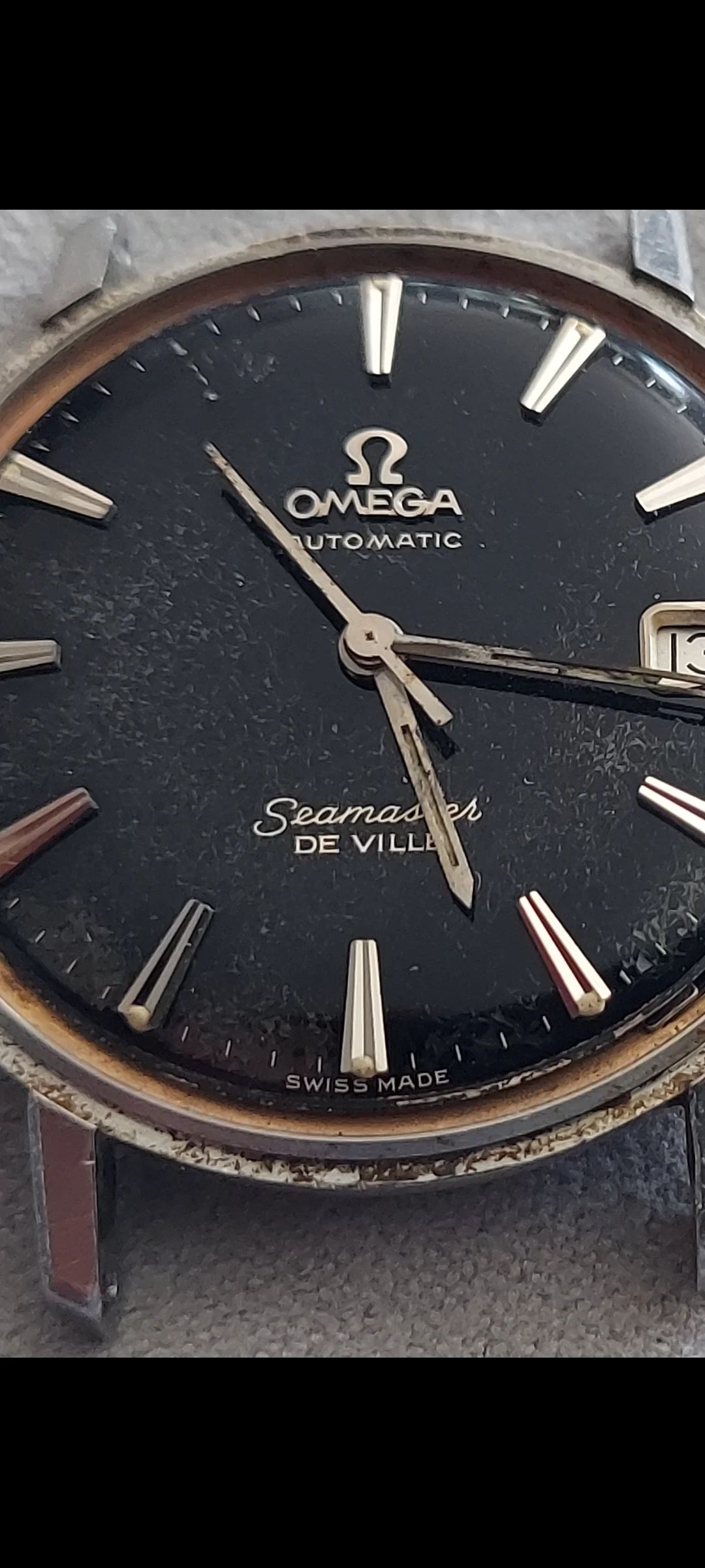 Black dials are usually an indicator of a repainted dial. This one looks decent. Swiss made looks crowded at the 6. Others may know better.