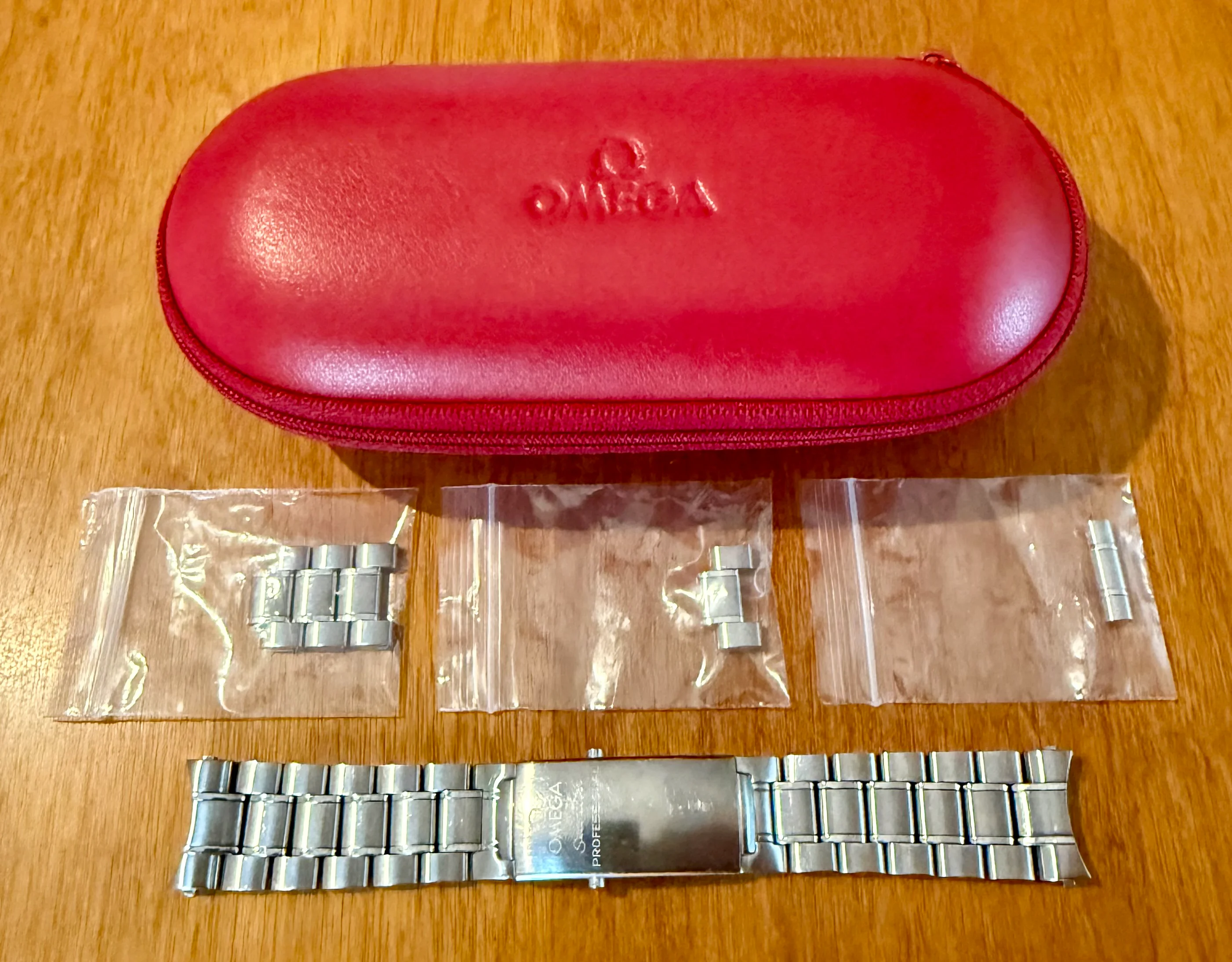 ·Hi Omega Forum friends, offering my genuine Omega 1610 930 Seamaster Professional Bracelet complete with 4 extra links and 1 half length link for sale. Omega service pouch included!