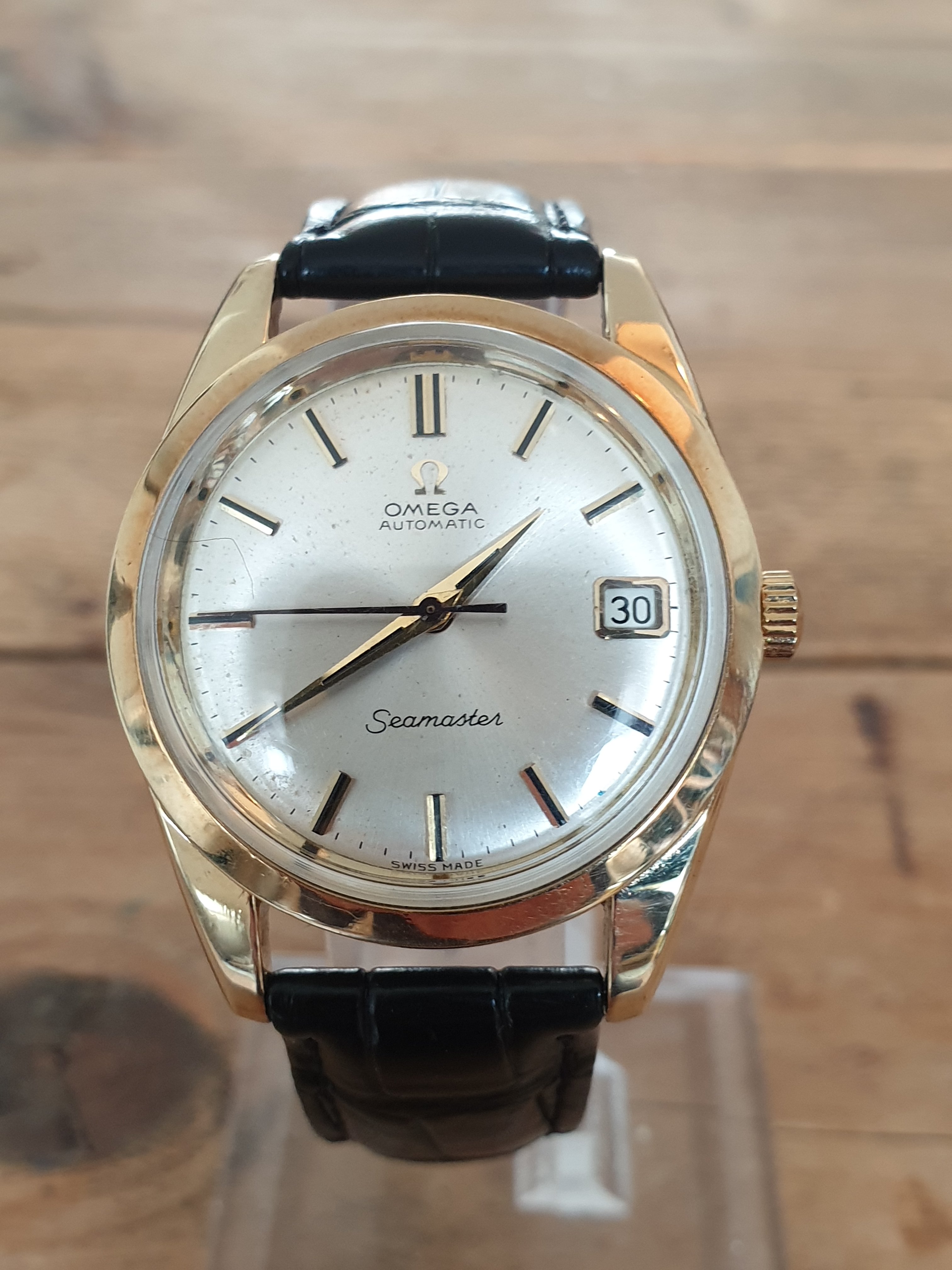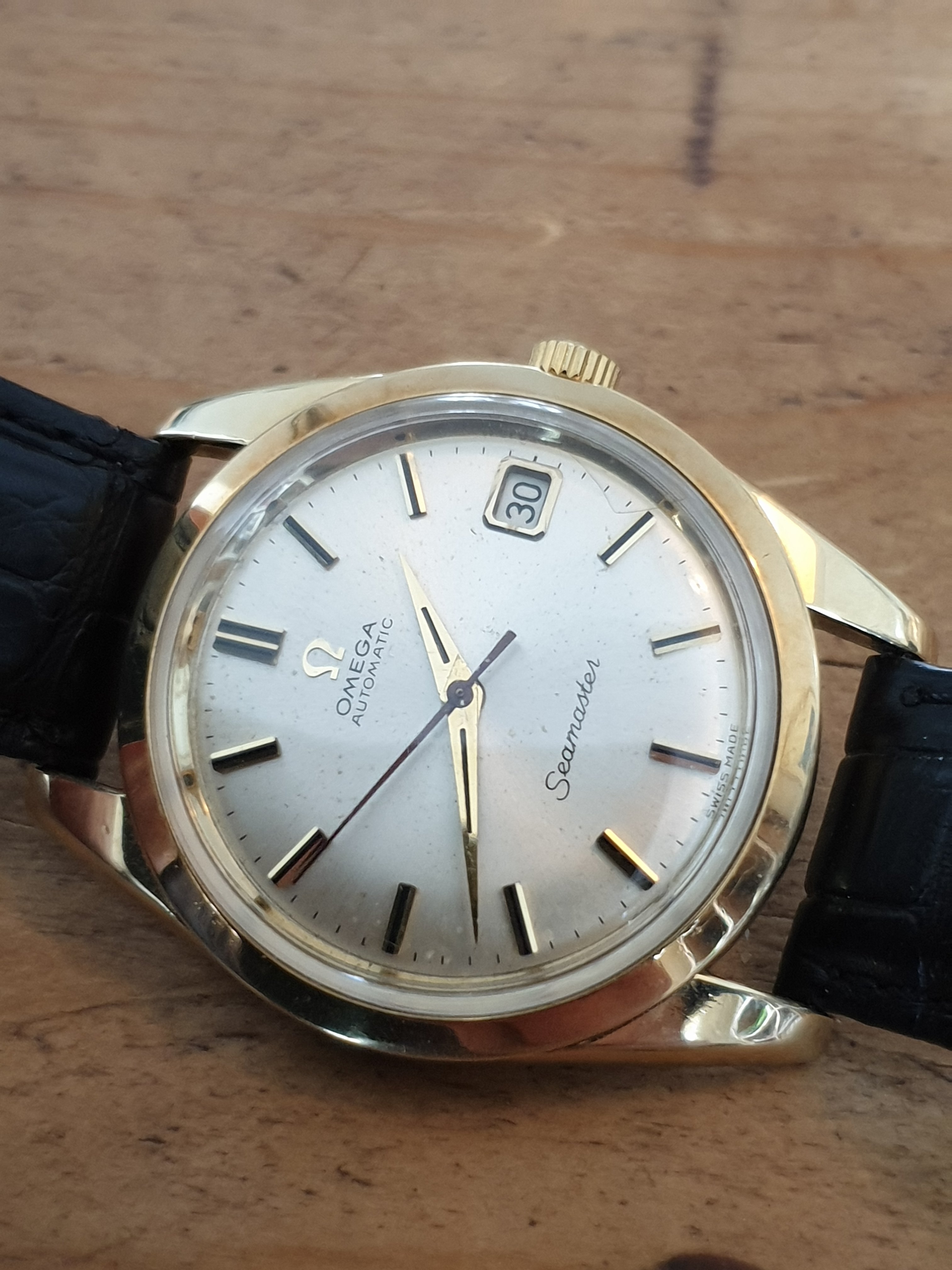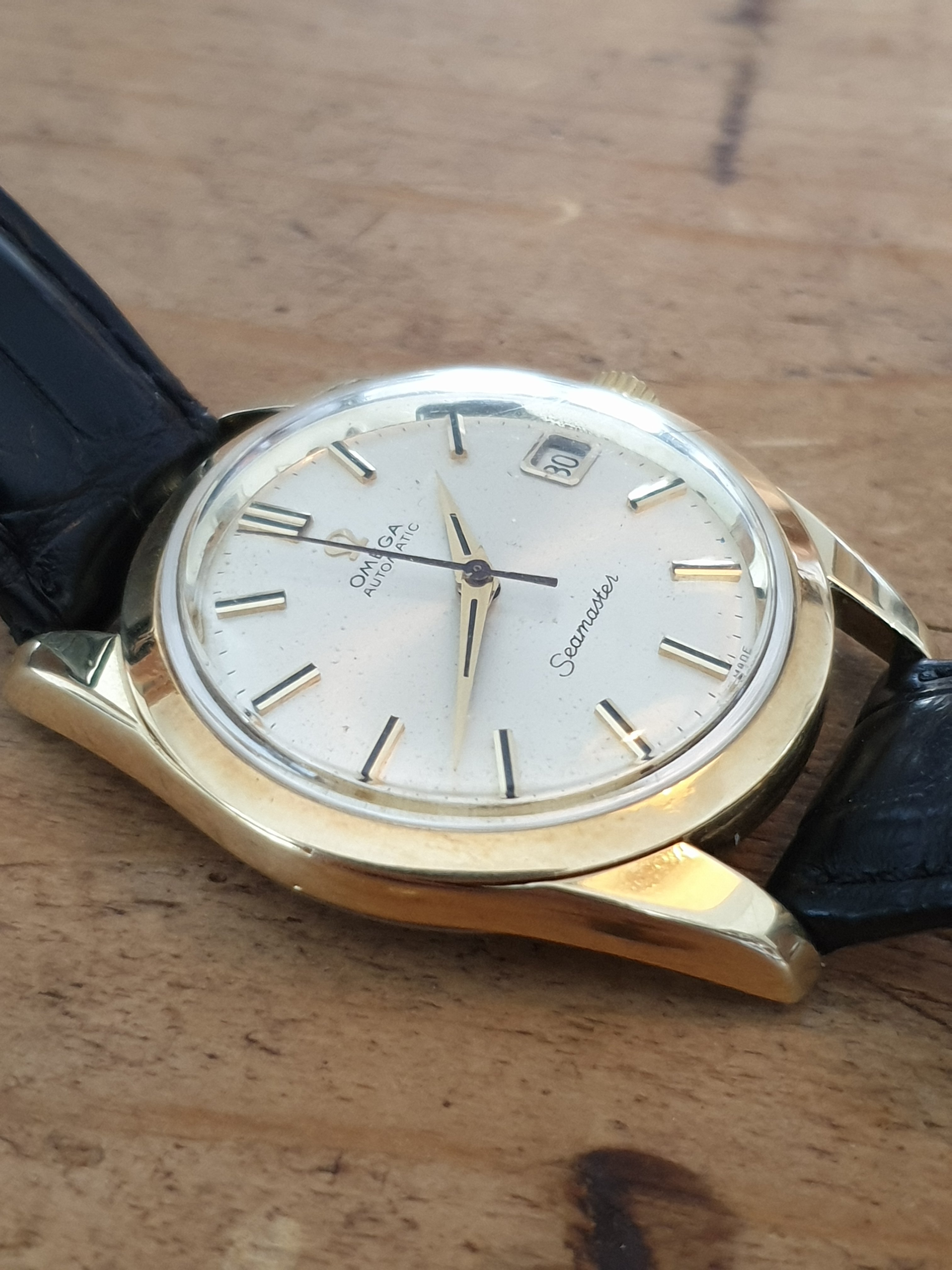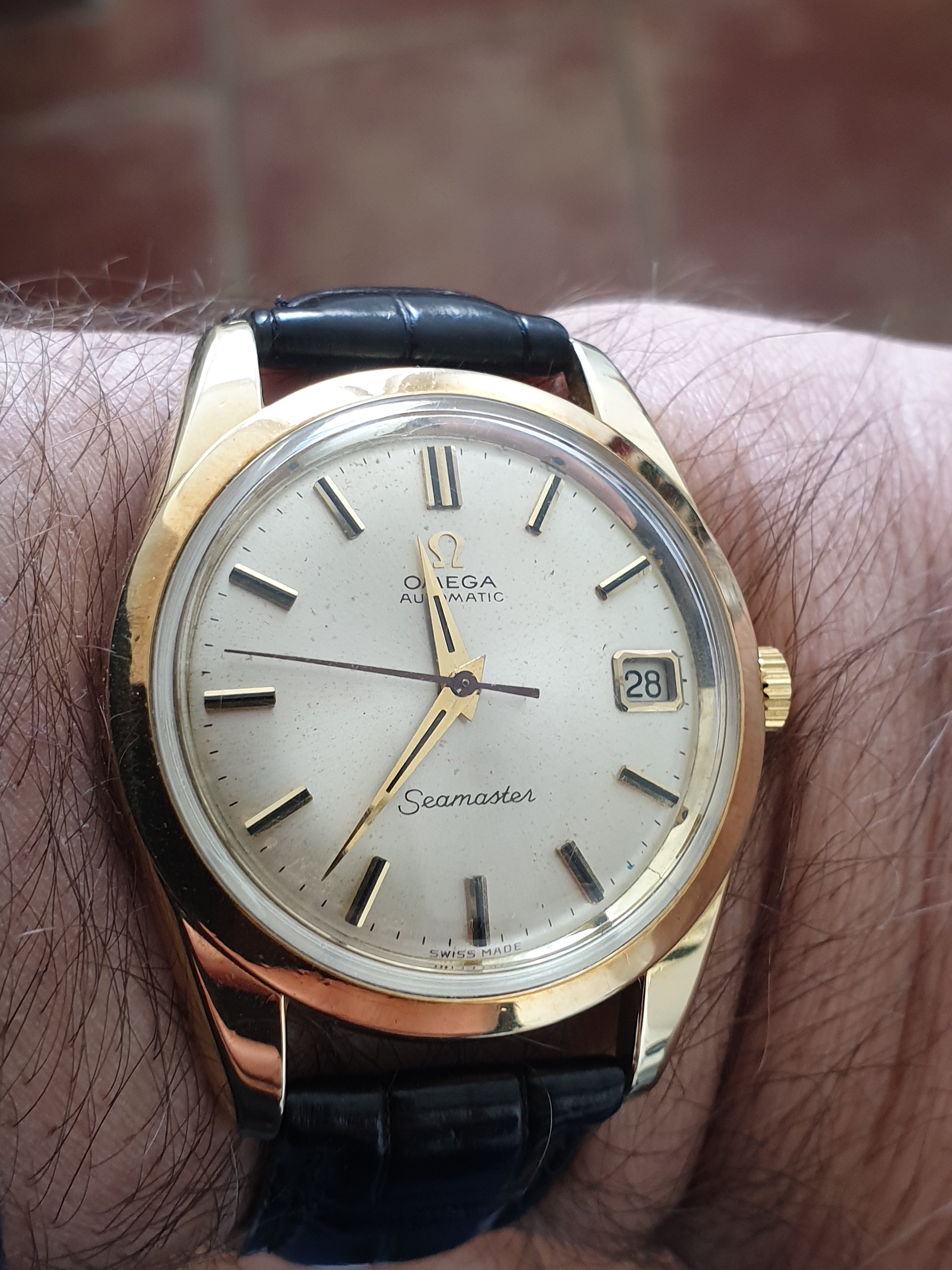 For sale today a Seamaster 166.010 from 1967. Goldplated case in good condition and measures 35mm. Dial has some spotting as can be seen on the pictures. Dauphine hands in good condition. Second hand was probably replaced. Original omega crown. Plexi is generic. Caseback with hippocampus logo still sharp. Caliber 565 with quickset function that works.